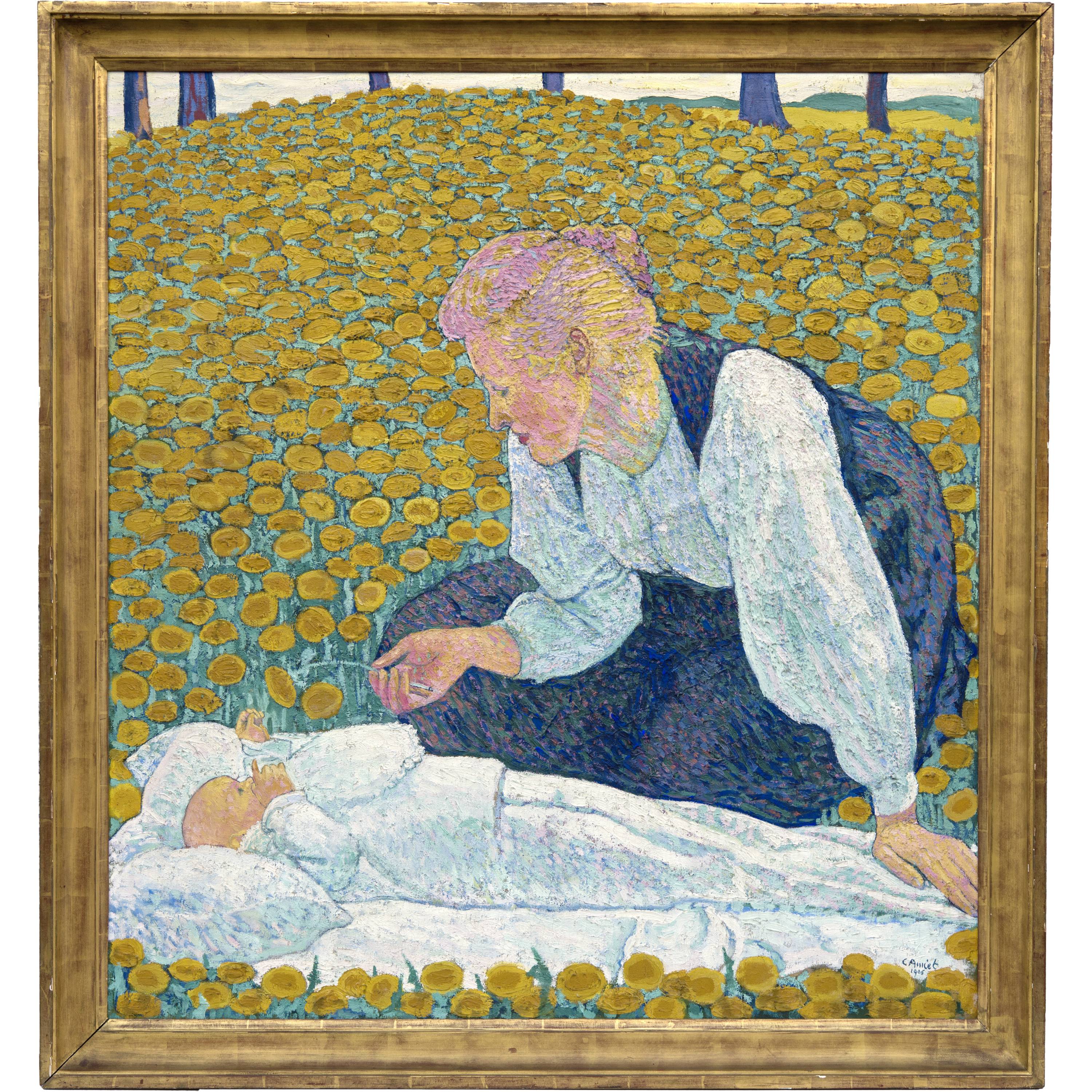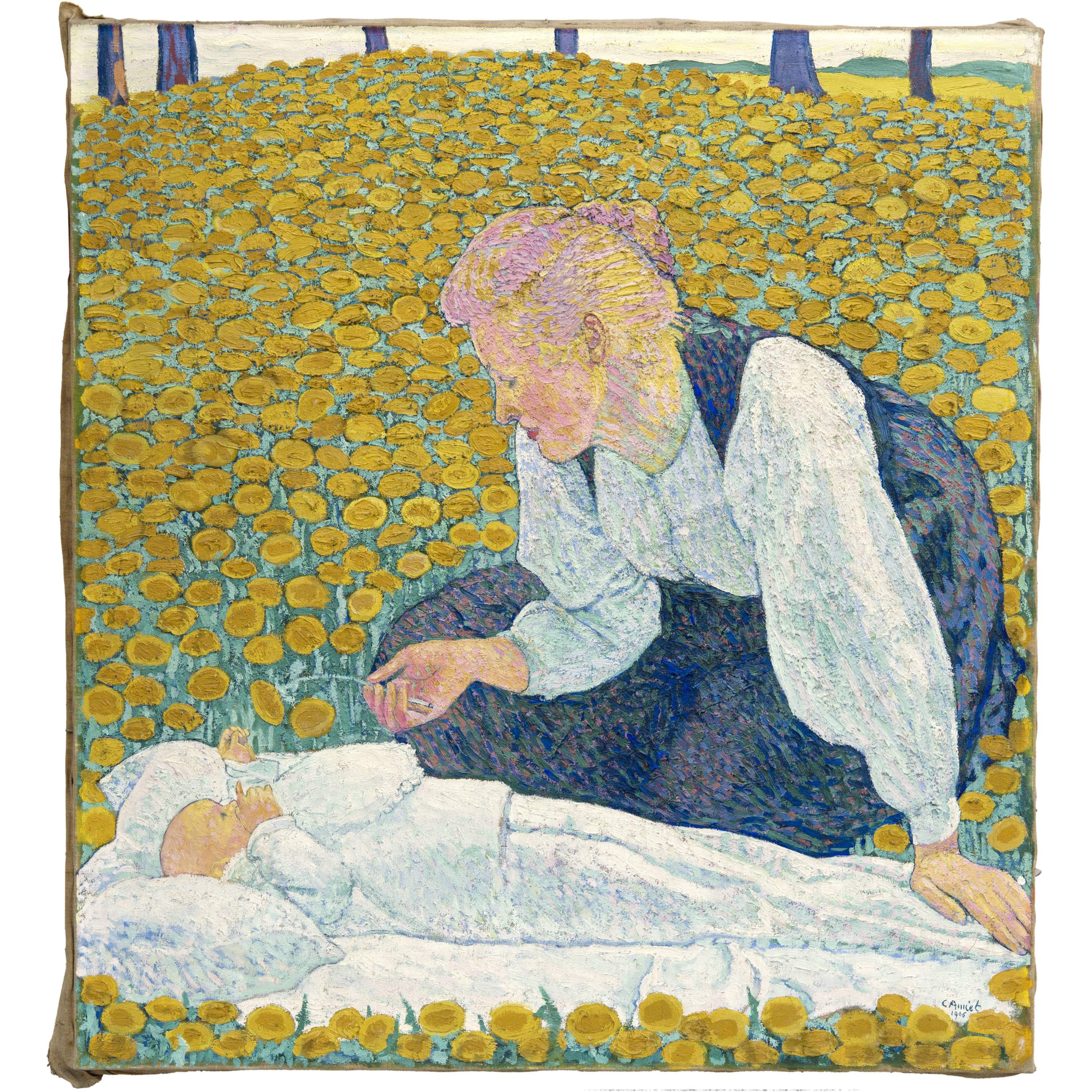 Cuno Amiet  : Mutter und Kind auf blumenübersäter Wiese , 1906