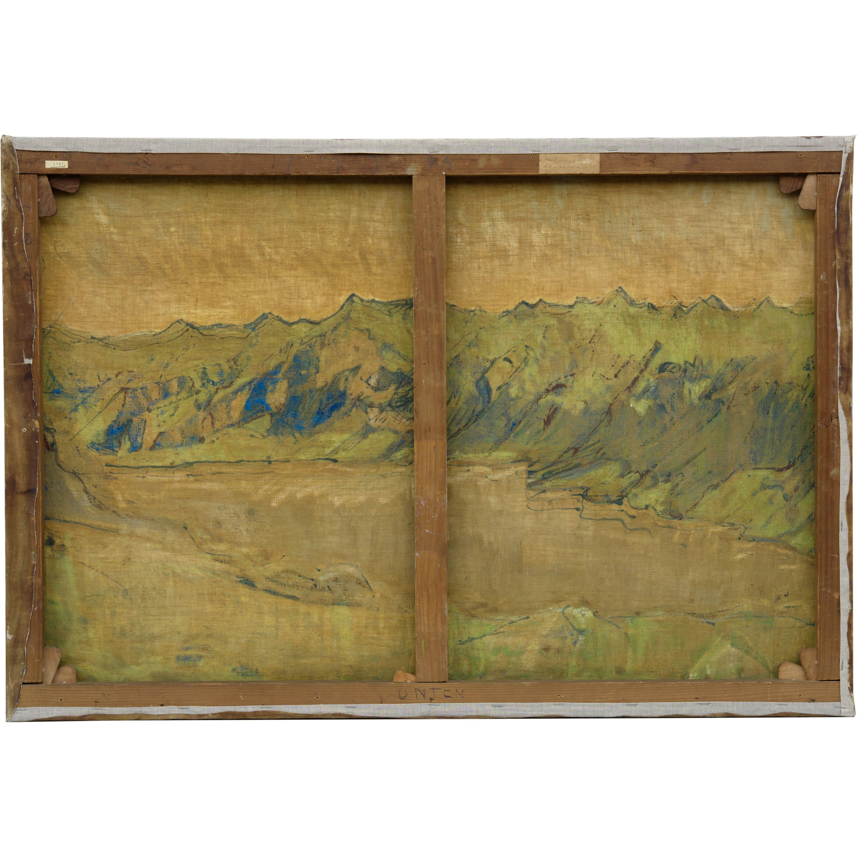Auf dem originalen Chassis, mit späterer Nagelung. Randseitig die Leinwand verstärkt. Eine frühere Doublierung der Leinwand wurde vor einigen Jahren professionell entfernt. In sehr guter und frischer Erhaltung
