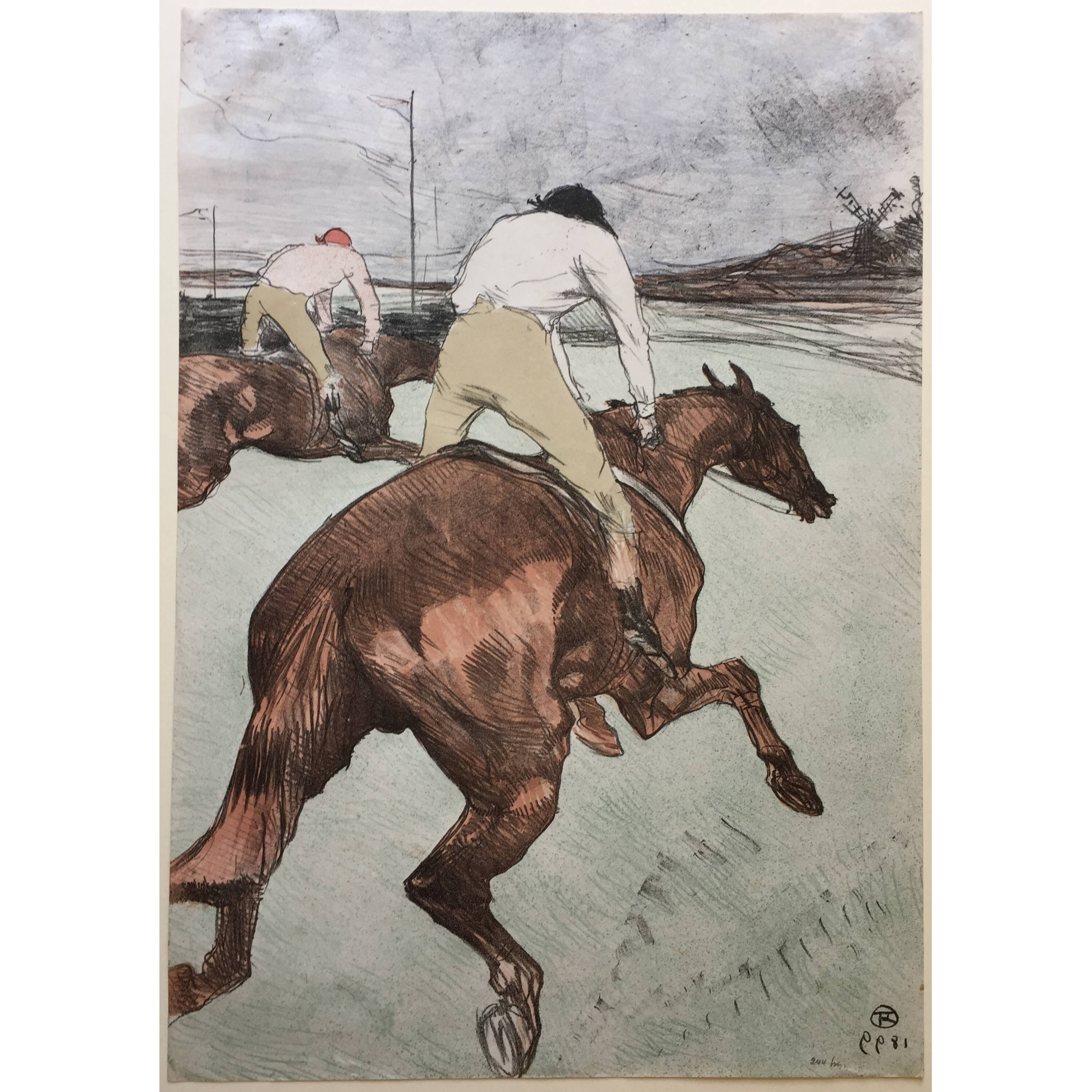 Der Künstler plante 1899 eine "Suite Courses" (ähnlich der 1896 publizierten "Suite Elles"), vollendete aber nur vier Darstellungen, von denen das vorliegende Blatt als einziges in einer Auflage erschien. Von den drei restlichen Blättern (Wittrock 309, 310 und 311) gibt es nur einzelne Probedrucke. "Le Jockey" wurde 1899 vom Verleger Pierrefort übernommen, 100 Drucke in Schwarz-Weiss und 112 Drucke in Farben, wovon 12 Drucke auf festem Japanpapier und 100 auf China. Die Auflagen erschienen ohne Signatur des Künstlers und ohne Nummerierung