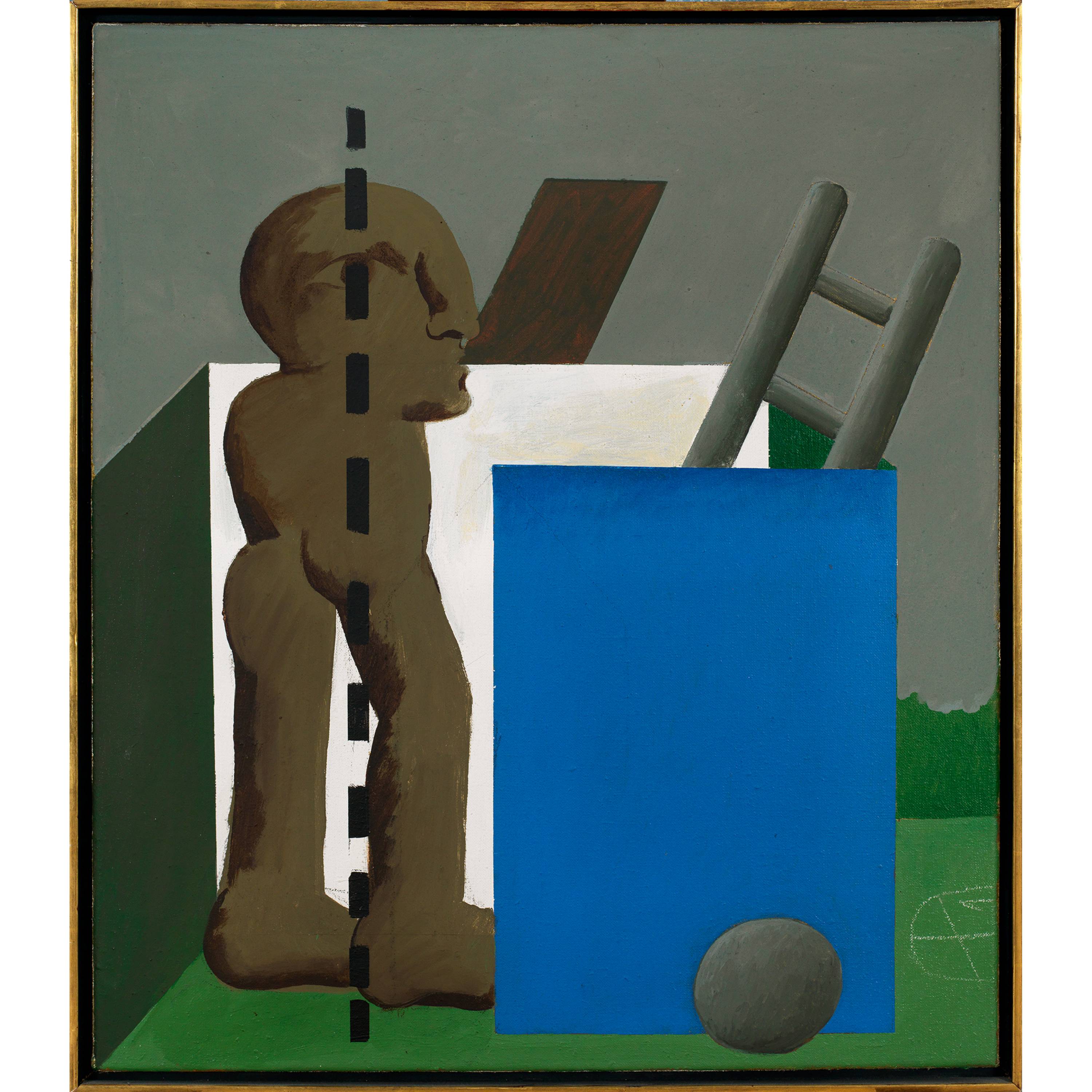 Rückseitig auf der Leinwand vom Künstler in Pinsel in Öl betitelt "Braune / Figur und / Architektur", bezeichnet, datiert und signiert "Aquatec / 1969 / Antes"