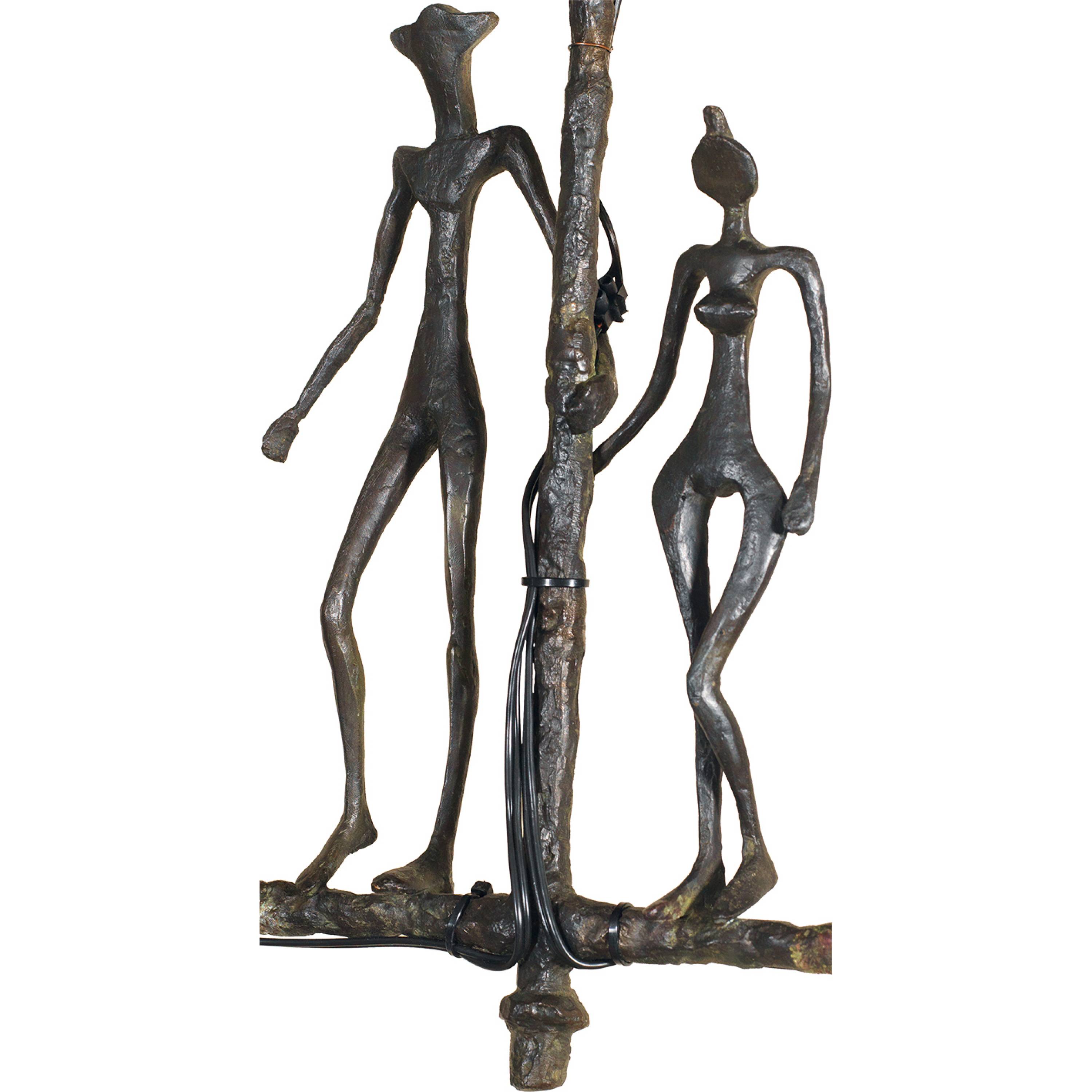 Dunkelbraun patiniert. Tadellos in der Erhaltung, elektrifiziert mit aufgelegten schwarzen Kabeln