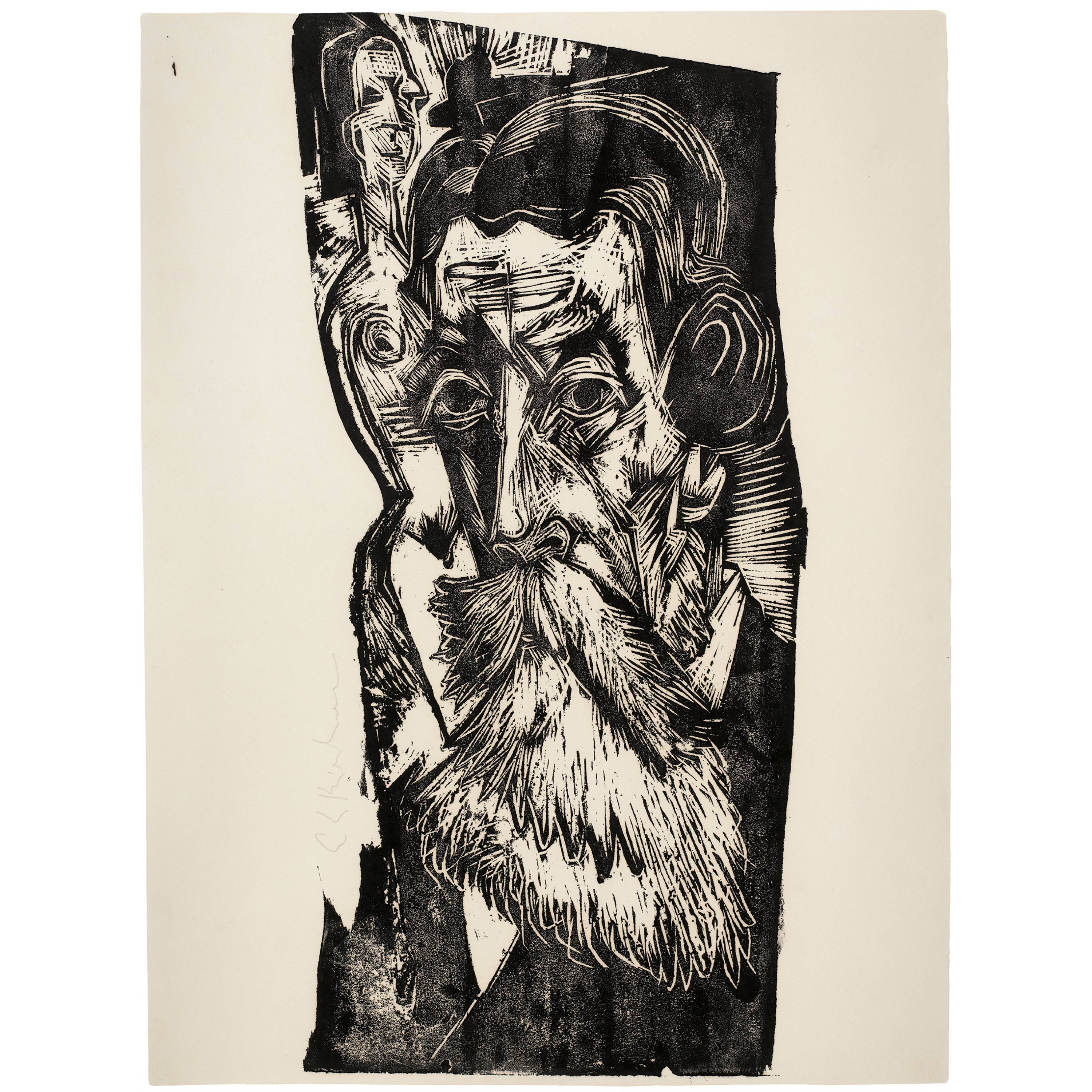 Das Blatt entstand im Herbst 1918 aus der Erinnerung heraus, vielleicht auch nach einer Fotografie, denn Kirchner hatte Schames seit seiner Ausstellung in Frankfurt a.M. im Jahr 1916 nicht mehr getroffen. Es handelte sich um eine Auftragsarbeit des Frankfurter Kunstvereins, der mindestens 120 Drucke als Jahresgabe wünschte. Kirchner hat die gesamte Auflage (wohl alle Drucke im II. Zustand) von Hand abgezogen, da ihm im Dezember 1918 in seinem Haus "In den Lärchen" in Frauenkirch bei Davos seine Druckerpresse, die noch in Berlin war, nicht zur Verfügung stand. In einem Brief an Nele van de Velde schreibt Kirchner u.a. am 26. Dezember 1918: "Ich bin in der letzten Zeit recht wenig zu eigentlicher Arbeit gekommen. Ich musste eine Auflage von 180 Drucken machen, sodass meine Glieder wieder recht unangenehm sind." In einem späteren Schreiben nennt Kirchner die Auflage von 120. Das Blatt gehört zu den gesuchtesten Holzschnitten des ganzen graphischen Werkes des Meisters
