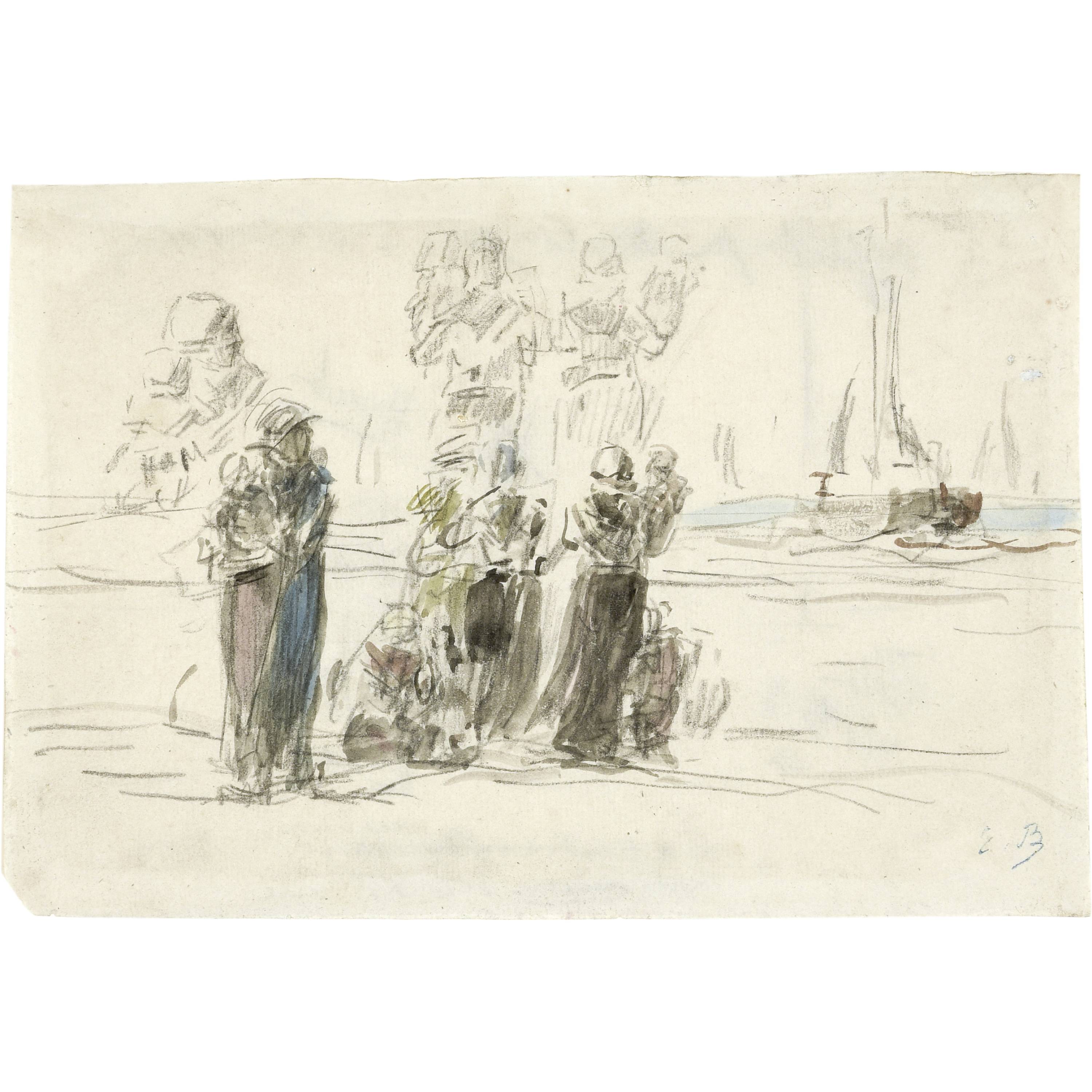 Vorarbeit für das Ölbild "Schevenique, le départ des pêcheurs" von 1875, vgl. Werkverzeichnis Robert Schmit, Paris 1973, Band I, Nr. 1096