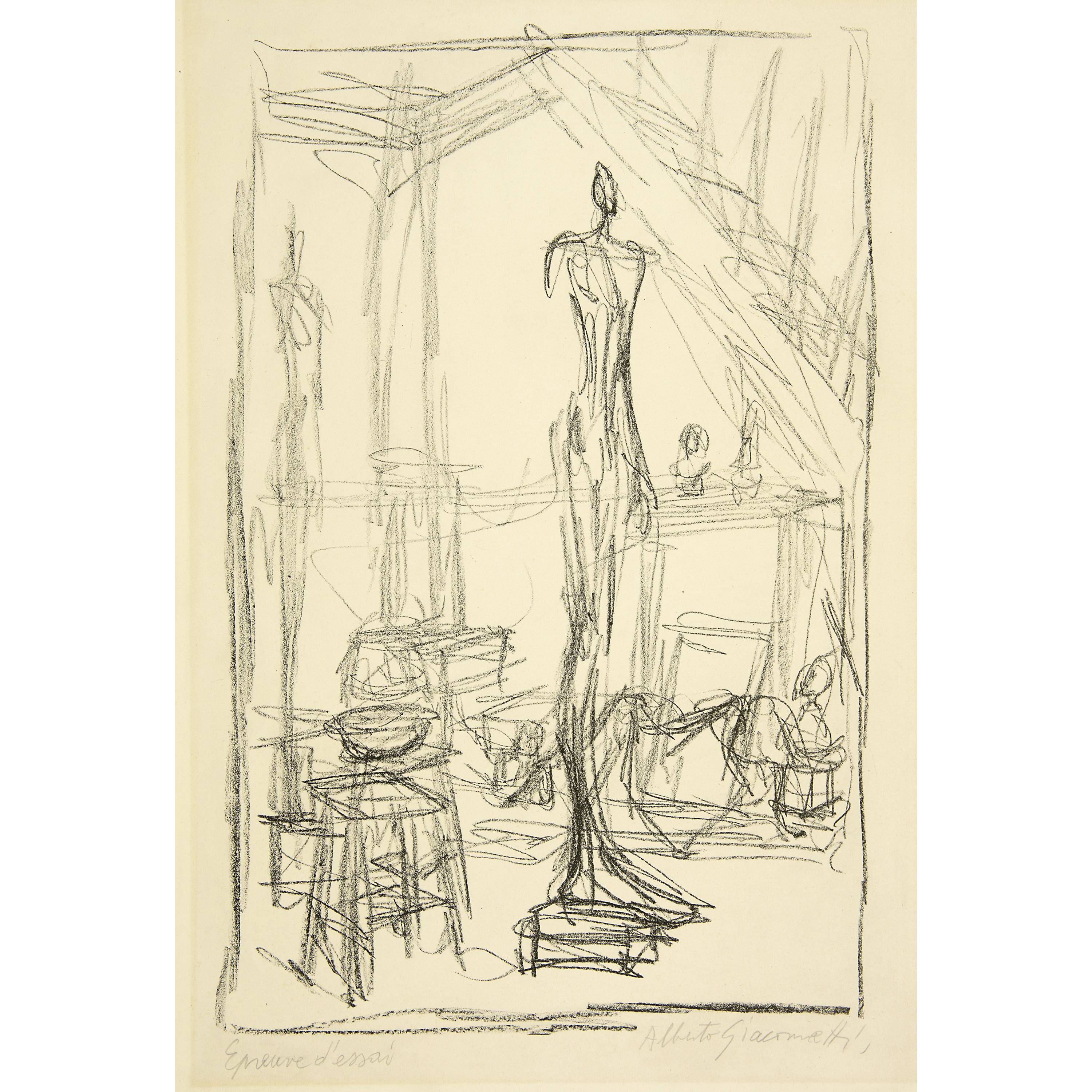 Unten rechts vom Künstler in Bleistift signiert "Alberto Giacometti", links bezeichnet mit "Epreuve d'essai"