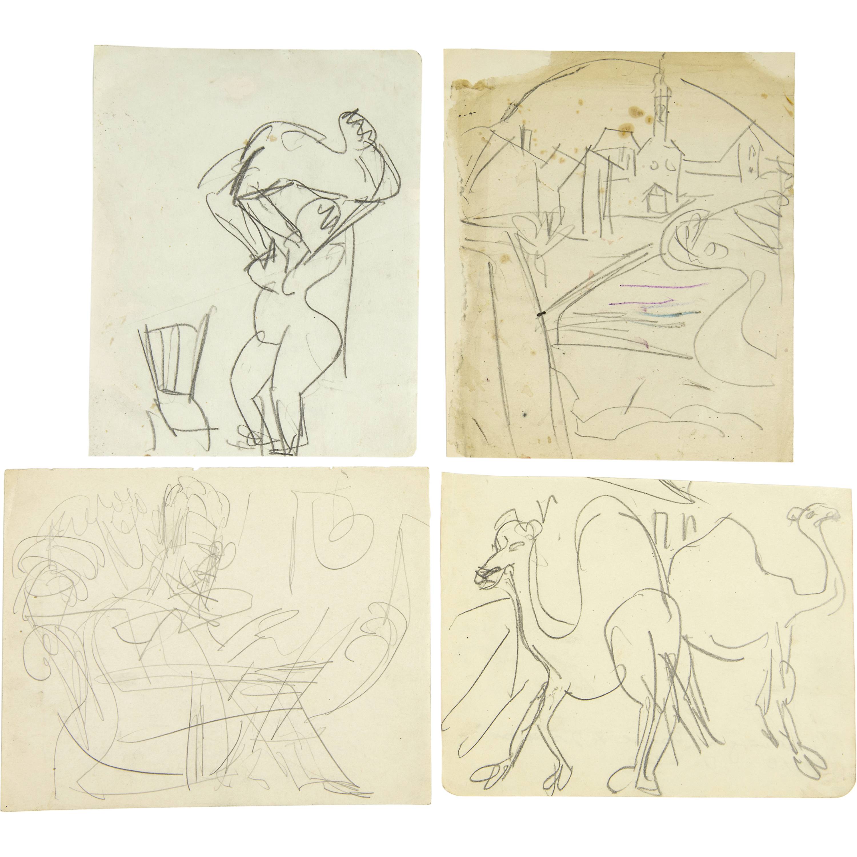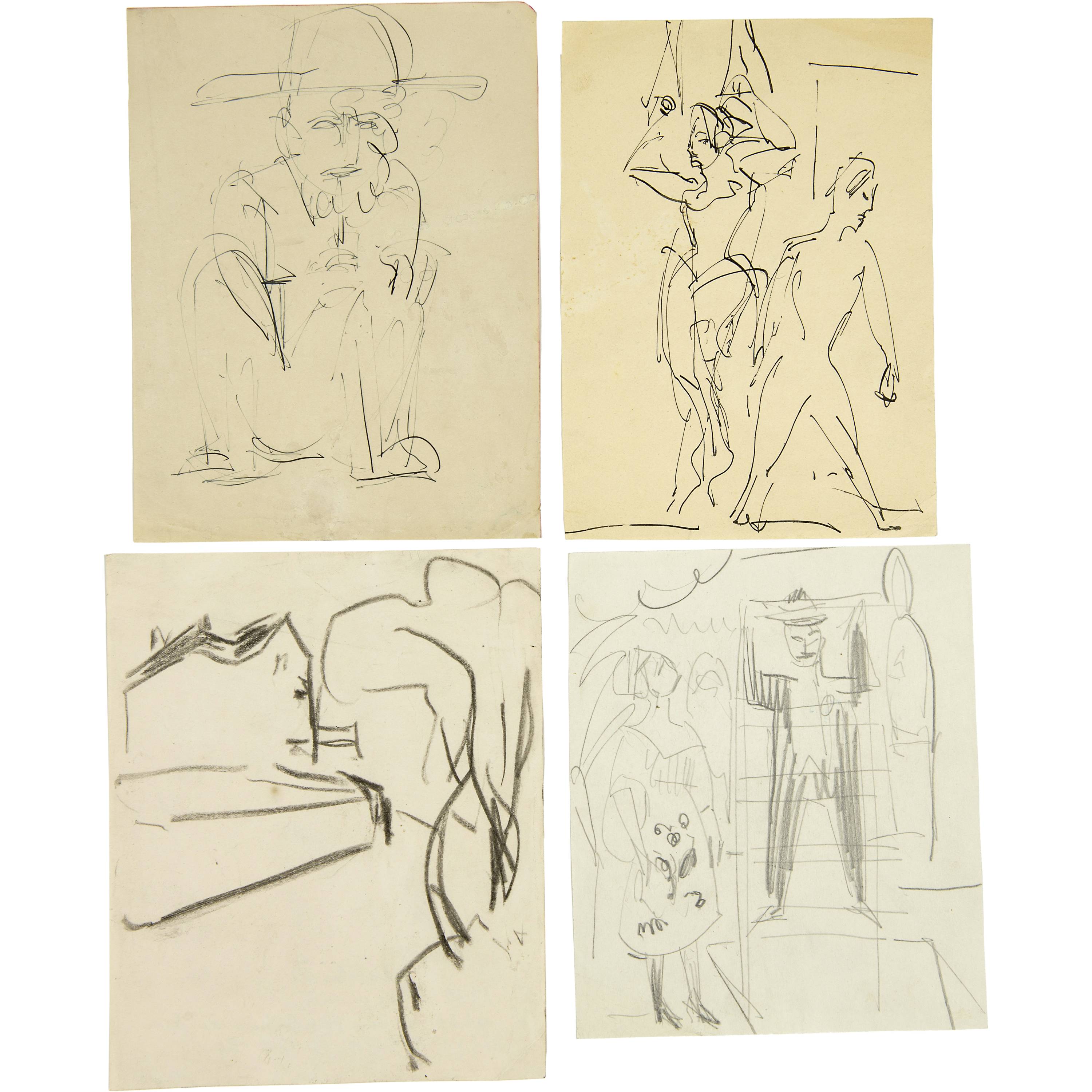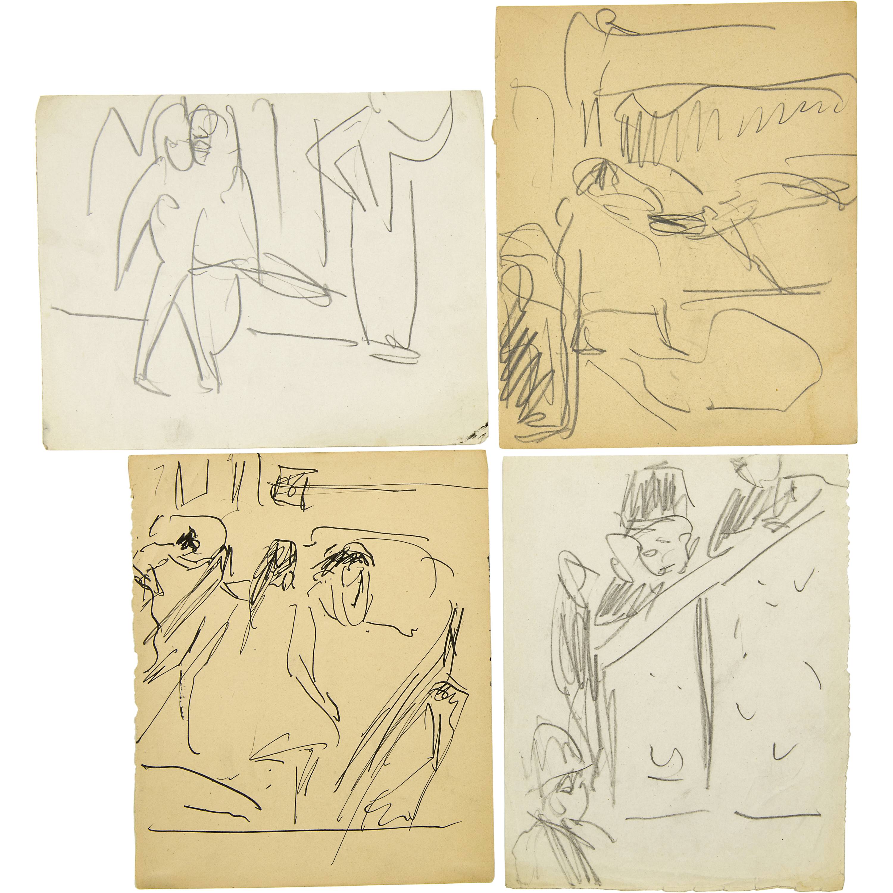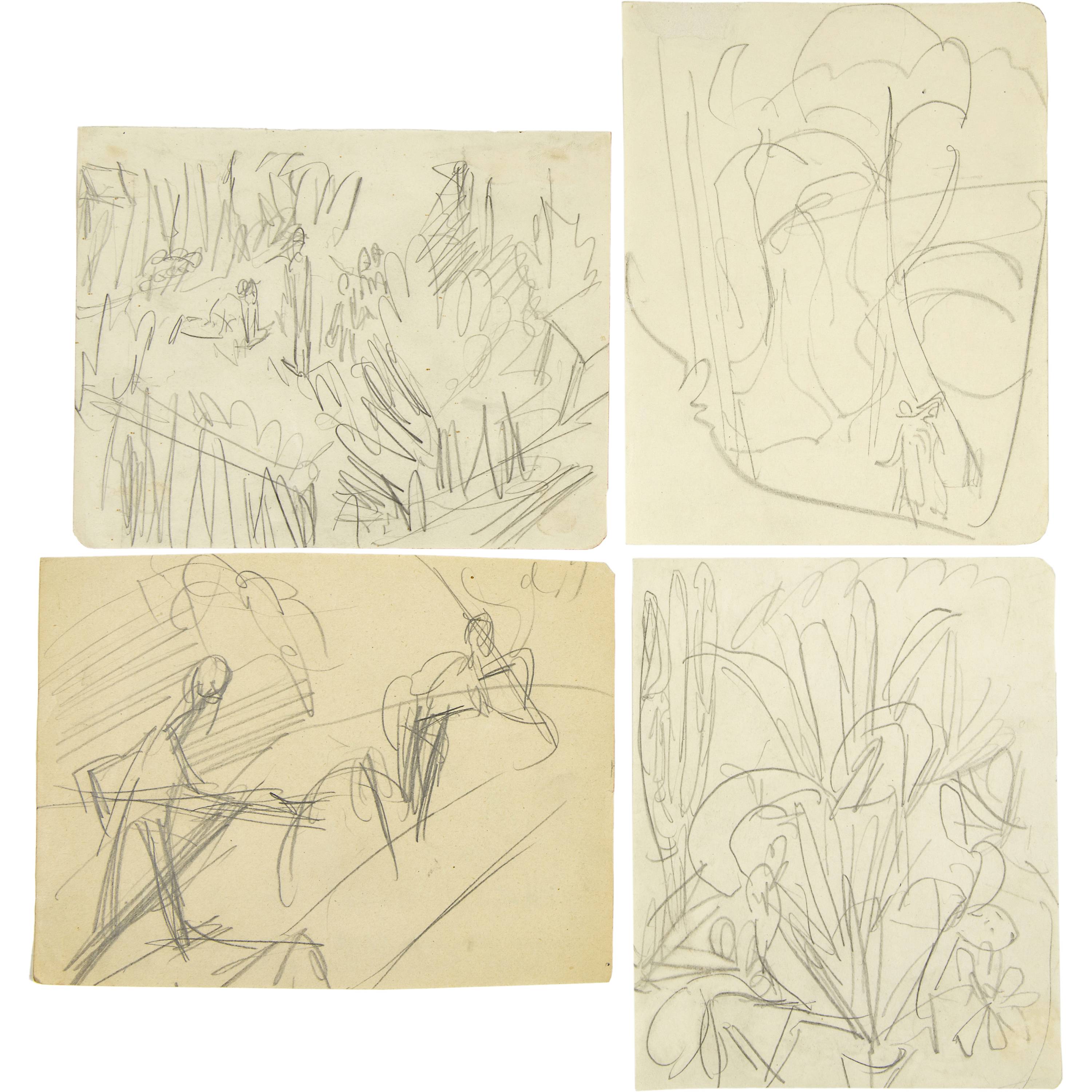 Grosses Konvolut von Skizzen der Jahre 1909 bis 1934. Es werden praktisch alle Themen des künstlerischen Schaffens Kirchners berührt. Aus verschiedenen Skizzenbüchern, alle auf Velin, meist gut erhalten, einige mit unregelmässigen Randverhältnissen