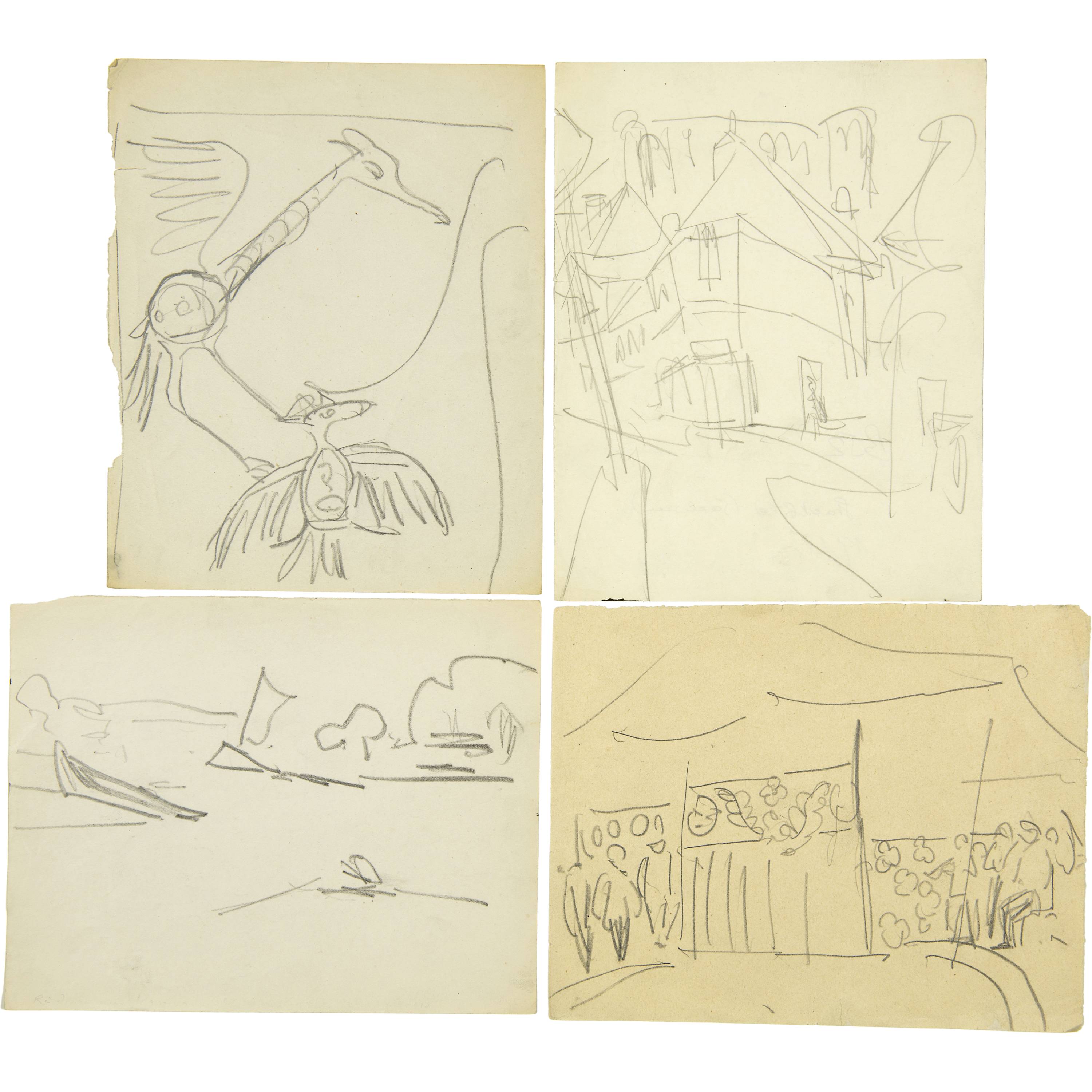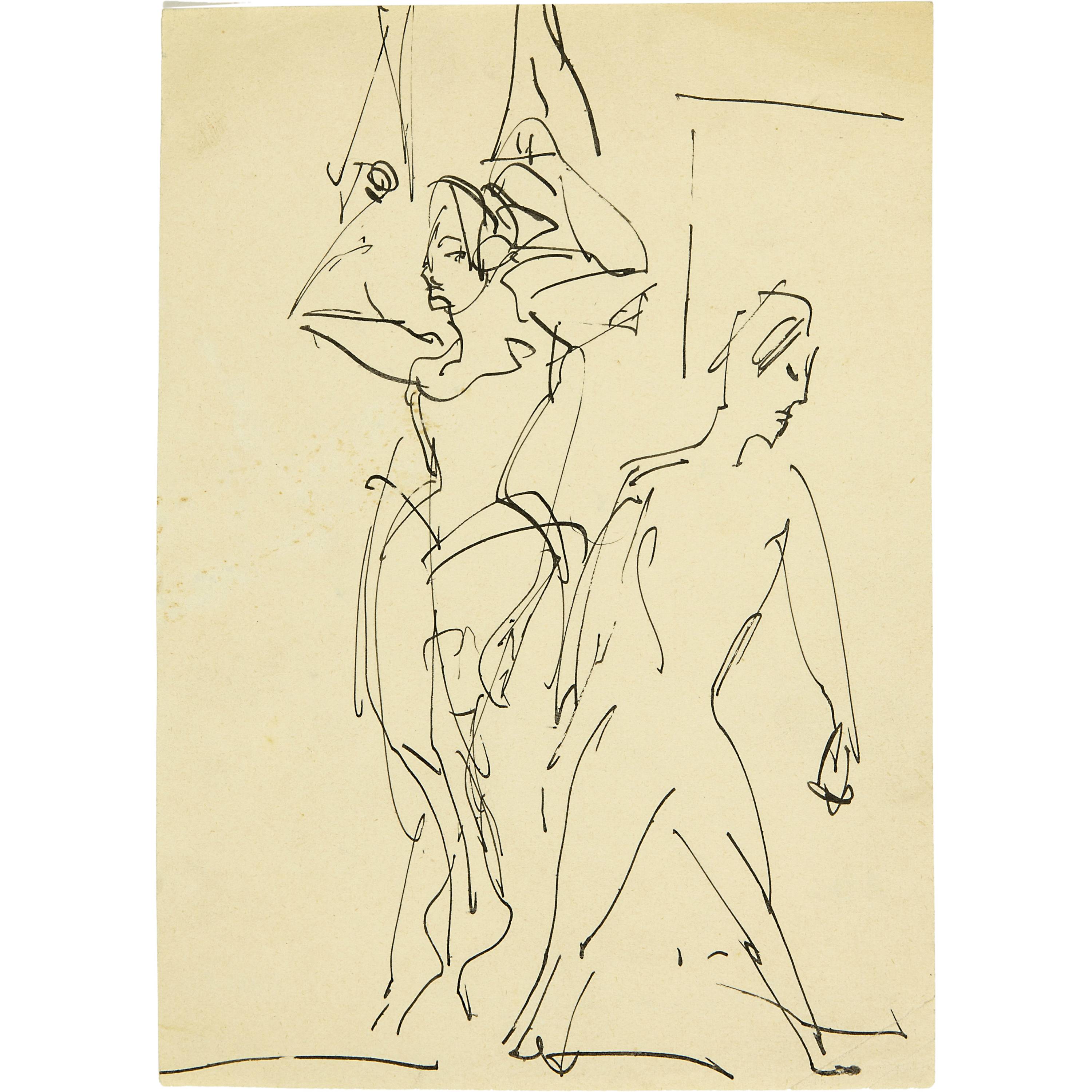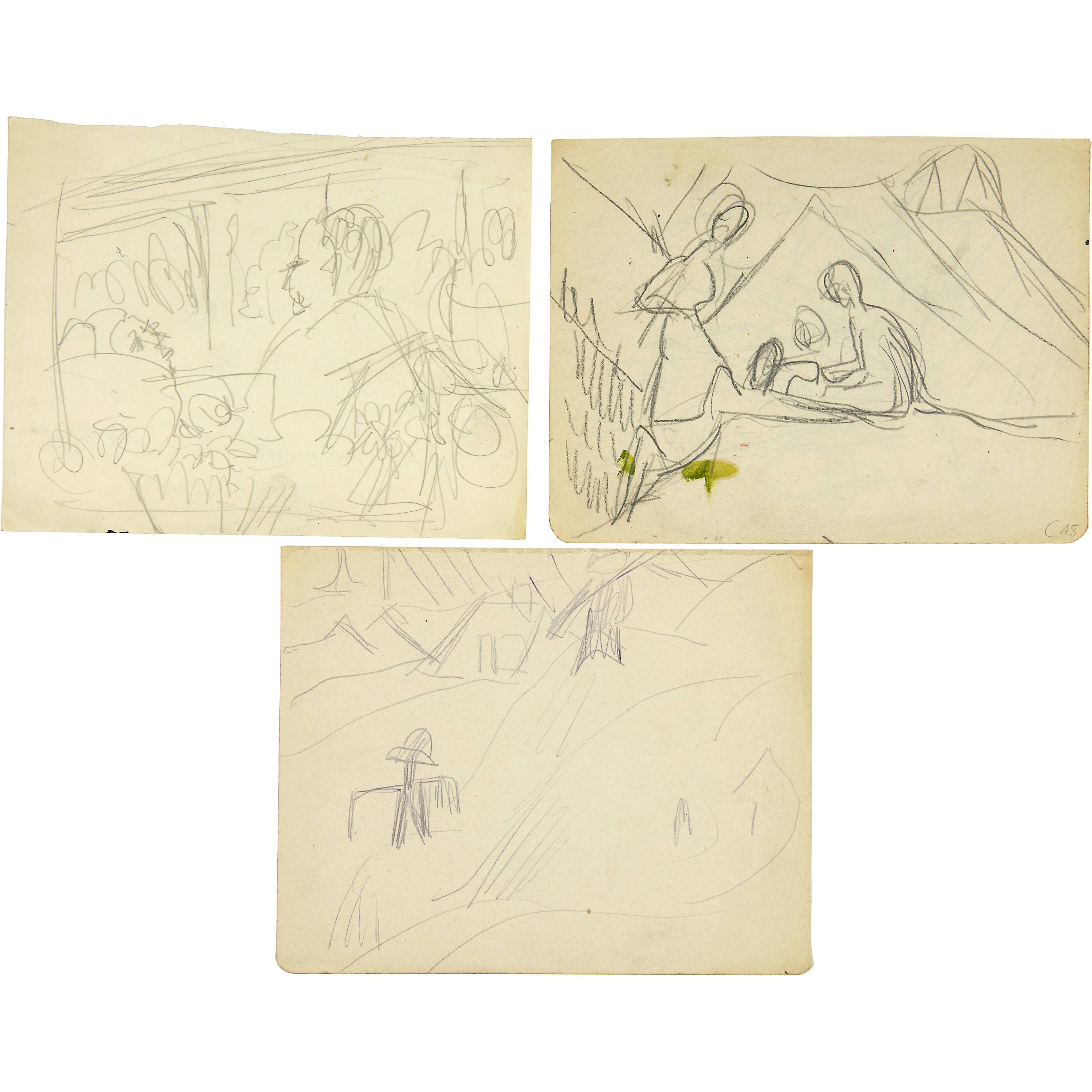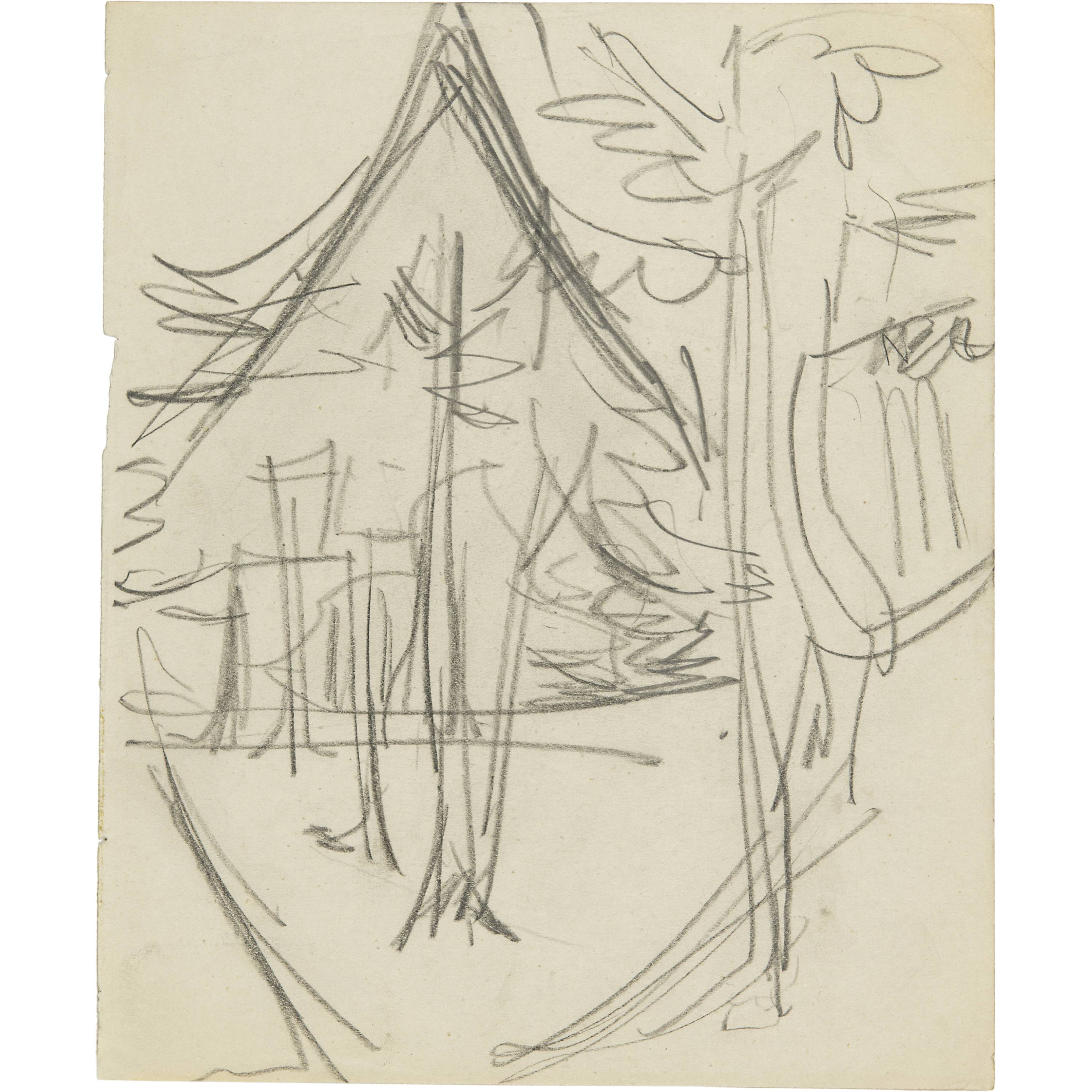 Grosses Konvolut von Skizzen der Jahre 1909 bis 1934. Es werden praktisch alle Themen des künstlerischen Schaffens Kirchners berührt. Aus verschiedenen Skizzenbüchern, alle auf Velin, meist gut erhalten, einige mit unregelmässigen Randverhältnissen