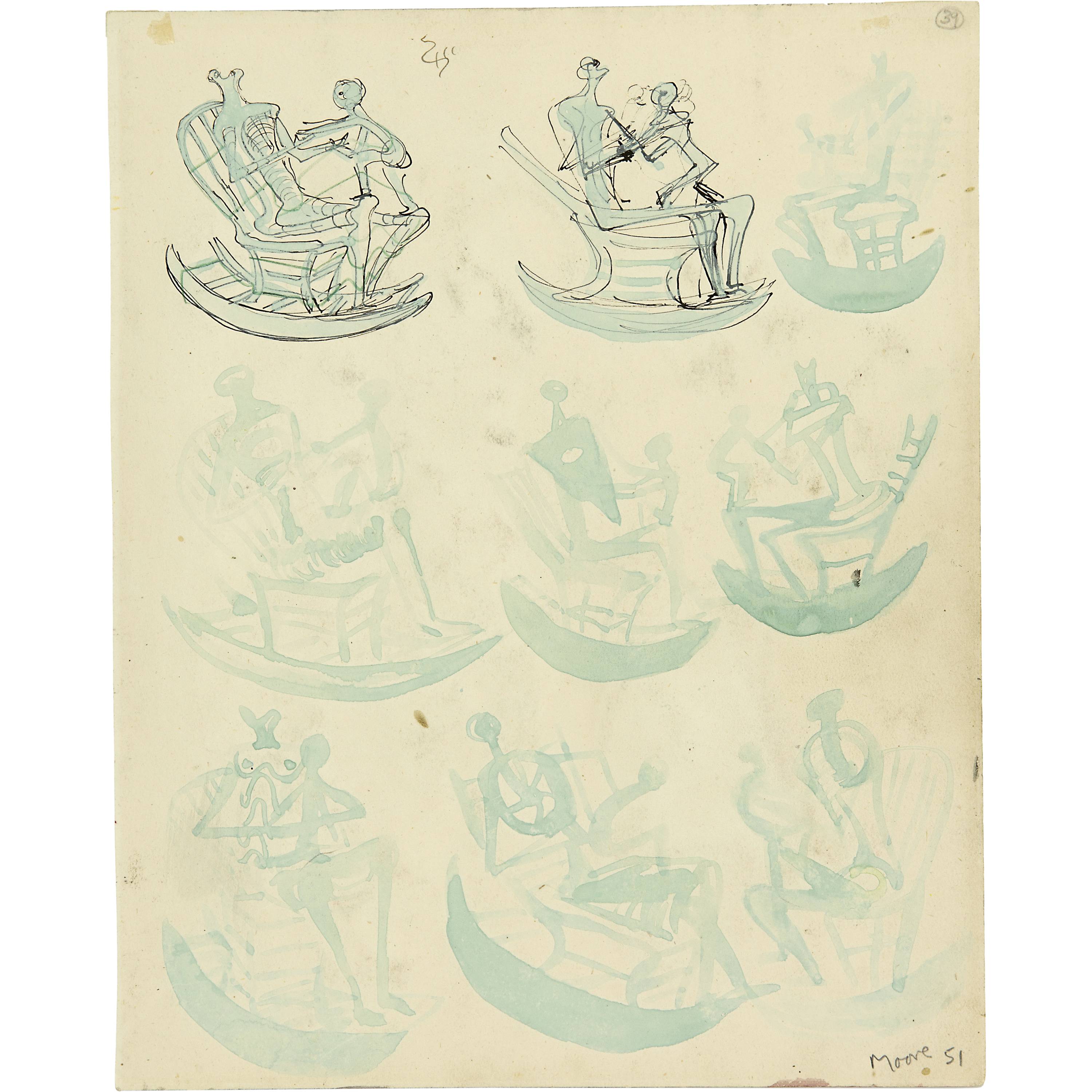 Unten rechts vom Künstler in Bleistift signiert und datiert "Moore 51", oben rechts mit der Seitenzahl "39" im Rund, rückseitig mit der Seitenzahl "40" oben links