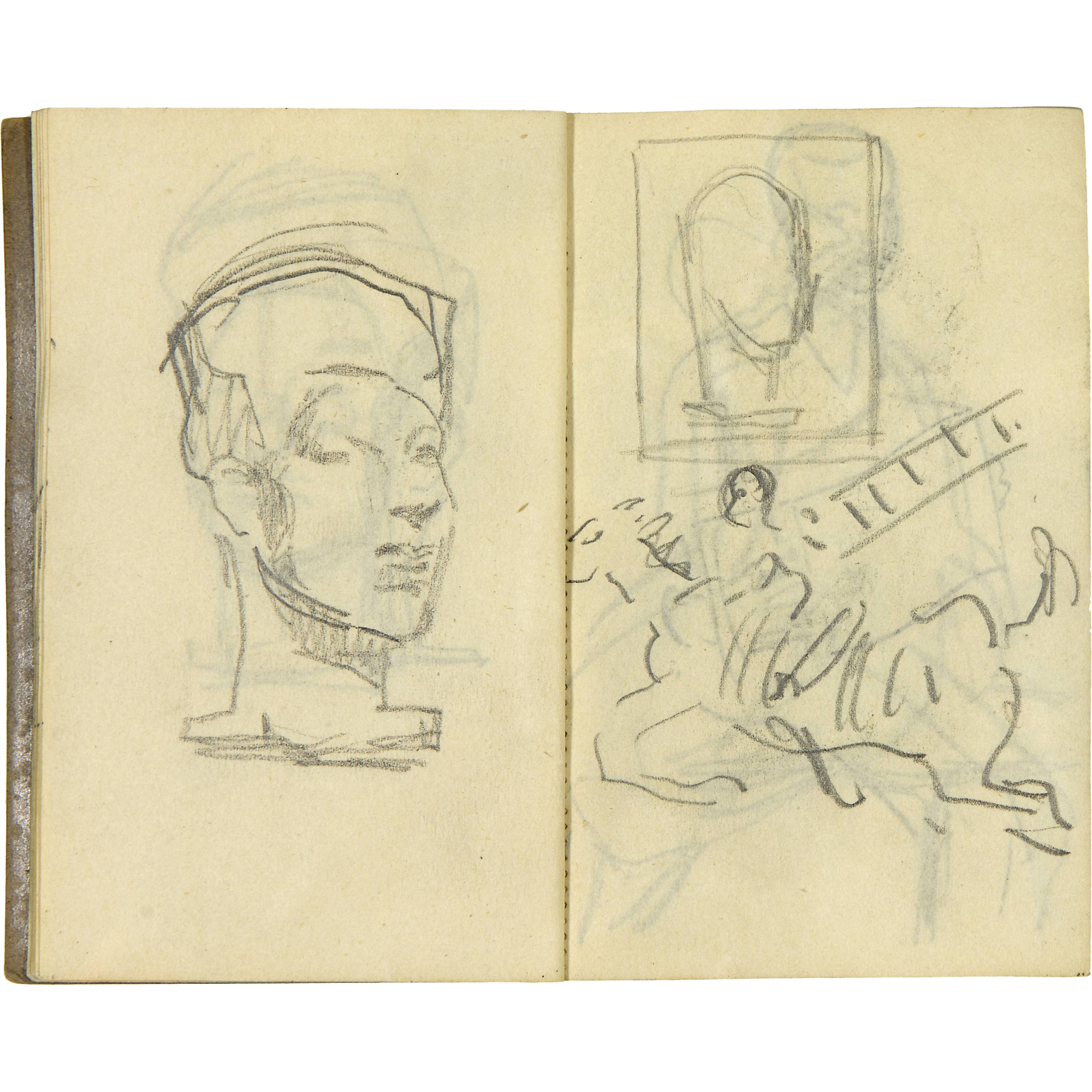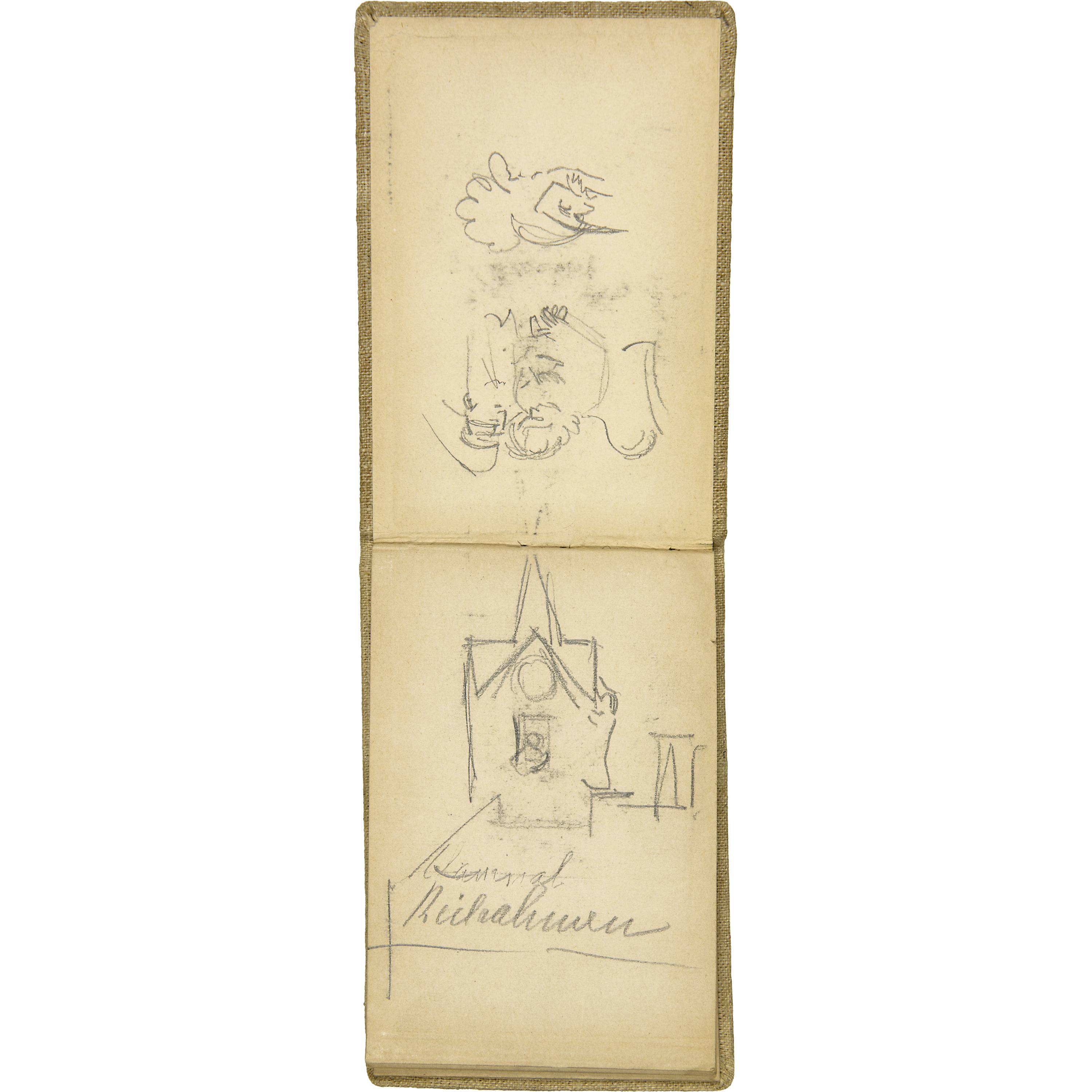 Zwei Skizzenbücher mit einmal 59 und einmal 34 Seiten, beidseitig bearbeitet. Ein spannendes kunsthistorisches Dokument
