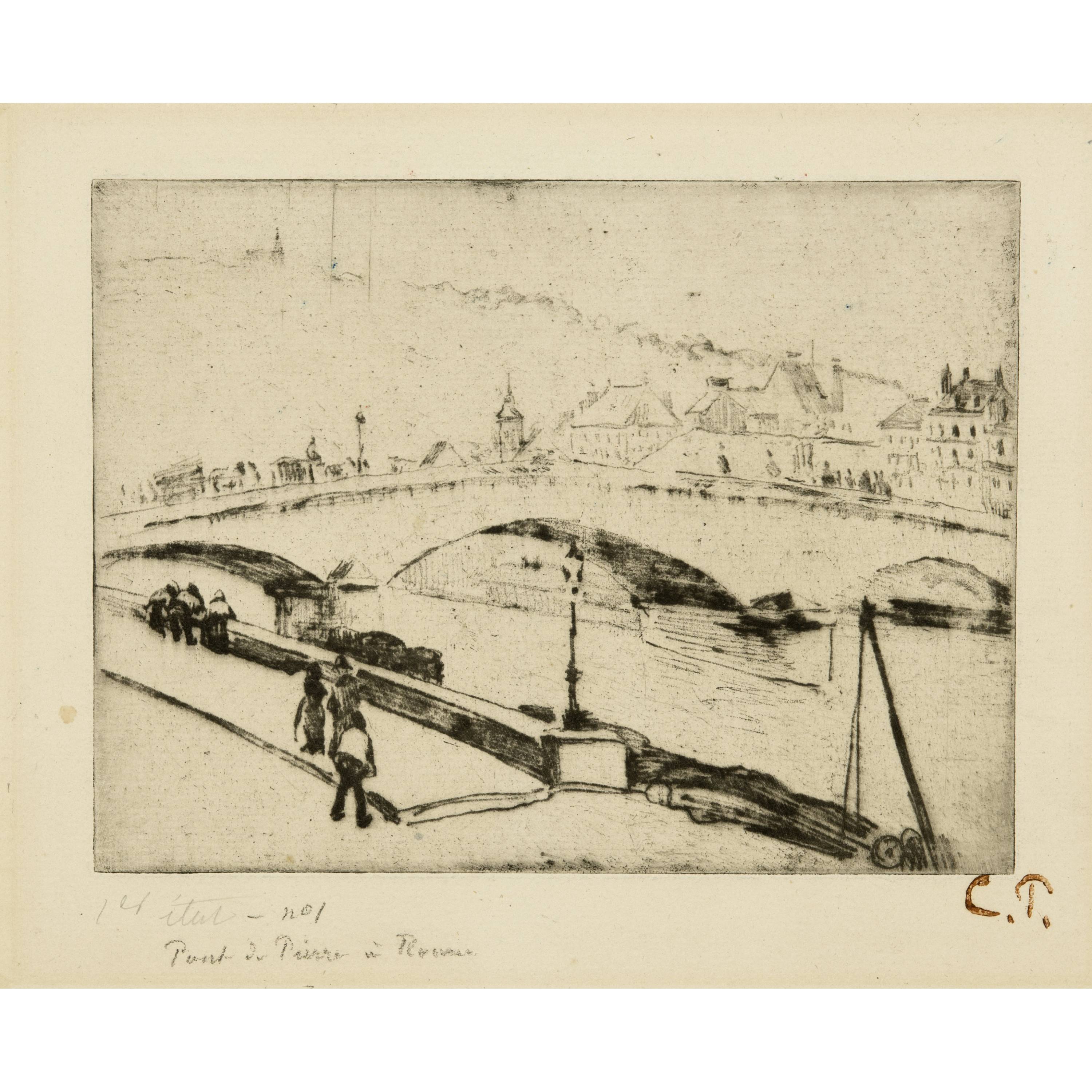 Unten rechts mit dem Monogrammstempel "C.P.", links in Bleistift vom Künstler annotiert "1er état - n° 1 / Pont de Pierre à Rouen"