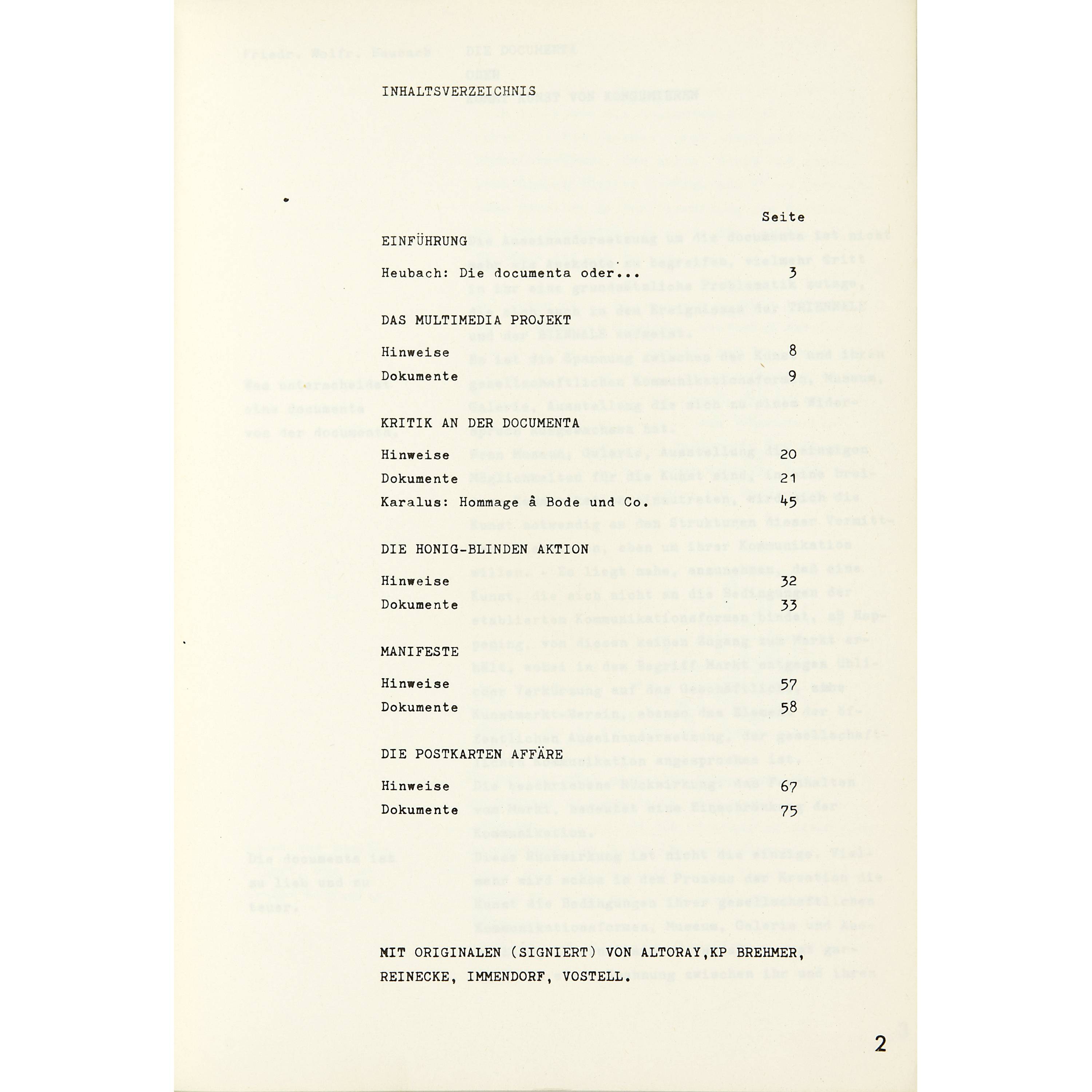 Fritz (Friedrich Wolfram) Heubach war Gründer, Herausgeber und Redakteur der Kunstzeitschrift "Interfunktionen", die von 1968-1975 in gesamthaft 12 Ausgaben existiert, neun waren unter seiner Leitung erschienen. Die vorliegende erste Ausgabe entstand in Zusammenhang mit der Kritik an der kuratorischen Ausrichtung der documenta 4 - einige Künstler der rheinischen Kunstszene protestierten gegen die "Vorherrschaft" amerikanischer Pop-Art und Objektkunst und proklamierten die stärkere Einbindung von Strömungen wie Fluxus, Happening und Intermedia. Interfunktionen 1 ist die programmatische und künstlerische Dokumentation dieser kollektiven Auflehnung