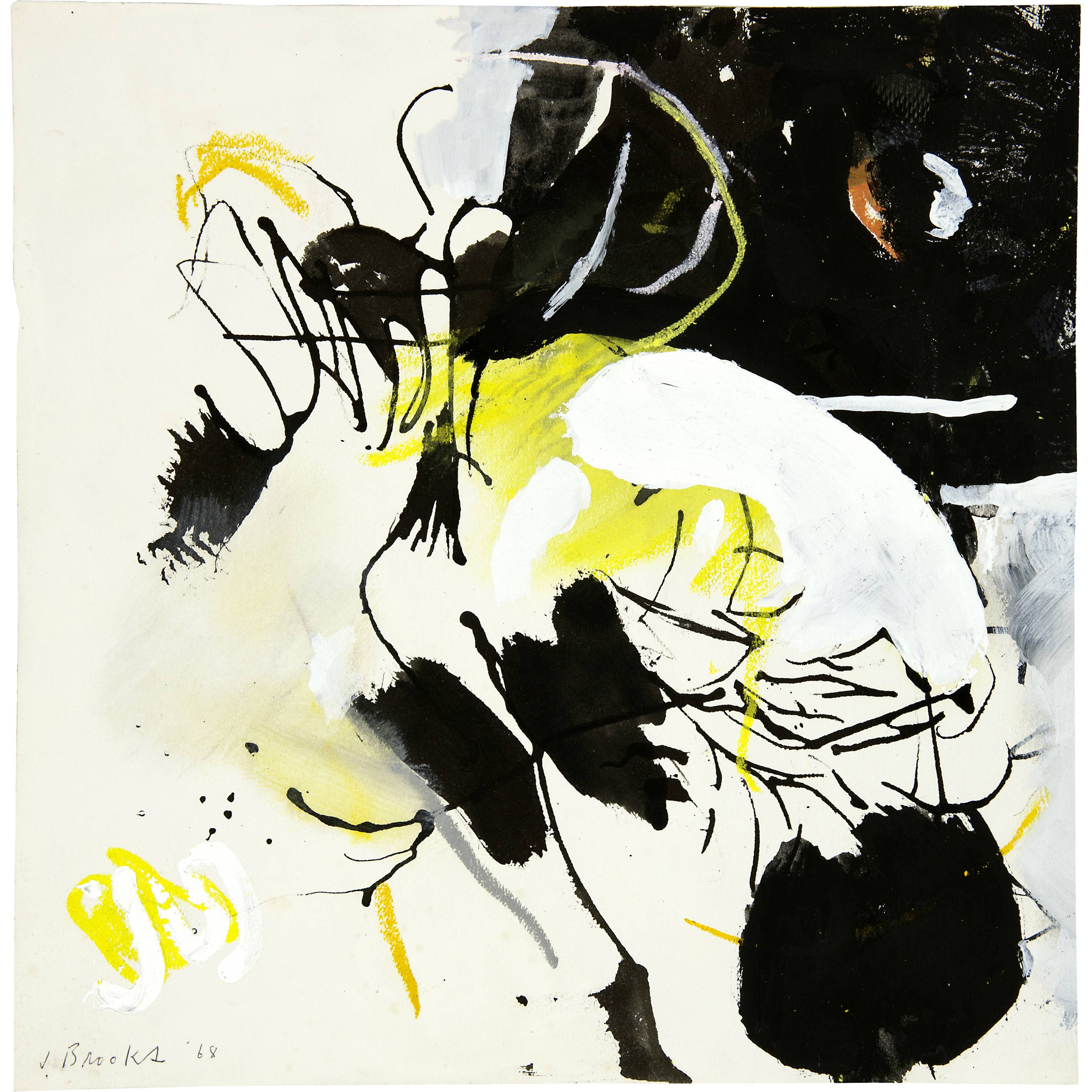 Unten links vom Künstler in Kugelschreiber signiert und datiert "J. Brooks 68", rückseitig noch einmal signiert, bezeichnet "Ink, Acrylic + crayon" und dediziert "for Charlotte"
