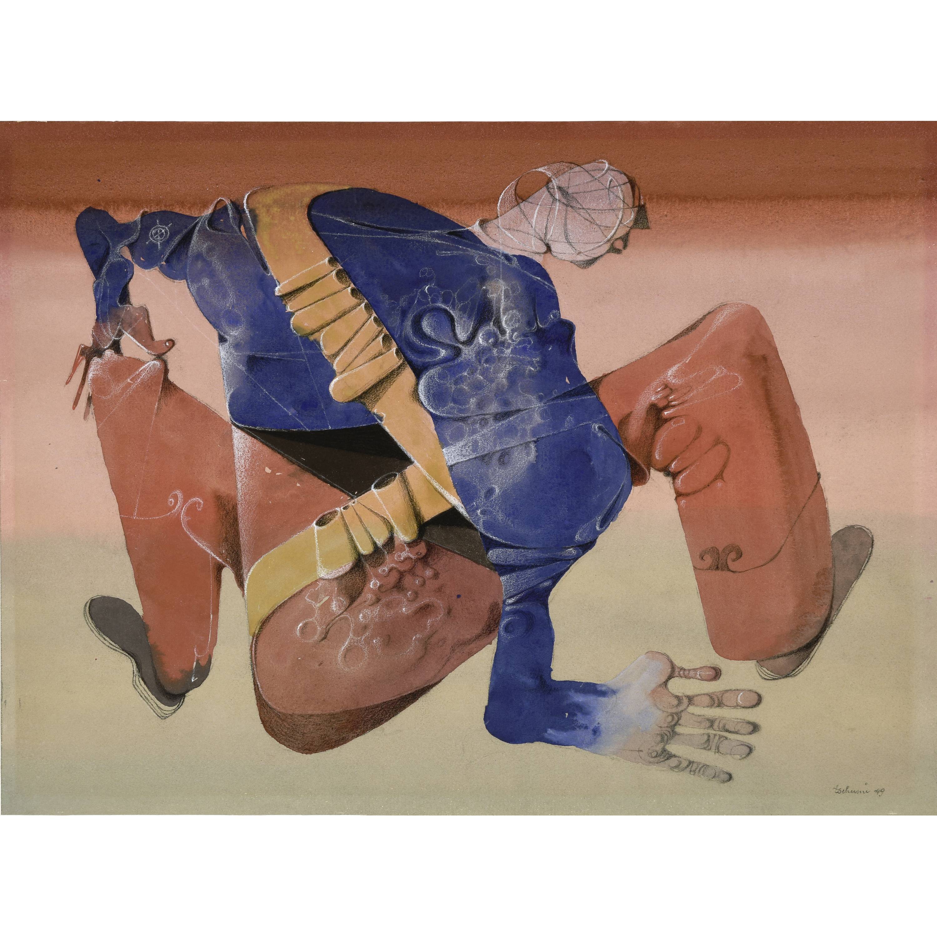 Unten rechts vom Künstler in Kreide signiert und datiert "tschumi 49", rückseitig signiert, datiert und betitelt "tschumi, 49 / sterbender Soldat" bzw. datiert "Bern, 4.2.49"