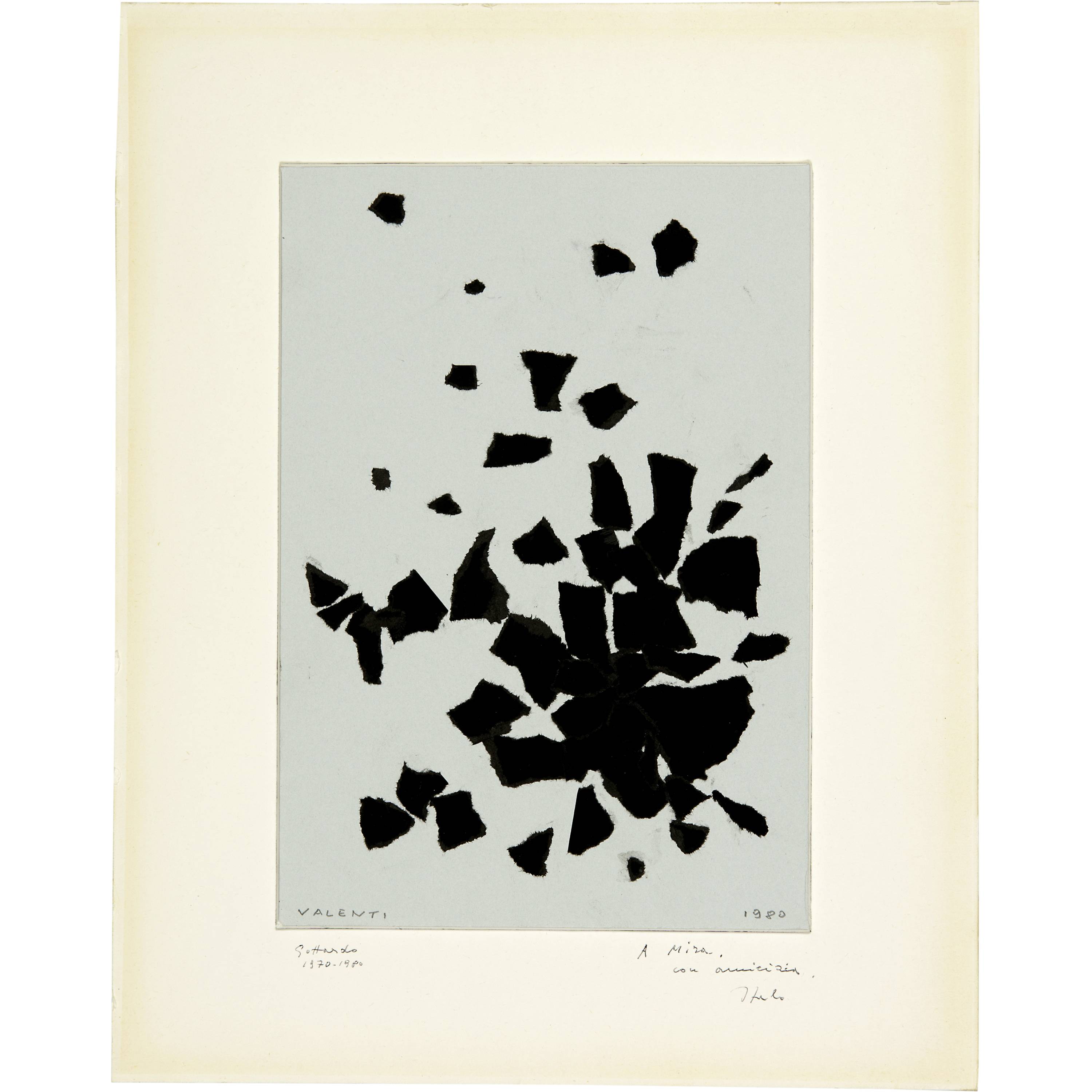 Unten links vom Künstler in Bleistift signiert "VALENTI", rechts datiert "1980". Auf der Unterlage betitelt "Gottardo / 1970-1980" und dediziert " A Mira, / con amicizia / Italo"