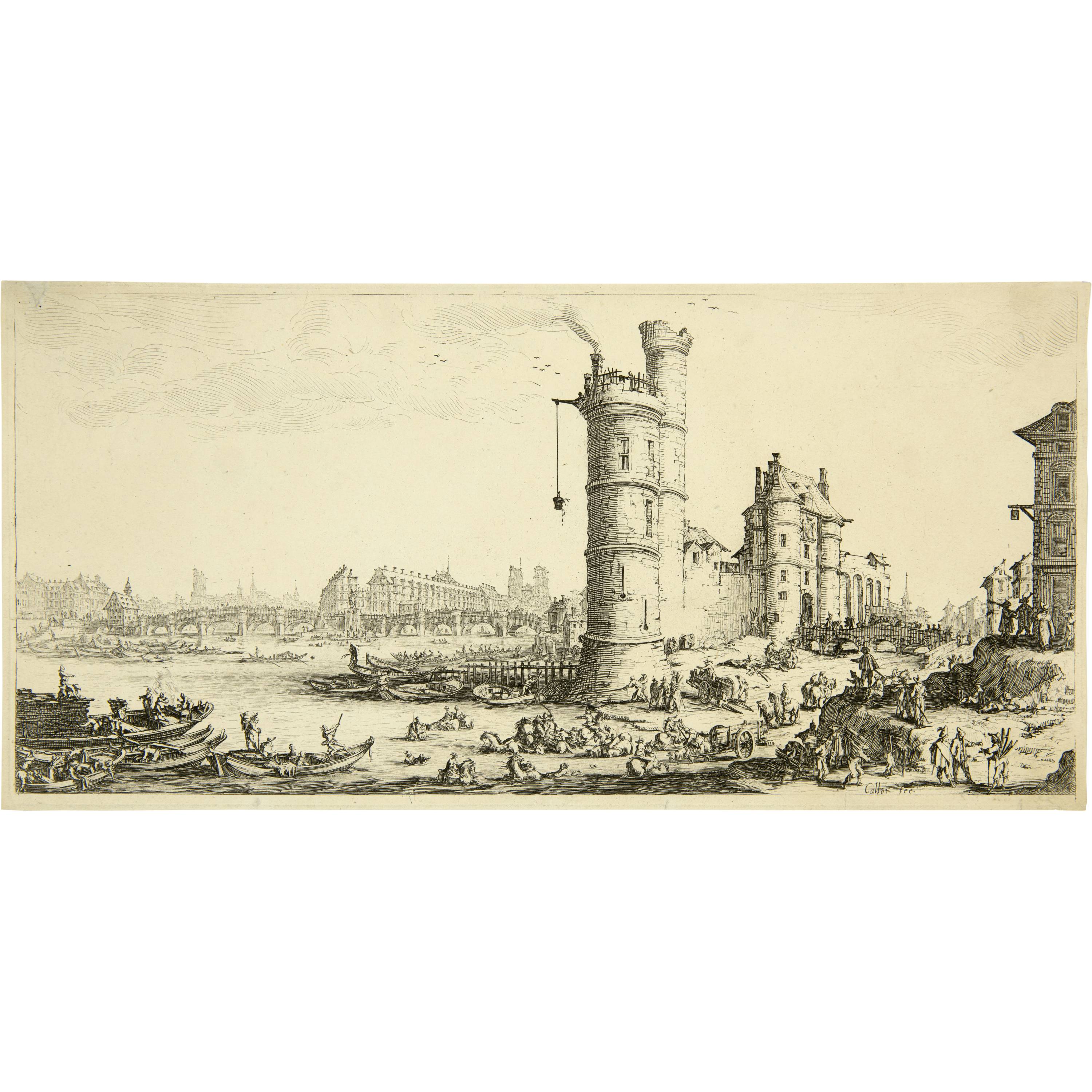 Auf Bütten, in sehr schöner Druckqualität und Erhaltung, mit einer detaillierten Darstellung des Pont-Neuf und den Türmen der Kathedrale von Notre-Dame