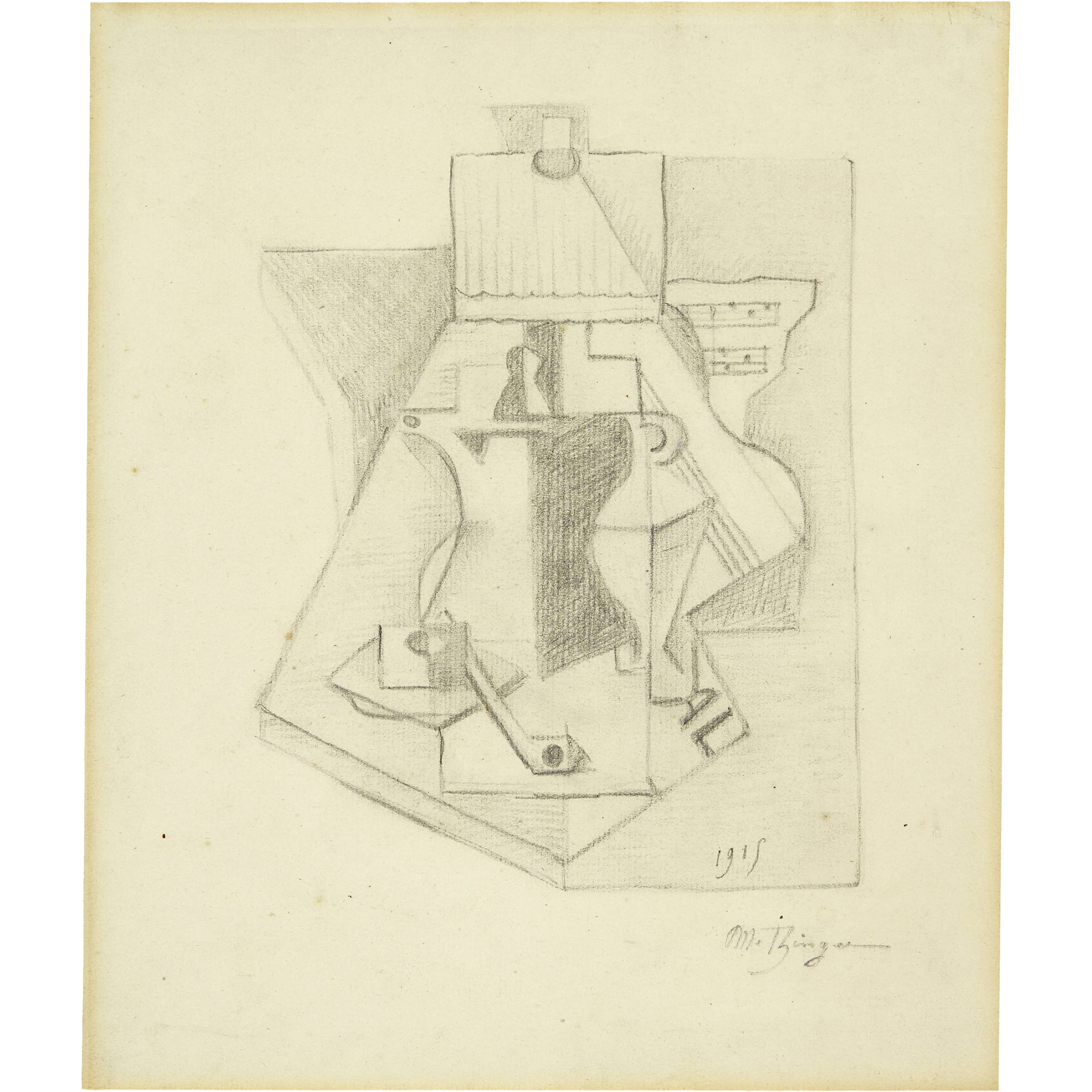 Unten rechts vom Künstler in Bleistift signiert "Metzinger", darüber datiert "1915"