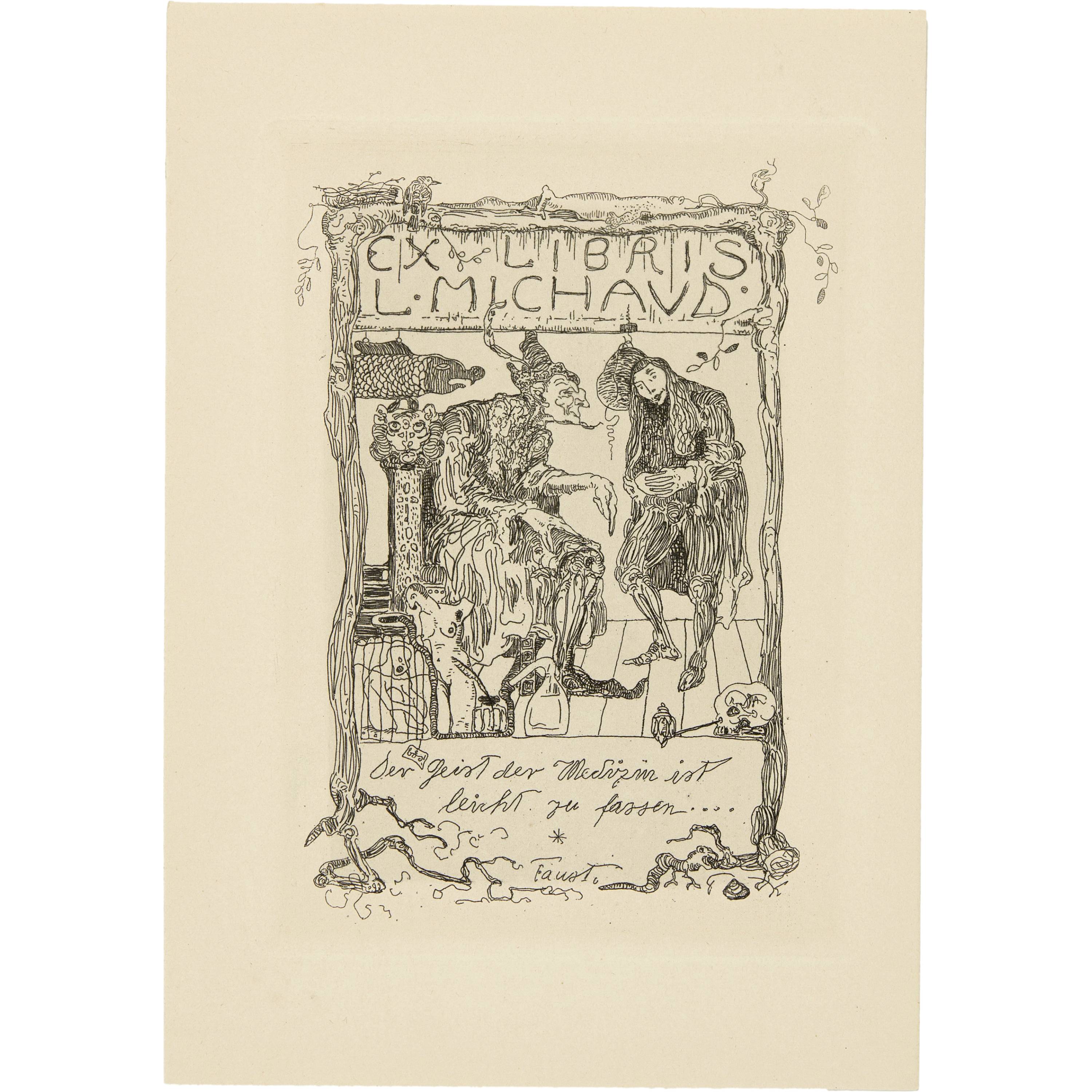 Das zweite graphische Blatt, 1901 in Bern entstanden und sicherlich von Max Girardet gedruckt. Ex Libris für Klees Schul- und Jugendfreund Louis Michaud, der nach der Maturität Medizin studierte