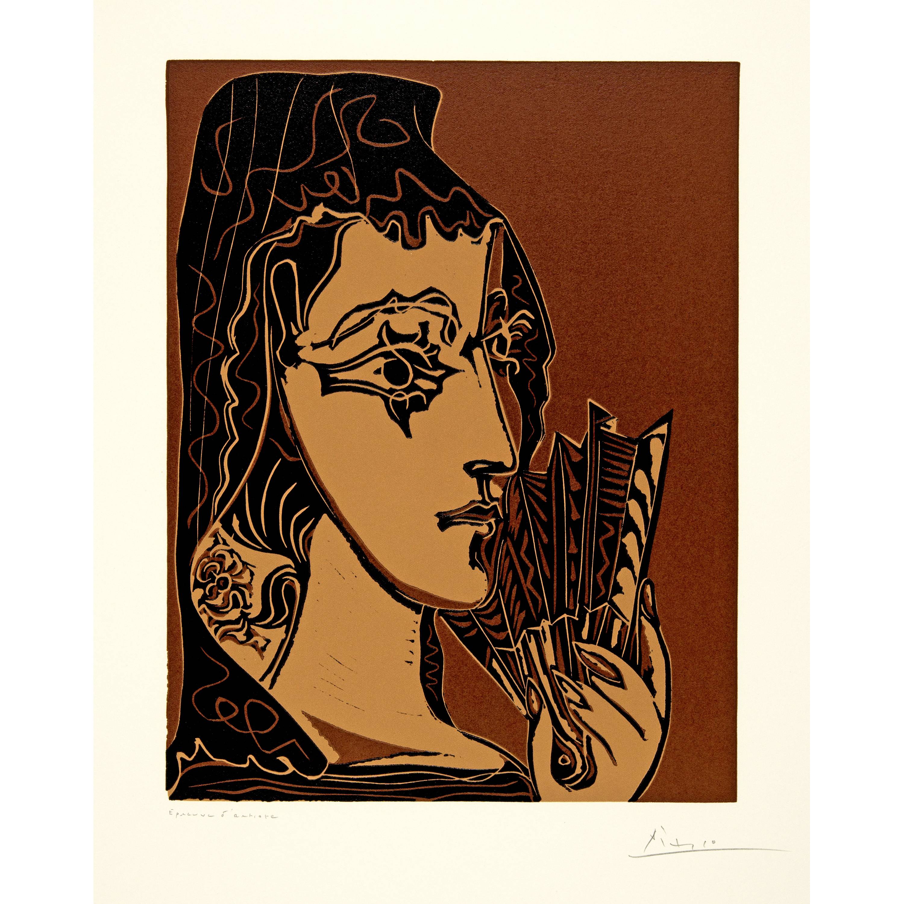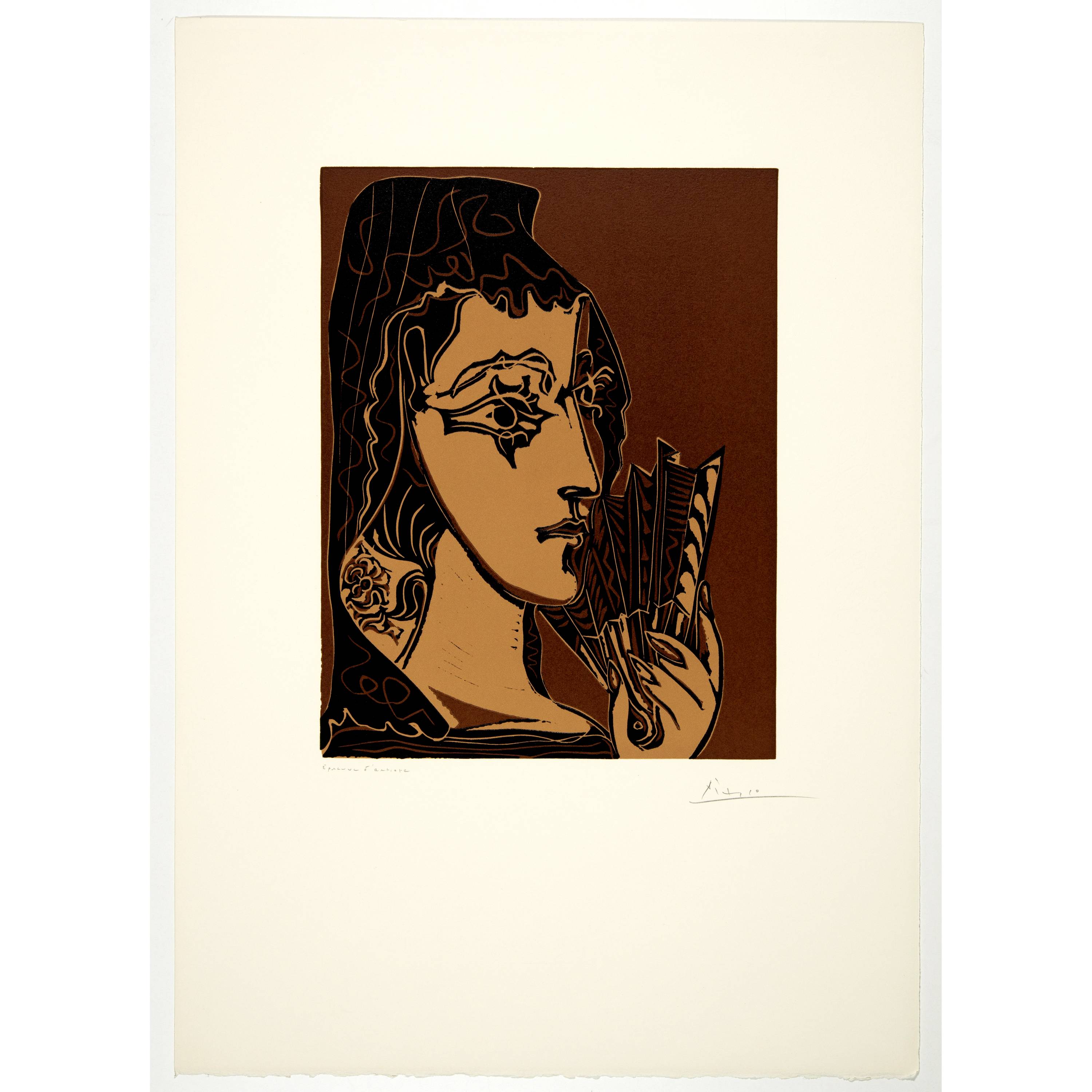 Einer von ca. 20 Drucken ausserhalb der auf 50 nummerierten Auflage, reserviert für den Künstler, den Drucker und den Verleger. Aus der zweiten Serie der Linolschnitte, vollendet am 15. April 1962 und im Atelier von Arnéra in Vallauris gedruckt