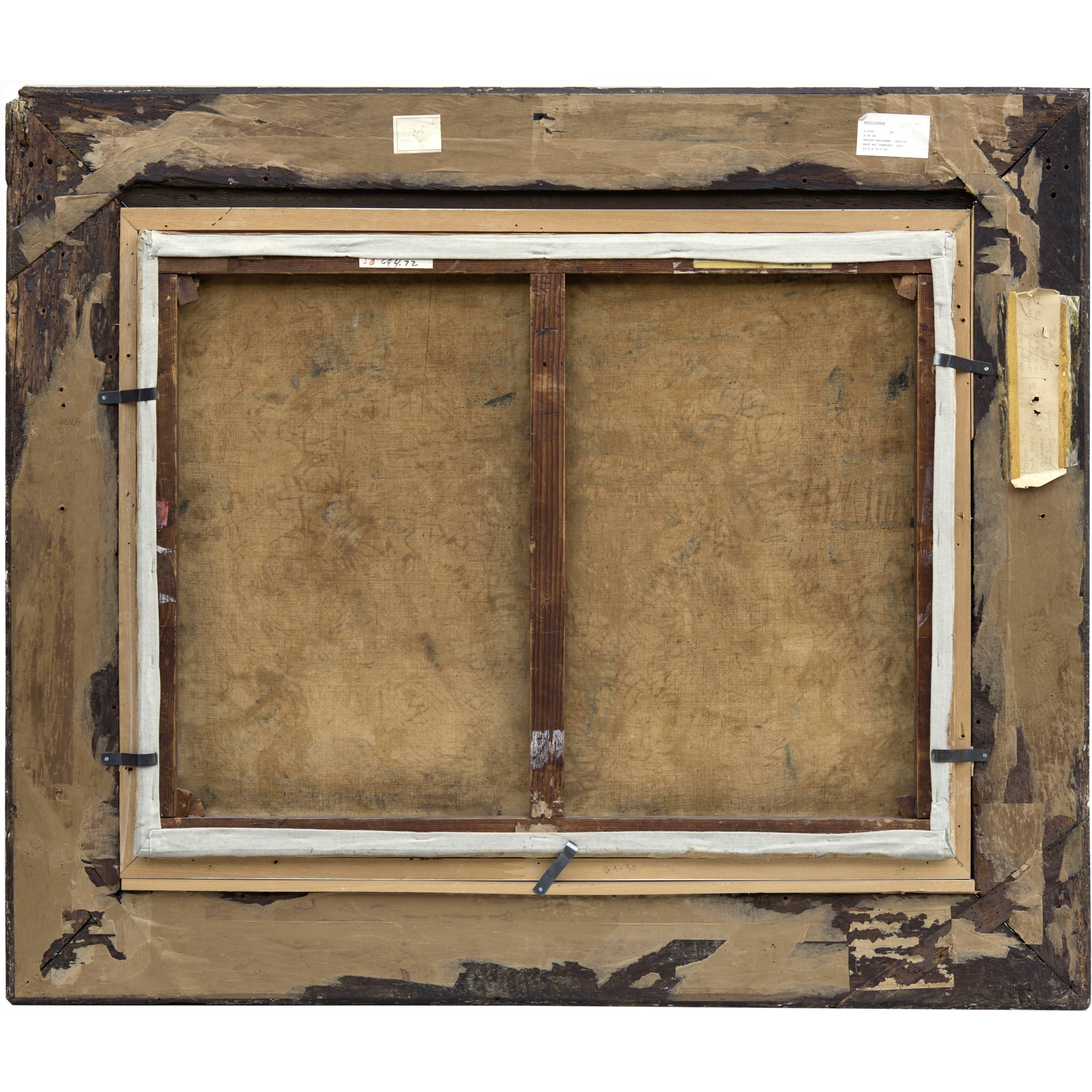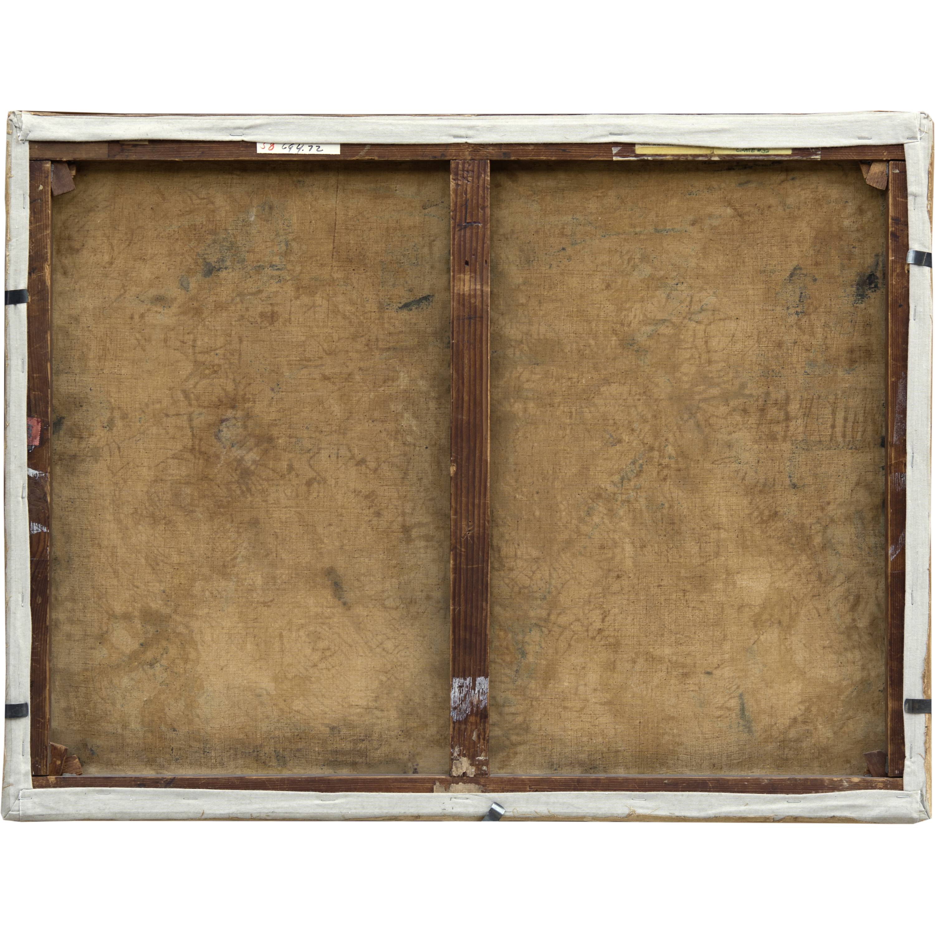 Auf dem originalen Chassis, mit späterer Nagelung mit den alten Nägeln. Randseitig Leinwand verstärkt. Stellenweise mit minimen Krakelüren. Rechts mittig mit alter Leinwandrestaurierung, wohl noch vor der Fertigstellung des Werkes. Rückseitig Leinwand leicht imprägniert. In sehr guter Erhaltung