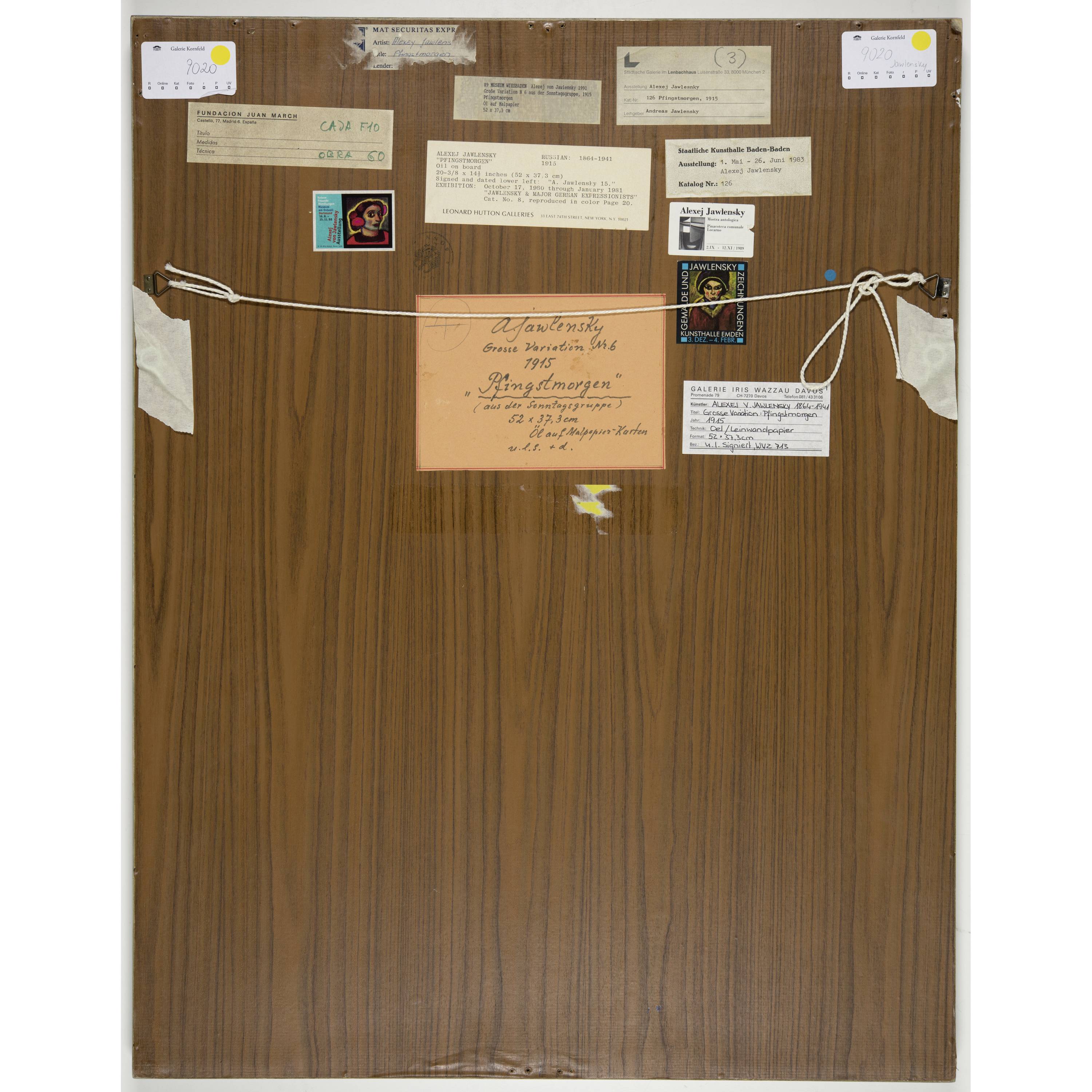 Unten links vom Künstler signiert und datiert "A. Jawlensky 15". Rückseitig von Andreas Jawlensky, dem Sohn des Künstlers, bezeichnet "A. Jawlensky / Grosse Variation