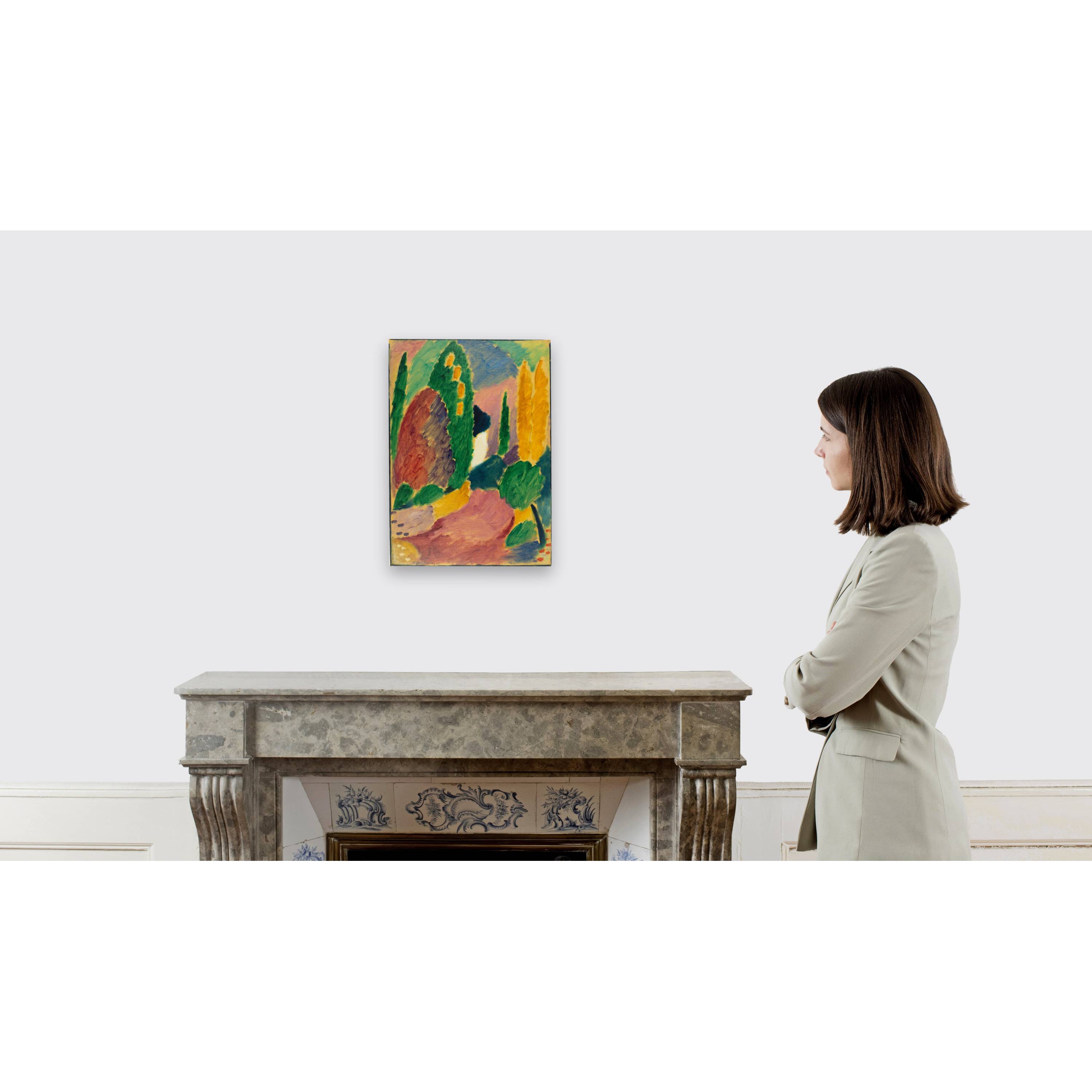 Das hier angebotene Gemälde gehört zu den am besten und detailliertesten ausgearbeiteten Werken der ganzen Serie. Nur wenige Bilder, darunter auch "Grosse Variation: Pfingstmorgen (Sonntagsgruppe)", hat Jawlensky auf ein besonders grosses Format gemalt. Die Grösse der Darstellung, die leuchtenden, harmonisch abgewogenen Farben und das ausdrucksstarke Motiv machen die hier angebotene "Variation" zu einem der bedeutendsten Gemälde der ganzen Gruppe überhaupt