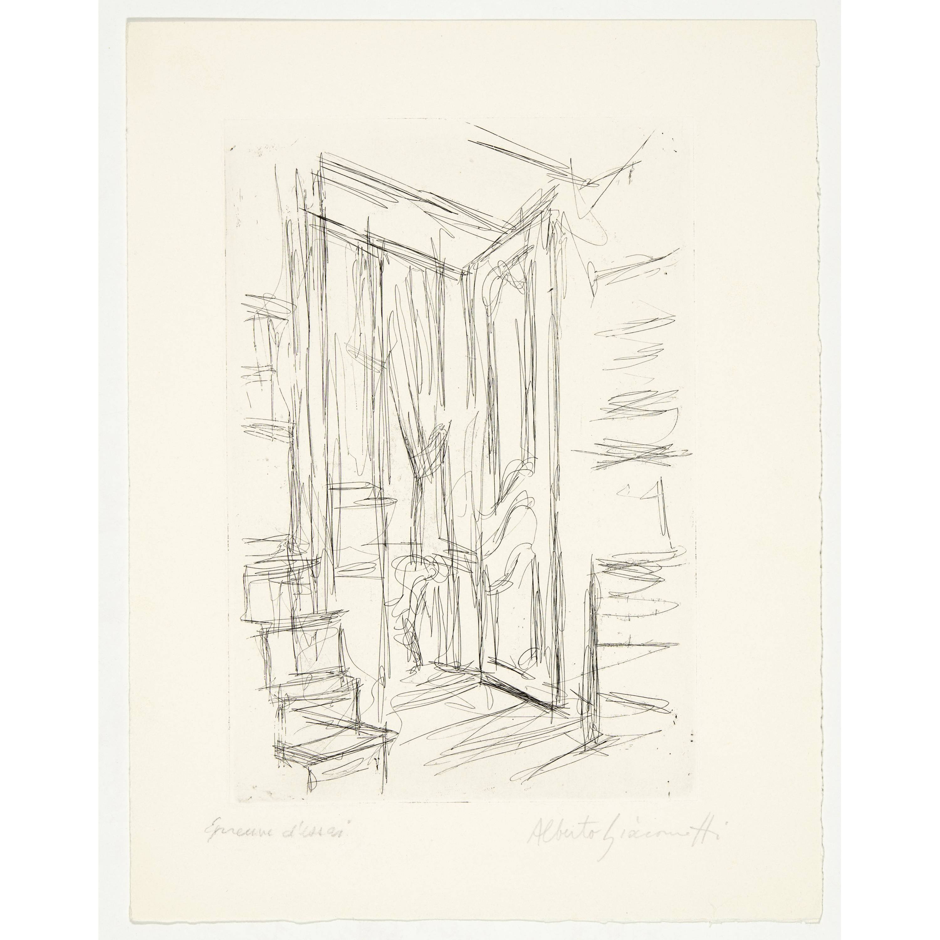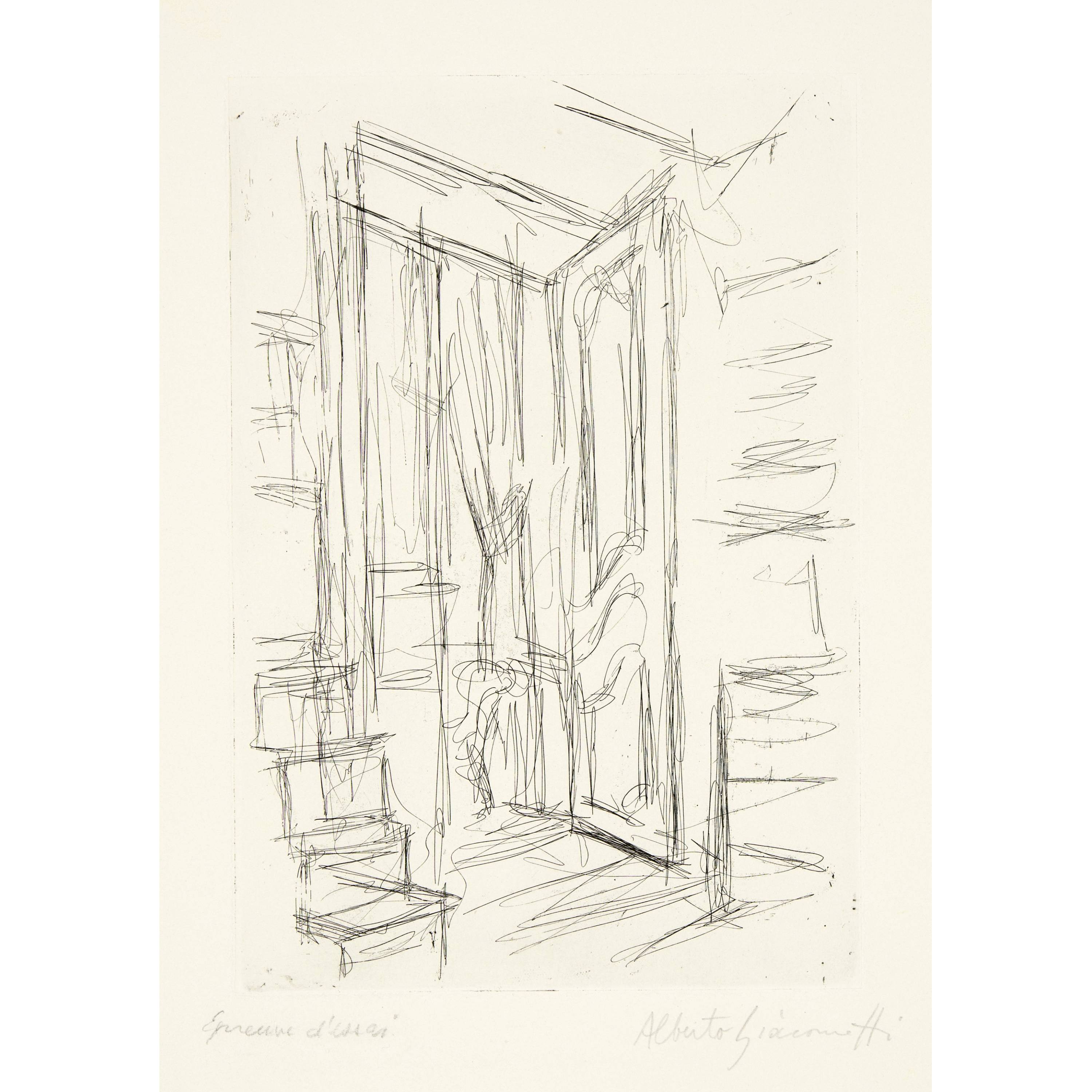 Unten rechts vom Künstler in Bleistift signiert "Alberto Giacometti", links bezeichnet "Epreuve d’essai"