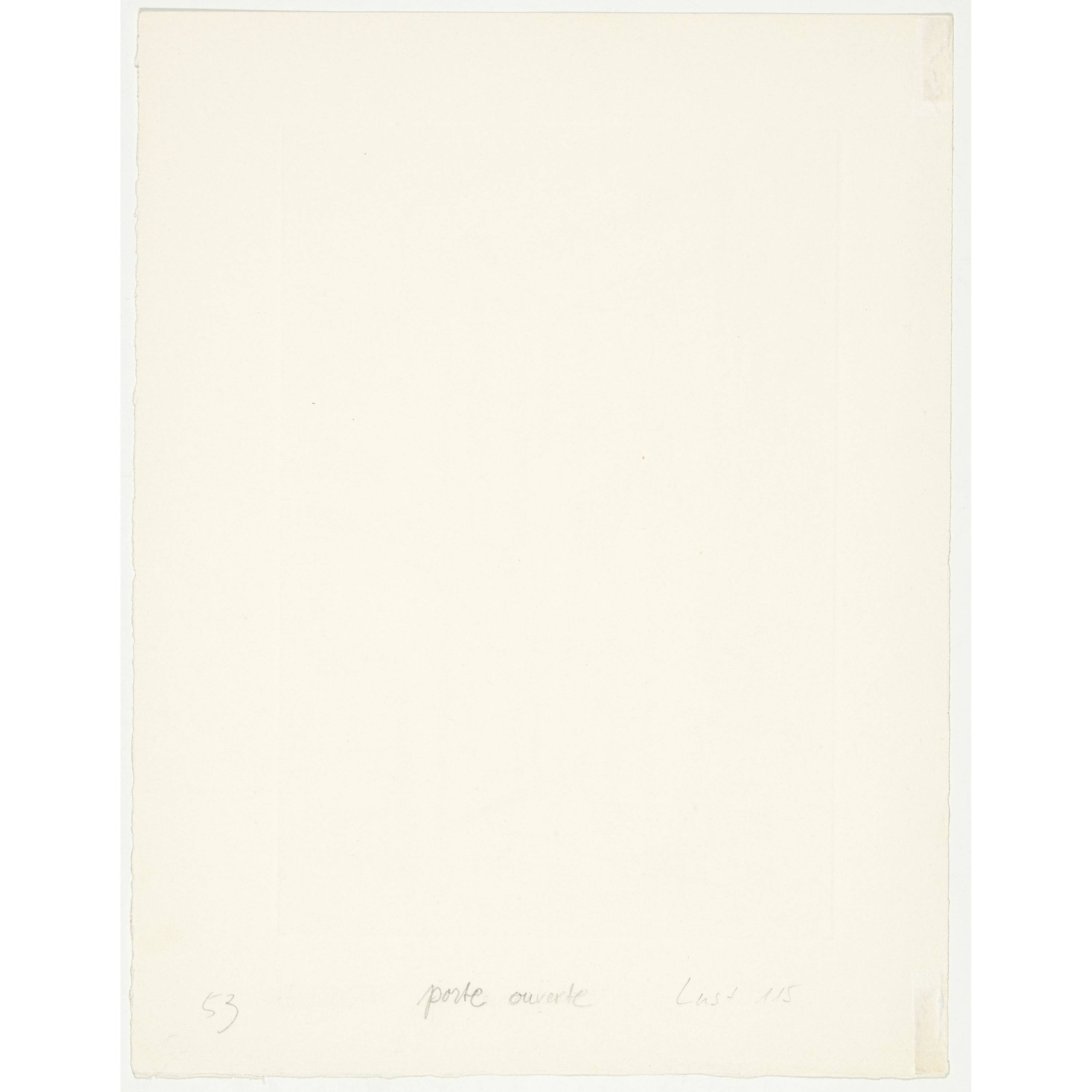 Das Motiv wurde verwendet für die Publikation von Michel Leiris, Vivantes cendrés, innommées, die 1961 bei Jean Hugues, Paris, erschien. Das vorliegende Blatt ist einer von vier bekannt gewordenen Probedrucken vor der Buchauflage