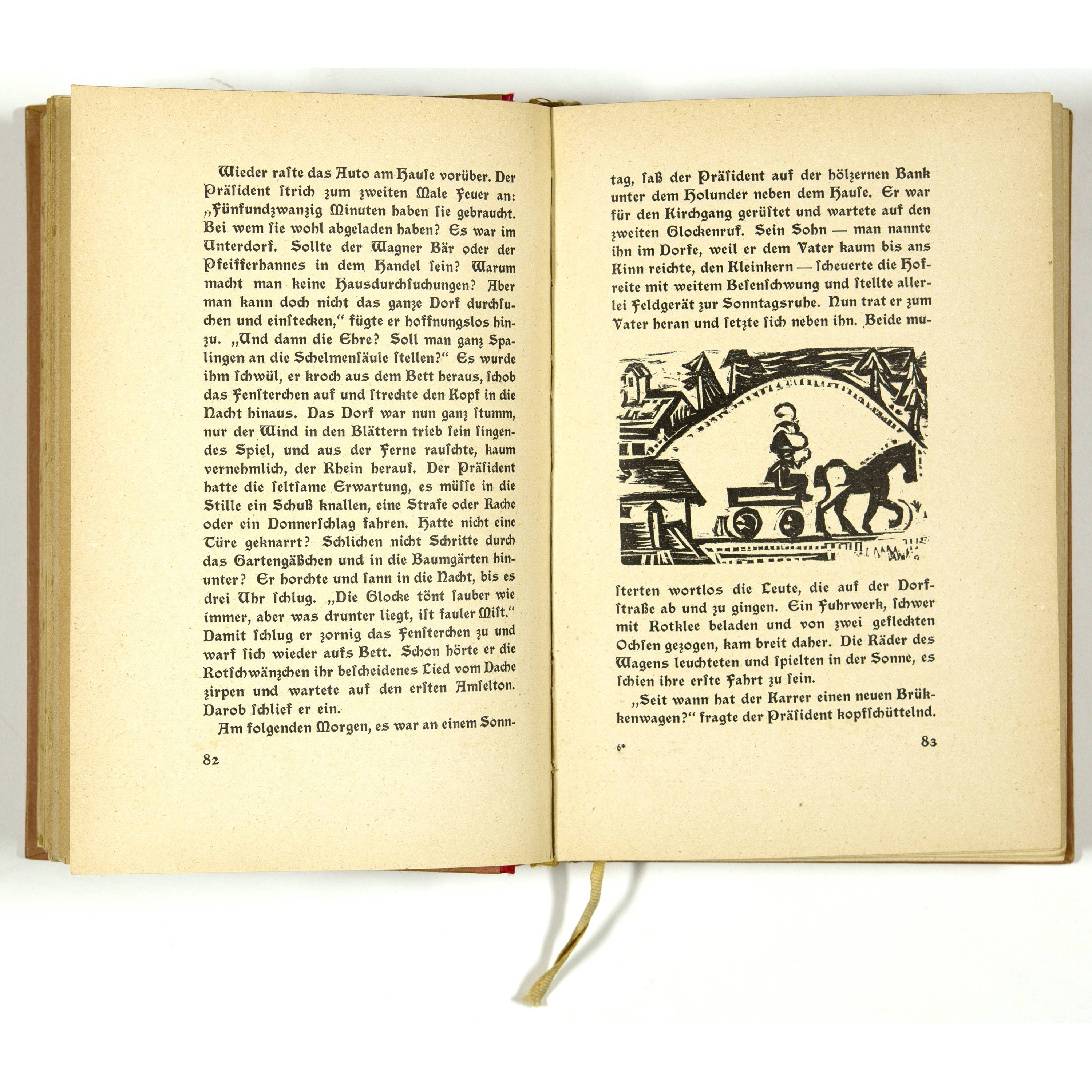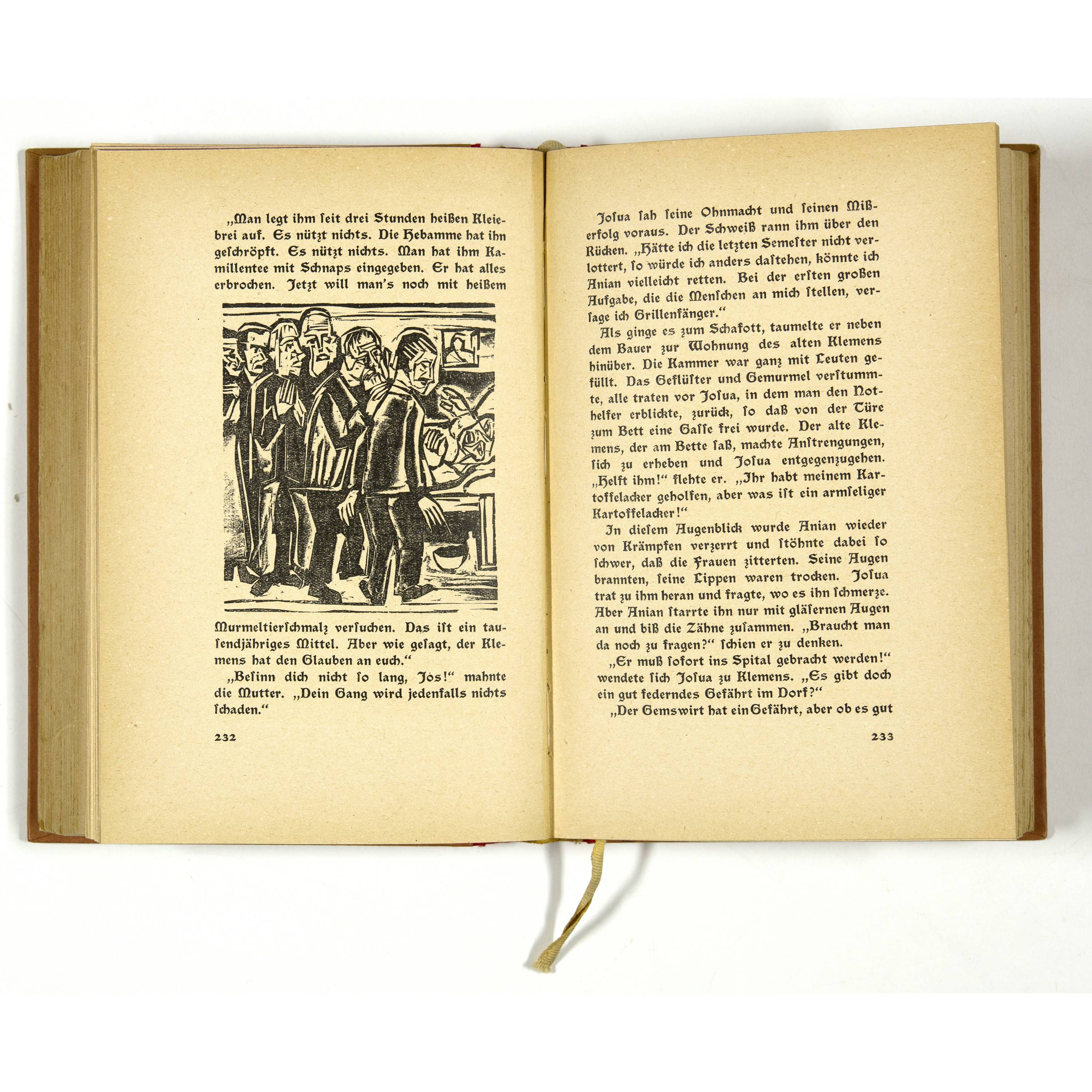 Halbleinenband mit dem figürlichen Holzschnitt auf dem Buchdeckel. In guter Erhaltung