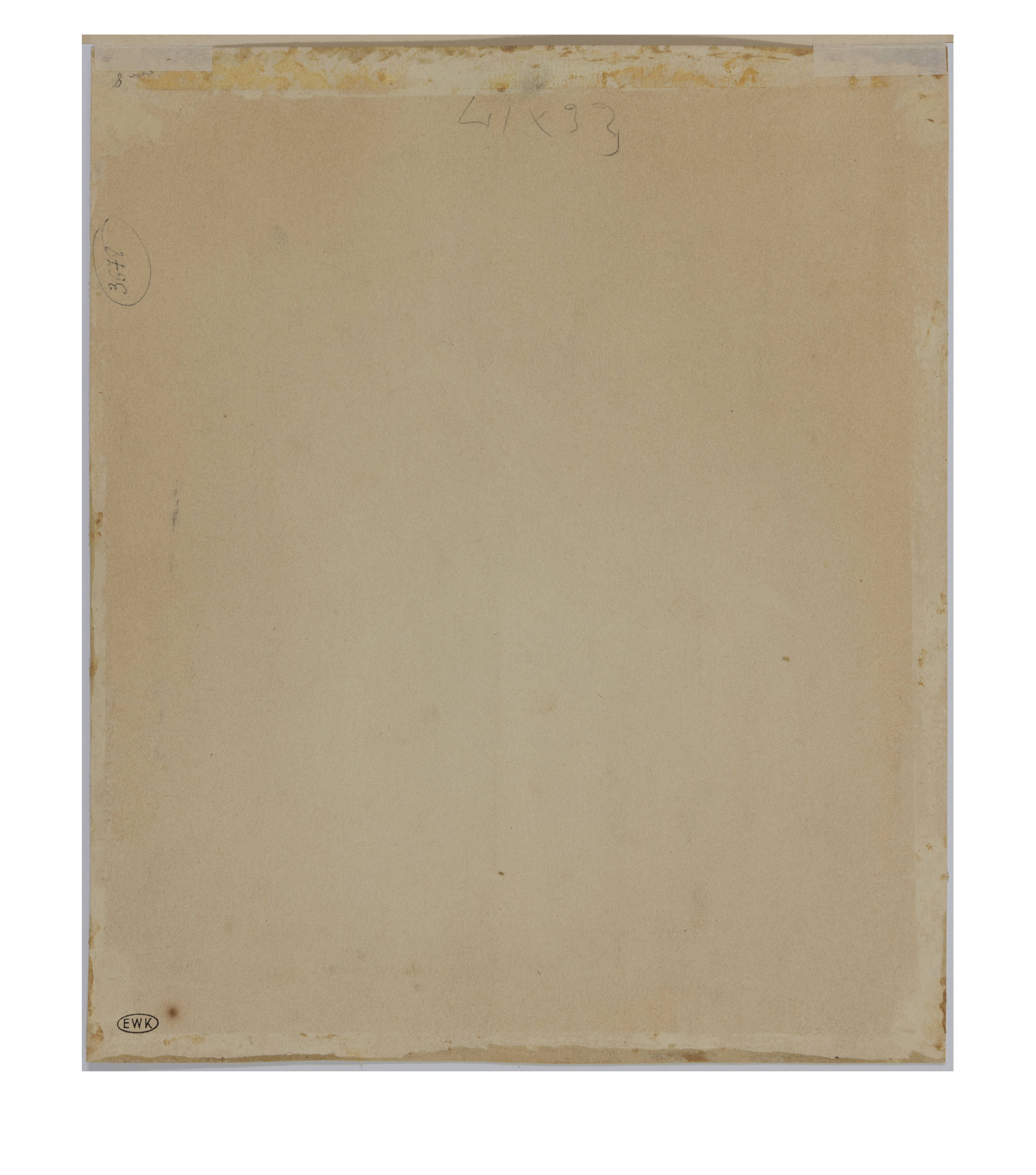Das Papier leicht gebräunt, unten rechts mit einem Fleck. Rückseitig mit Spuren einer alten Montierung
