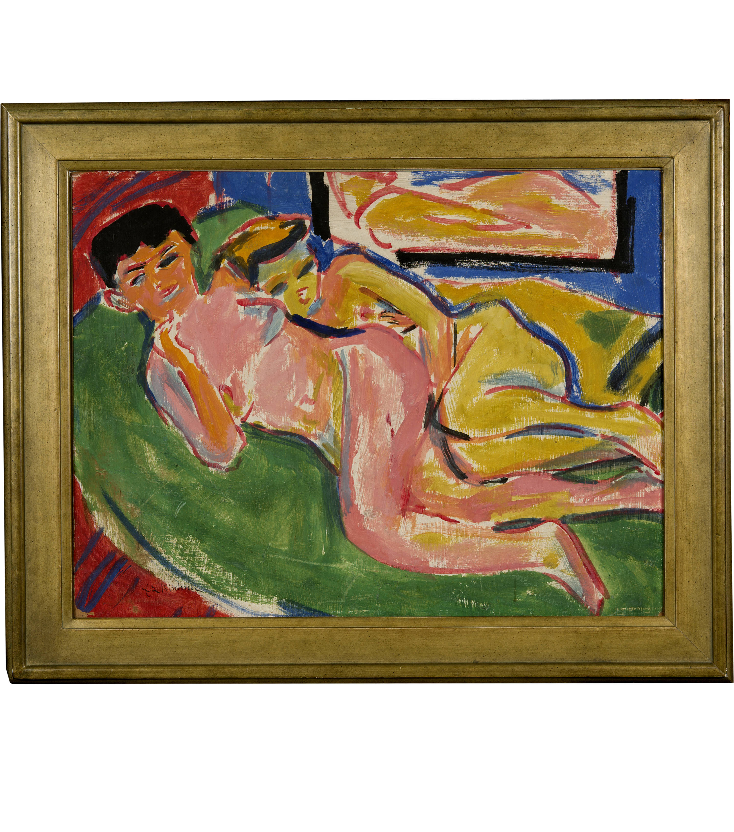 Unten links vom Künstler in Tusche signiert "E L Kirchner", rückseitig in Bleistift bezeichnet "Zwei liegende / Akte. / 2500 M. /L. Kirchner 09", weiter wohl von Erna bezeichnet "E.L. Kirchner / M. 2500.-"