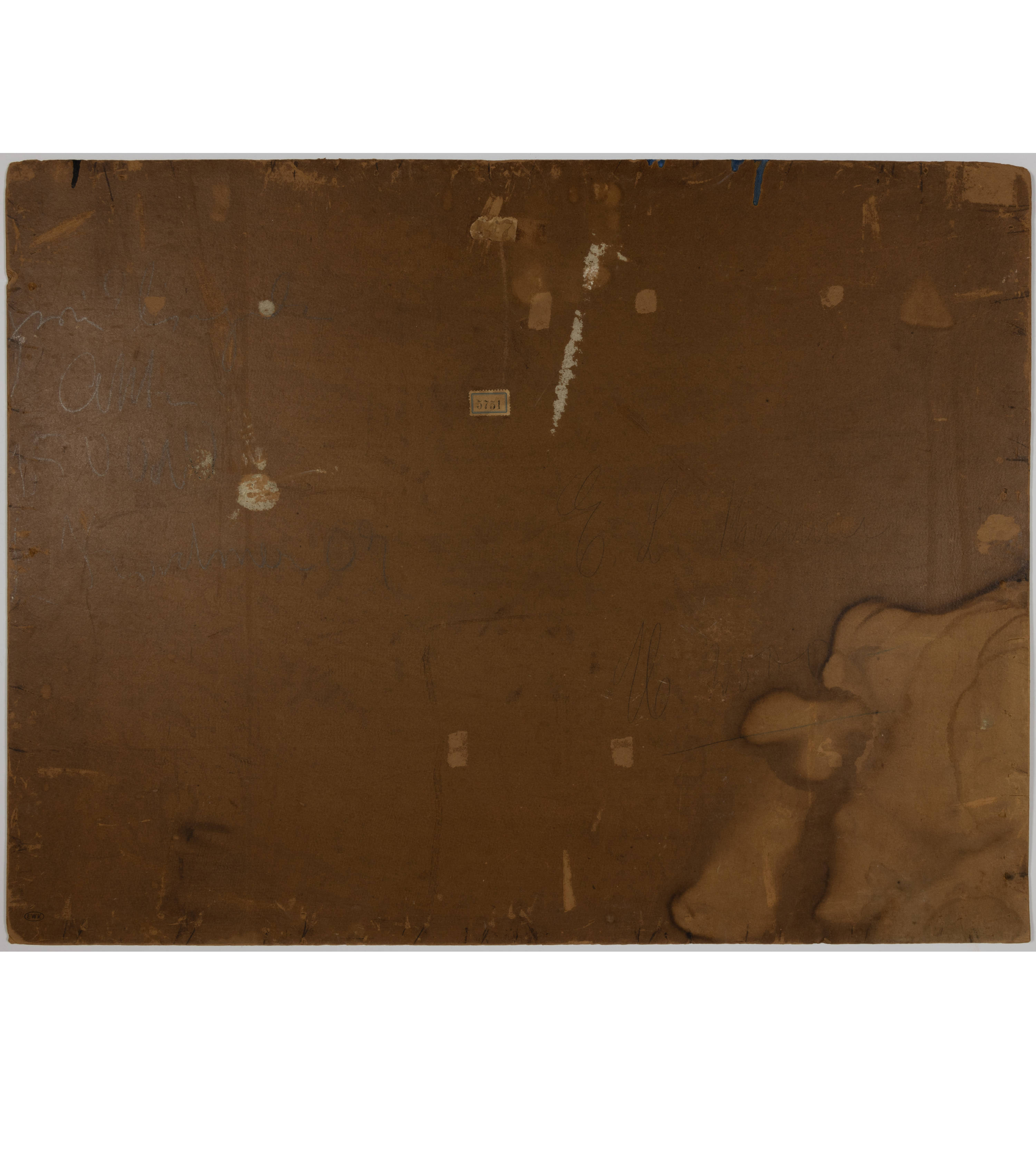 Der Karton ist leicht gewellt, die Ecken des Kartons bestossen, mit Farbverlust und an der rechten Seite etwas beschnitten. Eine Stelle am Rand rechts bestossen, allgemein an den Rändern leicht berieben. In der grünen Malschicht mit feinen Kratzern, in der rechten Bildhälfte mit kleinen Flecken. Verso mit Wasserfleck, der recto unten links sichtbar ist. Das Werk ist in guter und sehr farbfrischer Erhaltung.