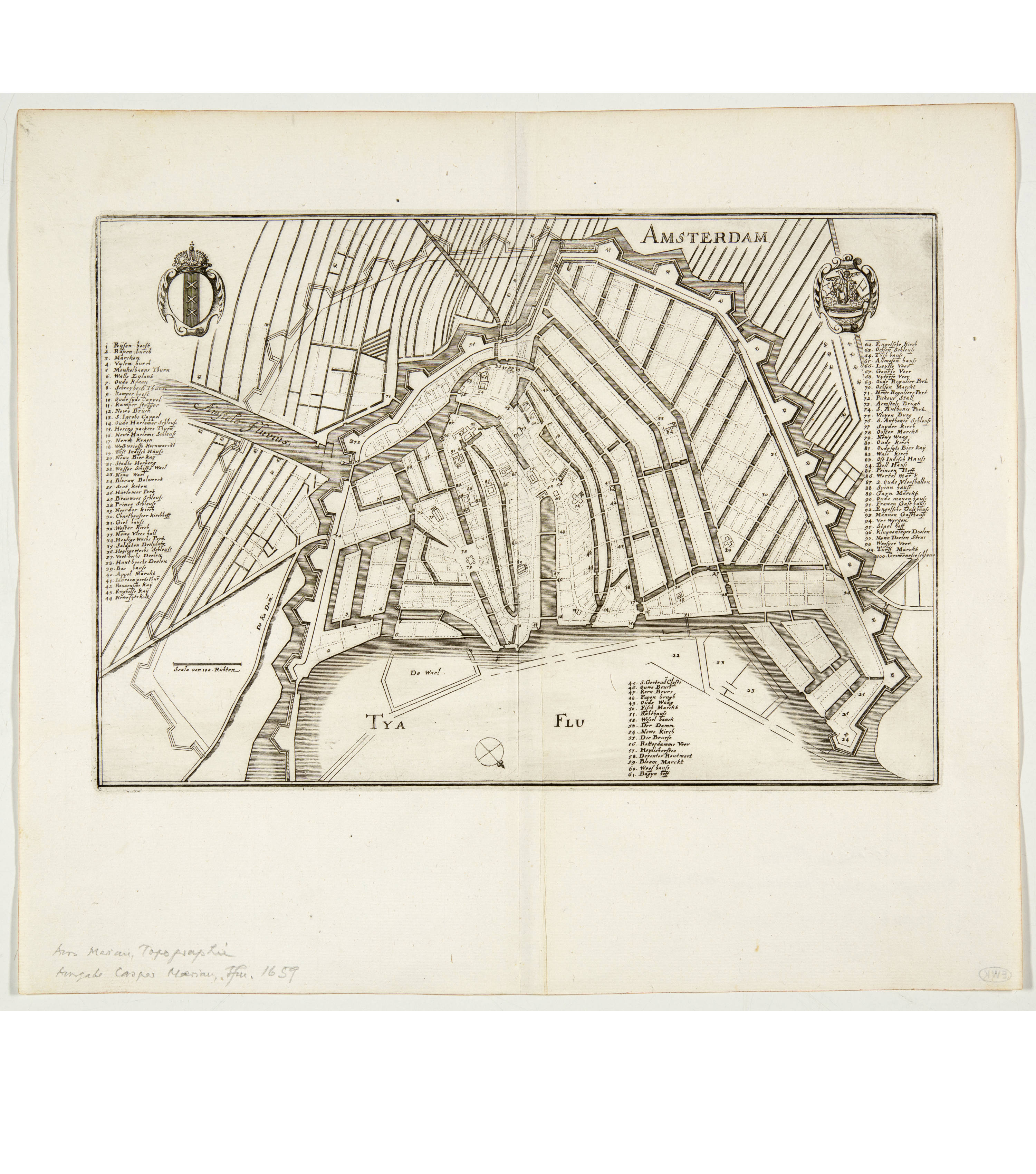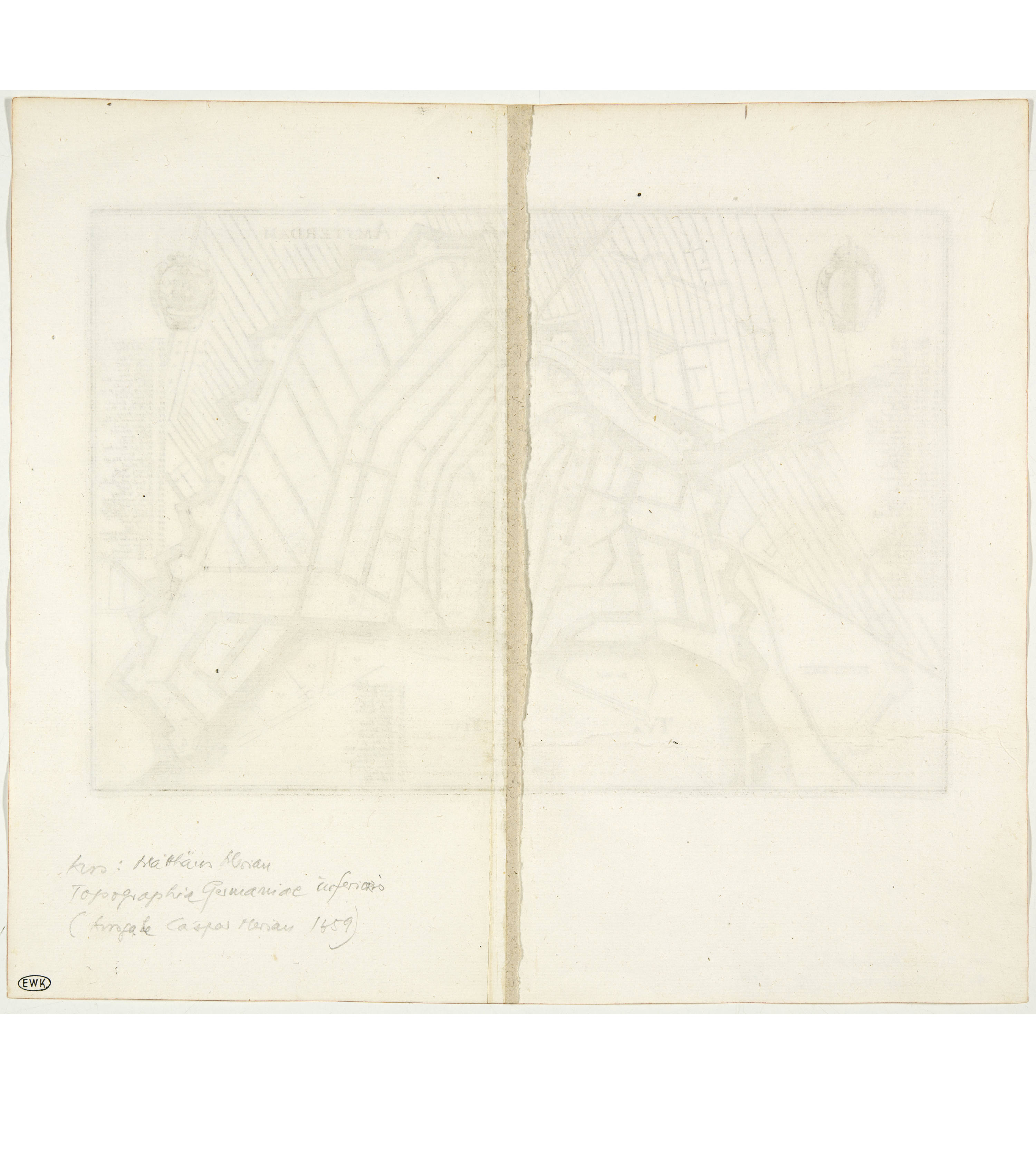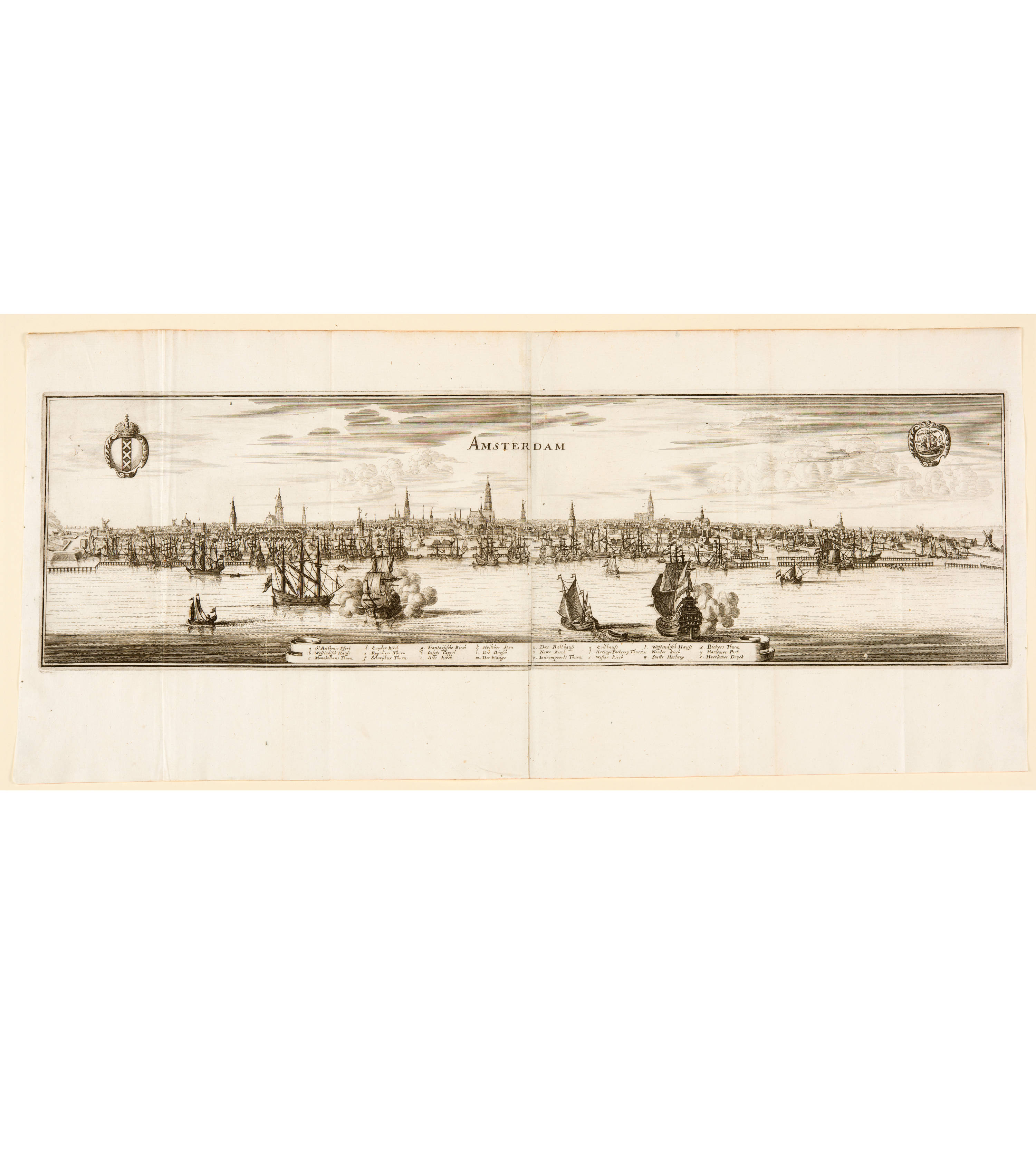 Lose beiliegend die beiden Kupferstiche, Ansicht und Grundriss von Amsterdam