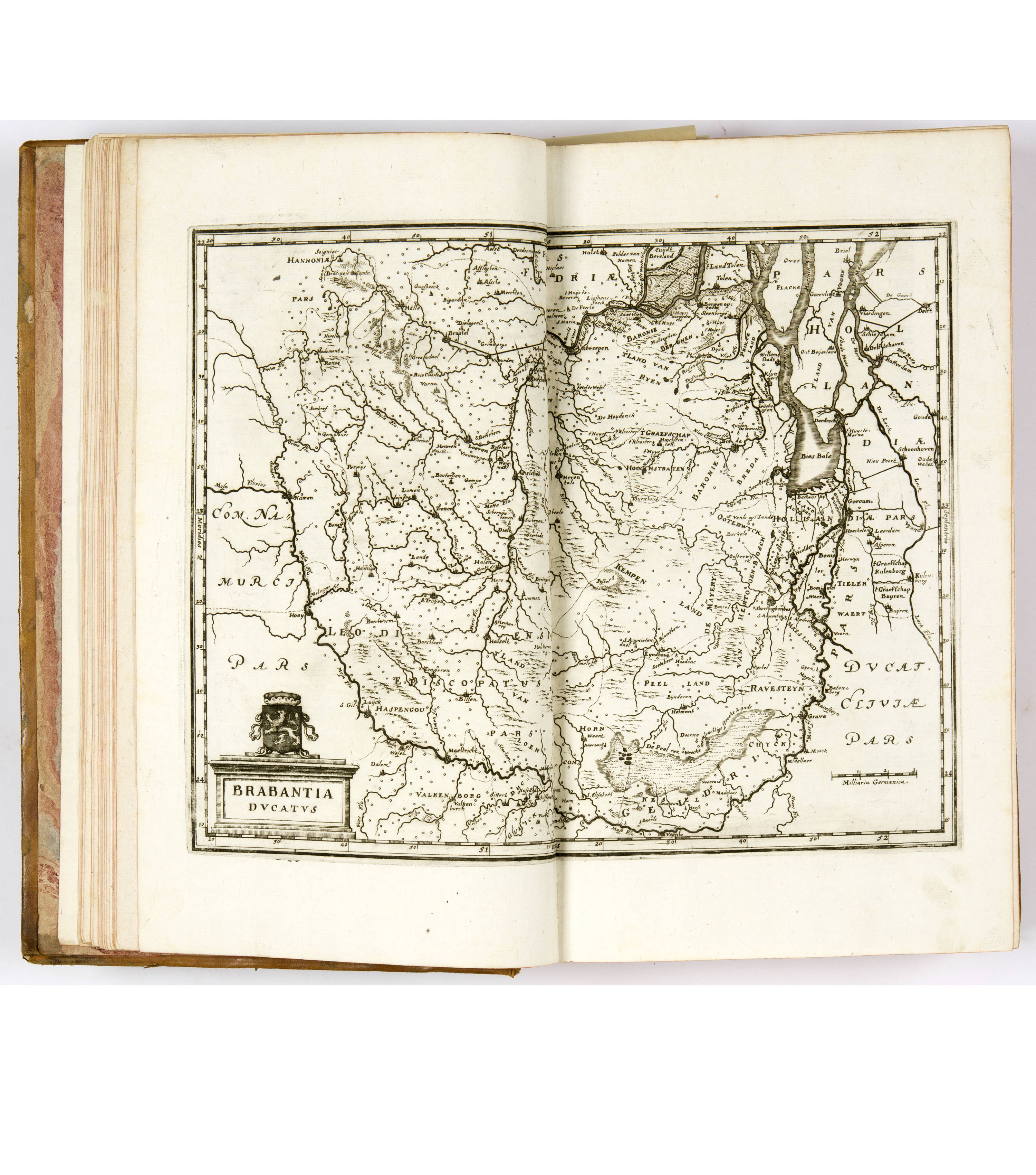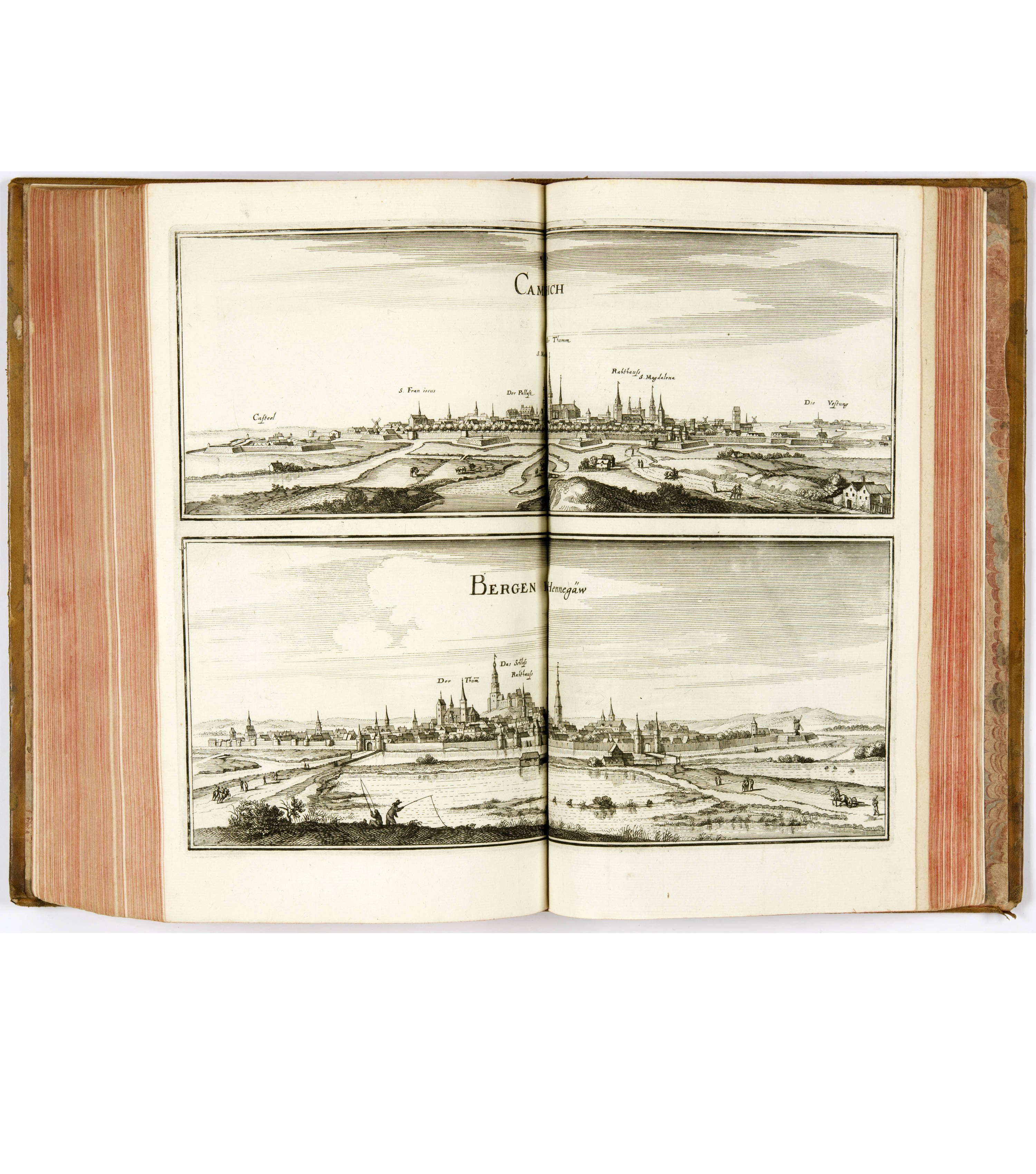 In Leder-Band. Im vorderen Innendeckel mit Ex Libris, die grosse Ansicht von Amsterdam und der Grundriss herausgenommen und separat vorhanden