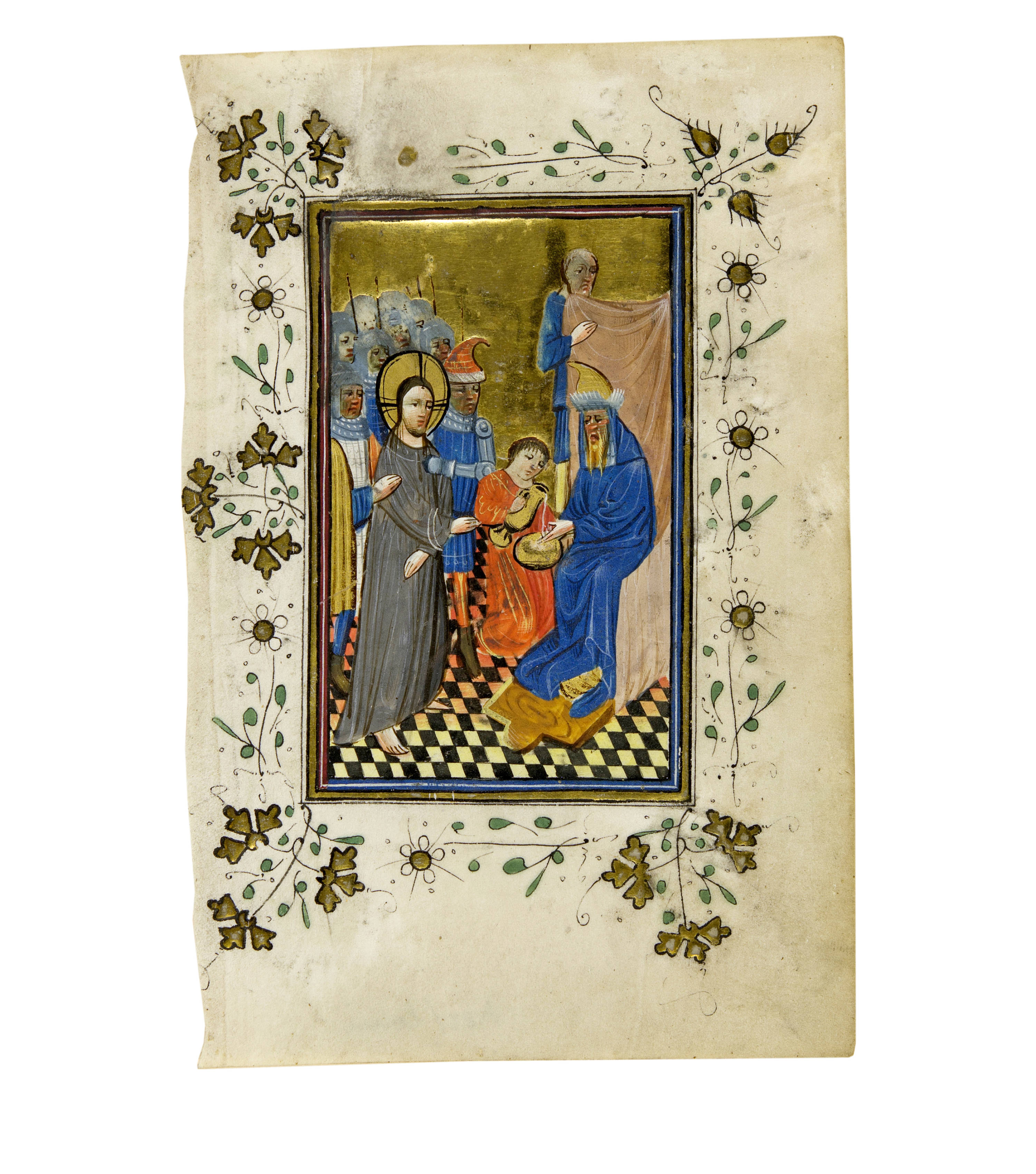 Qualitätvolle Miniatur aus einem Stundenbuch, entstanden im nördlichen Holland und vielleicht Nicolaus Brouwer zuzuschreiben. Recto und verso ohne Text