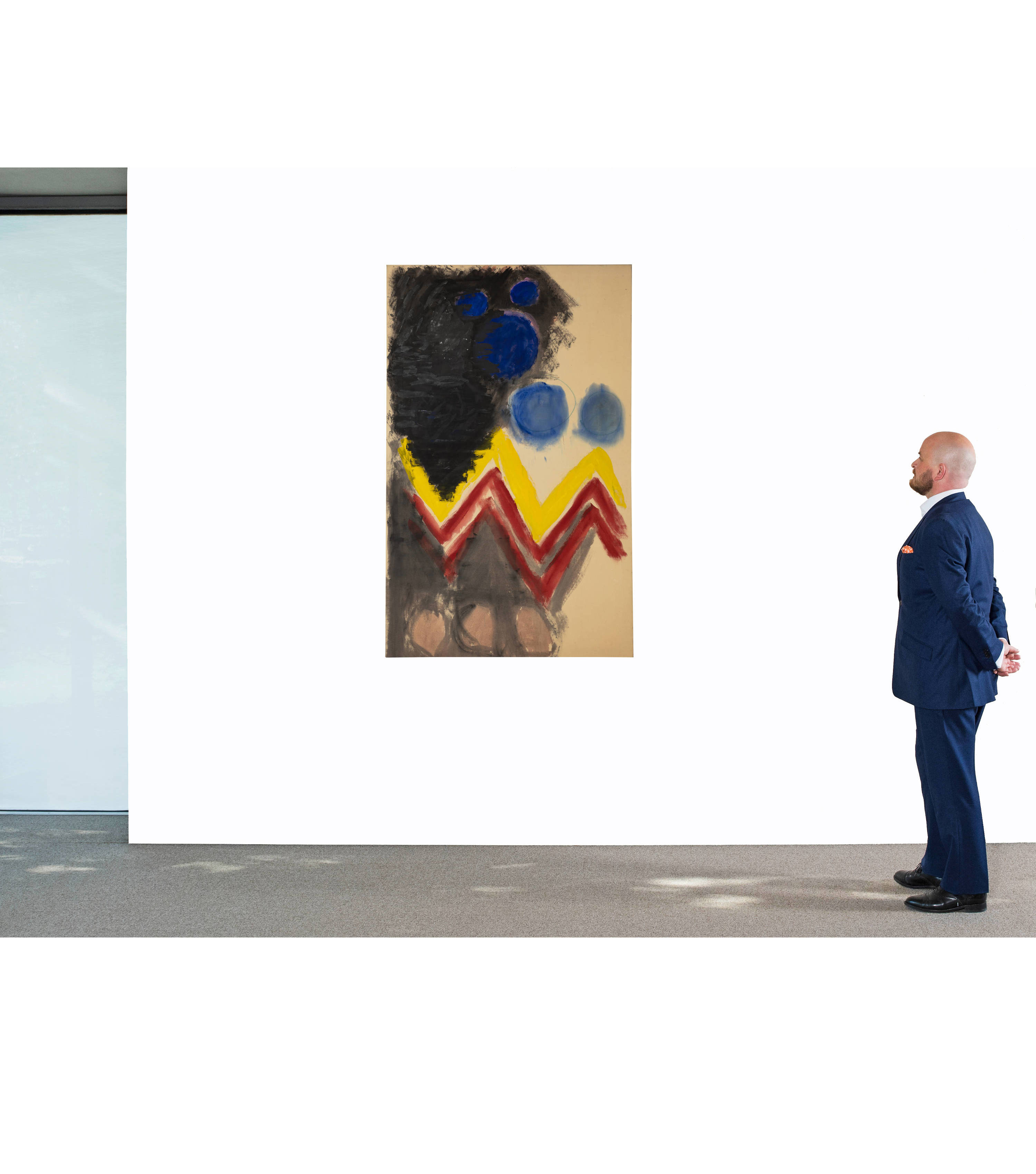 Kimber Smith entwickelte während seines 10-jährigen Aufenthalts in Paris (1954-1964) sowie in der Zeit nach seiner Rückkehr in die USA einen eigenen, sehr persönlichen Malstil, der von Formen und Zeichen wie Kreisen und Bögen, Zickzacklinien und Winkeln geprägt ist. Insbesondere die Arbeiten der 1970er-Jahre sind durch eine offene, auf wenige Elemente reduzierte Darstellung gekennzeichnet. Dabei kommen unbearbeitete Leinwand- oder Stoffflächen zum Einsatz, die lediglich mit Farbwasser getränkt wurden. Der Farbauftrag erfolgte mit Pinsel oder Tube direkt und in ungemischter Form auf den meist nassen Malträger. Diese in kräftigen Farben ausgeführte Arbeit war zusammen mit dem vorhergehenden Los in der bedeutenden Retrospektive 2004 im Kunstmuseum Winterthur ausgestellt.