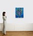 Flowers play a leading role in Chagall's oeuvre. The bouquet of flowers stands as an ephemeral source of inspiration that makes the boundary between the exterior and the interior fluid and even dissolves it, as in the present painting: on a table with a fruit bowl stands a vase from which a lush bouquet rises up into the air and takes up the entire pictorial space. The flowers become an incomparable firework and shine against the blue ground. Almost like a drawing, the artist has indicated with his brush the well-known houses of his Belorussian hometown of Vitebsk on the horizon; on the left is a lovers' embrace. It is a reminiscence of earlier times; at the top the "sun-moon" shines, leaving it open whether the day is dawning or the night, and at the bottom right the mystical animal can be seen, which, like the flowers, also stands for inspiration. Rarely do the flowers dominate a painting as in this case. Despite the dominance of the bouquet, Chagall hides many small quotations from his life story