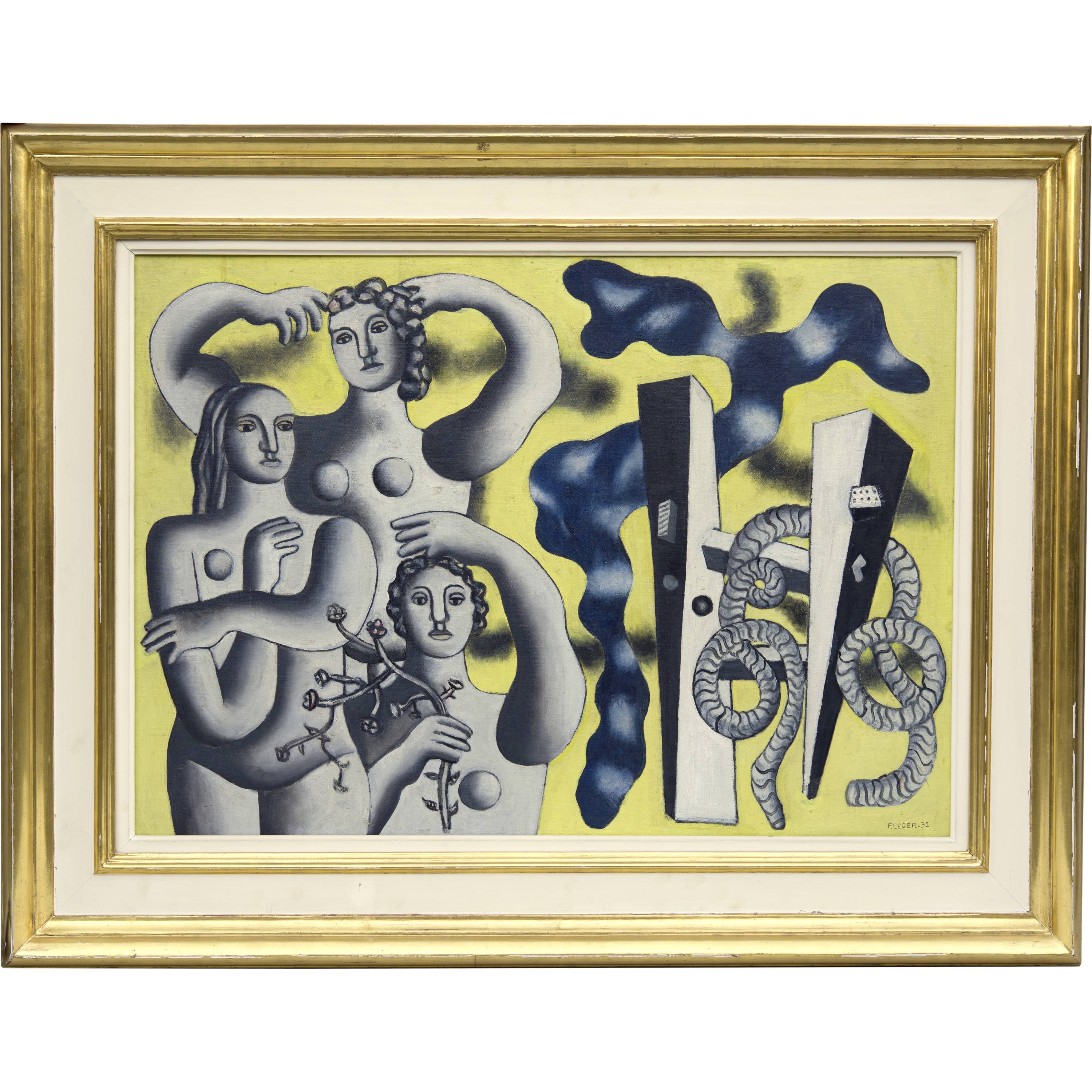 Signed and dated by the artist lower right "F. LÉGER 32". Titled, signed and dated on the reverse under the doubling "Composition aux trois figures / F. LÉGER 32"
