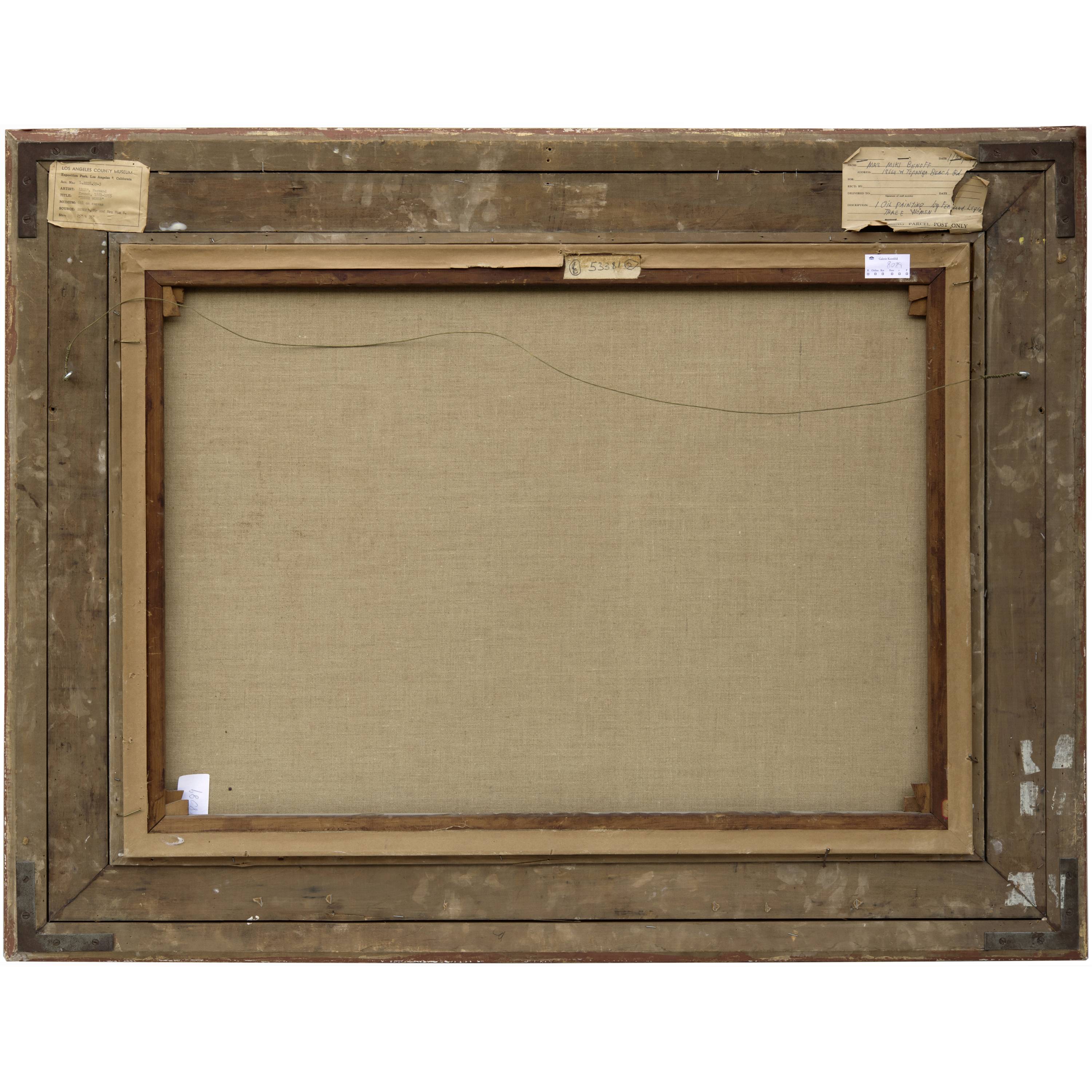 Fernand Léger hat seine Gemälde immer auf der Rückseite signiert. Durch die Doublierung ist die Signatur verdeckt worden. Die Galerie Kornfeld hat daher das Gemälde von der Hochschule der Künste in Bern eingehend untersuchen lassen. Der Auftrag war, mittels einer Röntgenuntersuchung die vorhandene Bezeichnung sichtbar zu machen. Zur Visualisierung einer etwaig vorhandenen Bezeichnung bieten sich je nach deren Pigmentierung sowohl die Röntgenuntersuchung als auch die Infrarot-Transmission an. Mittels IR-Transmission im Wellenlängenbereich bis 1100nm konnte die in der linken oberen Ecke auf der Rückseite der originalen Leinwand gelegene dreizeilige Bezeichnung mit Signatur und Datierung sichtbar gemacht werden