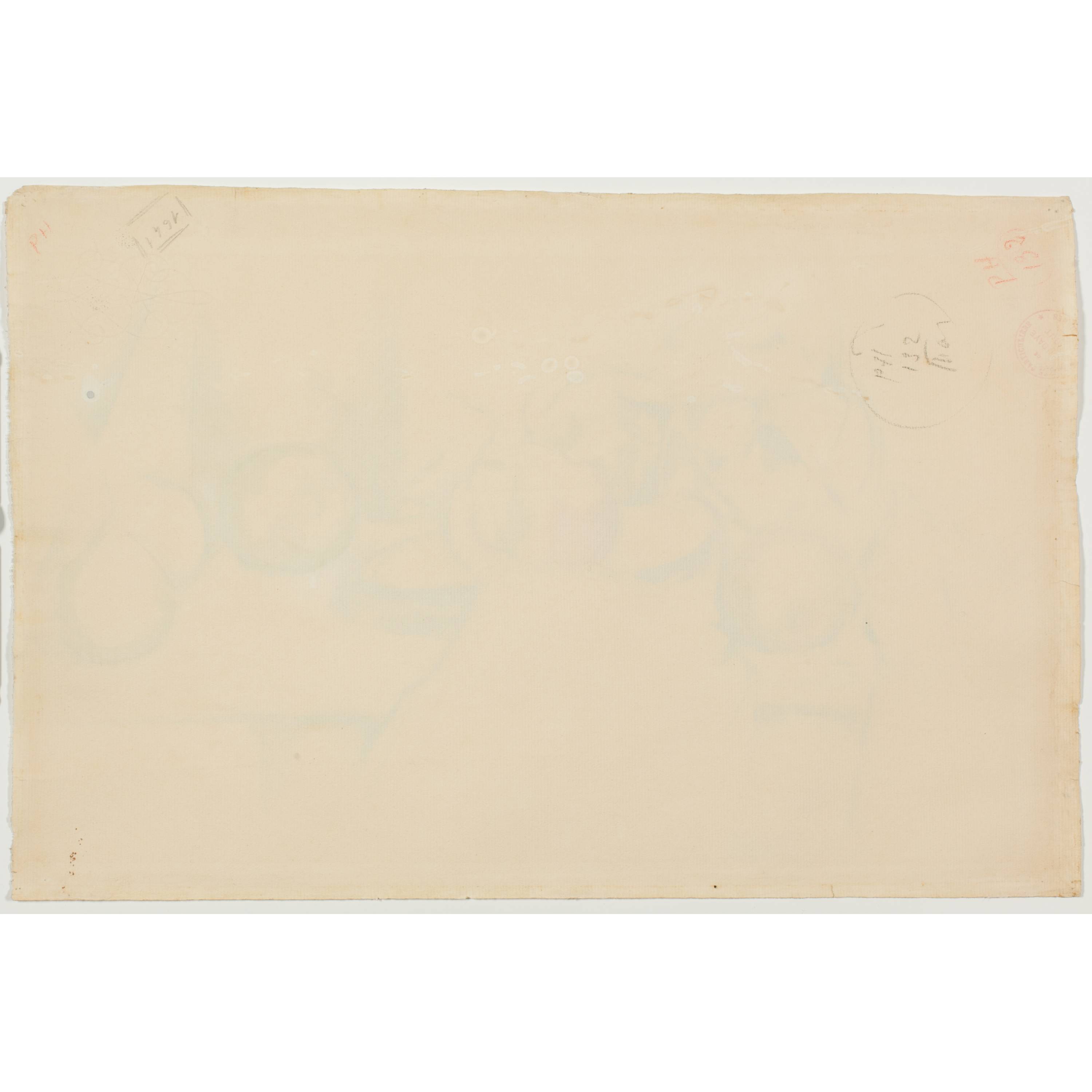 The watercolour is in very good condition, fresh in colours. Small pinholes in the four corners and single small tears of a few millimetres in the outermost margin. Minimal light margin, ca. 4 to 5 mm within the edge of the sheet. Small loss at extreme upper right corner. Isolated old waterstains. On cream handmade paper, with the ornamental knot "S A V" (Société Anonyme des papeteries de Vidalon) as watermark