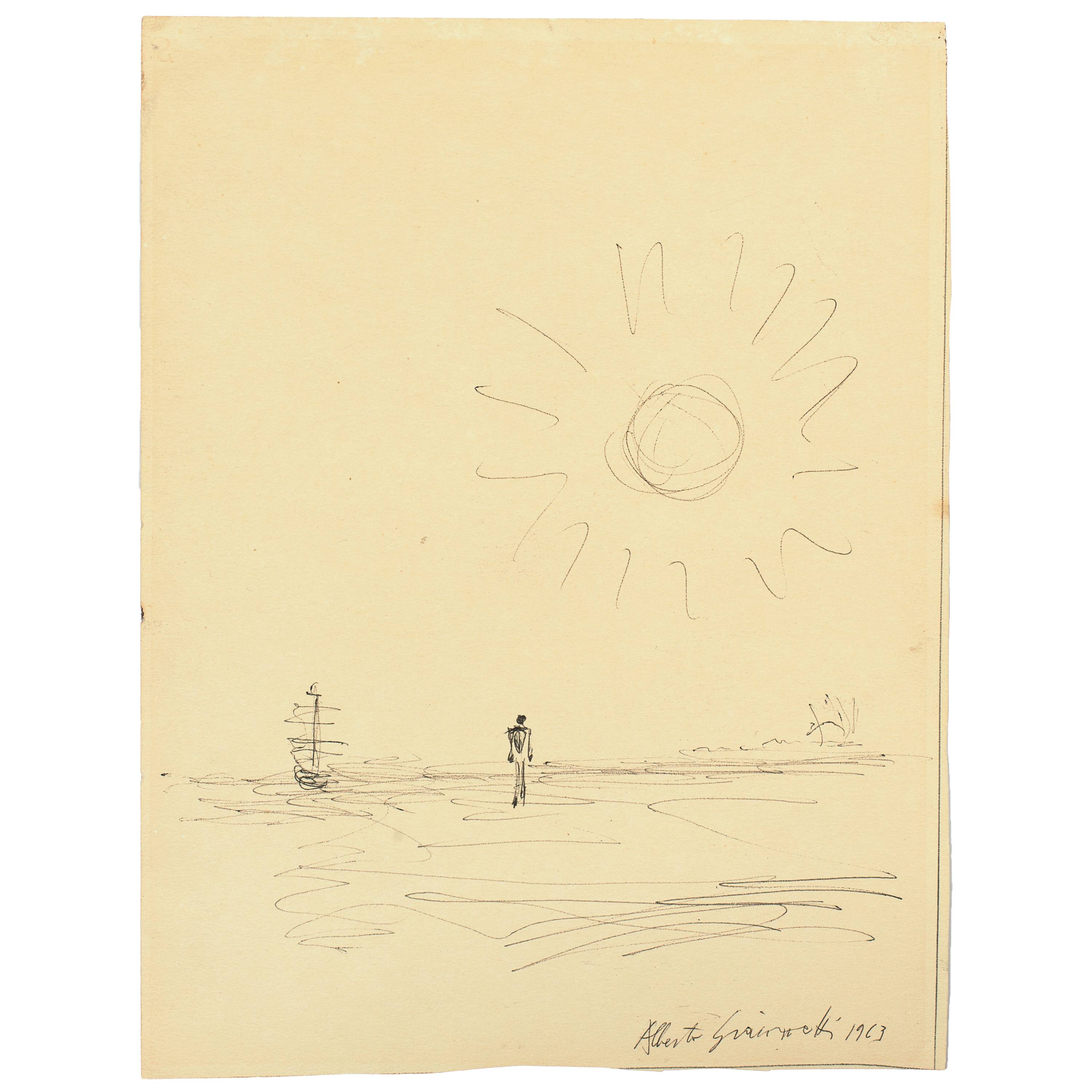 Unten rechts vom Künstler in Kugelschreiber signiert und datiert "Alberto Giacometti 1963"