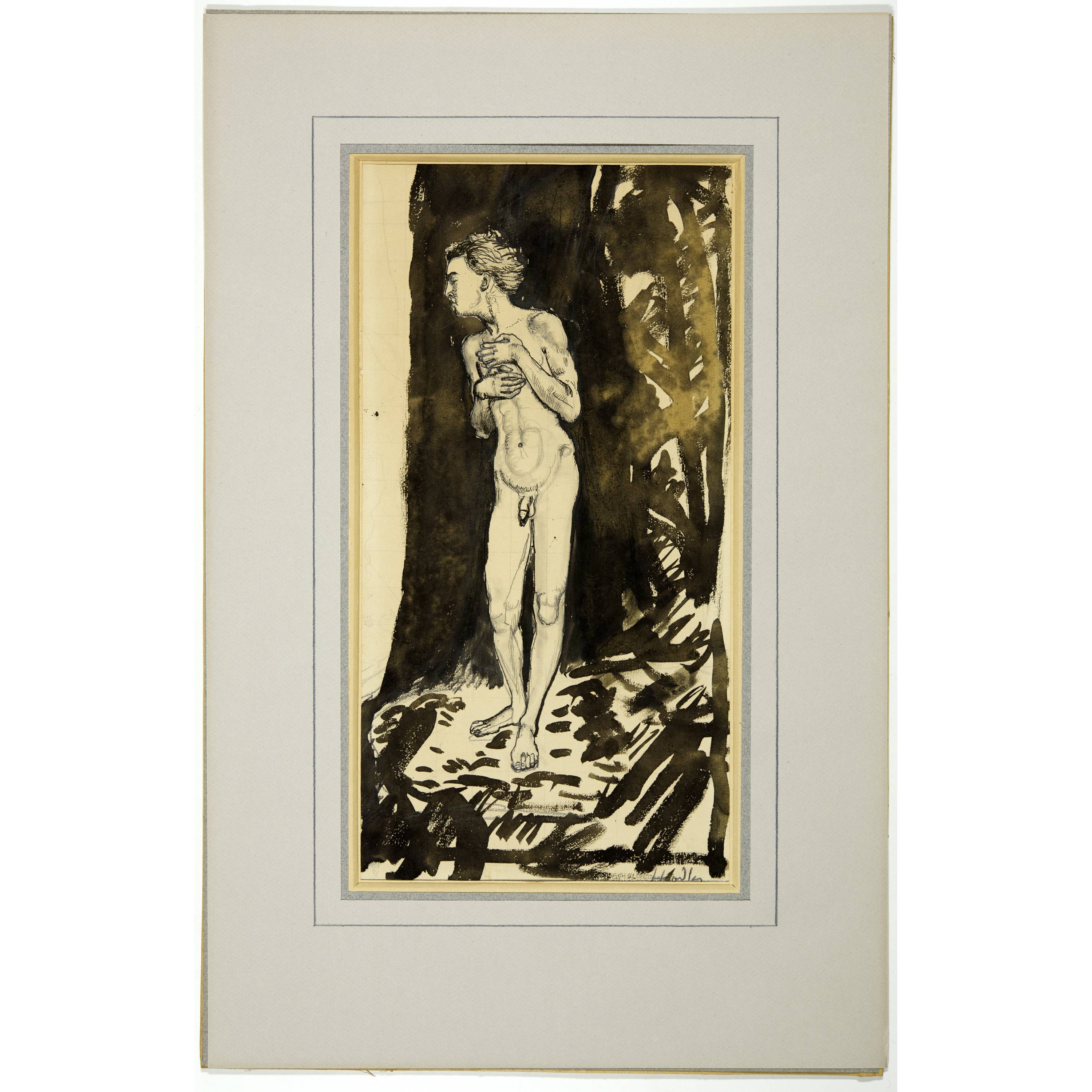 Hector Hodler, the artist's 13-year-old son, can be recognised in the male figure. The drawing could be thematically associated with the small-format oil painting "Jüngling am Bergbach" from 1901 (cf. Bätschmann/Müller 1326), in which the artist also depicts an androgynous-looking youth at a water source.