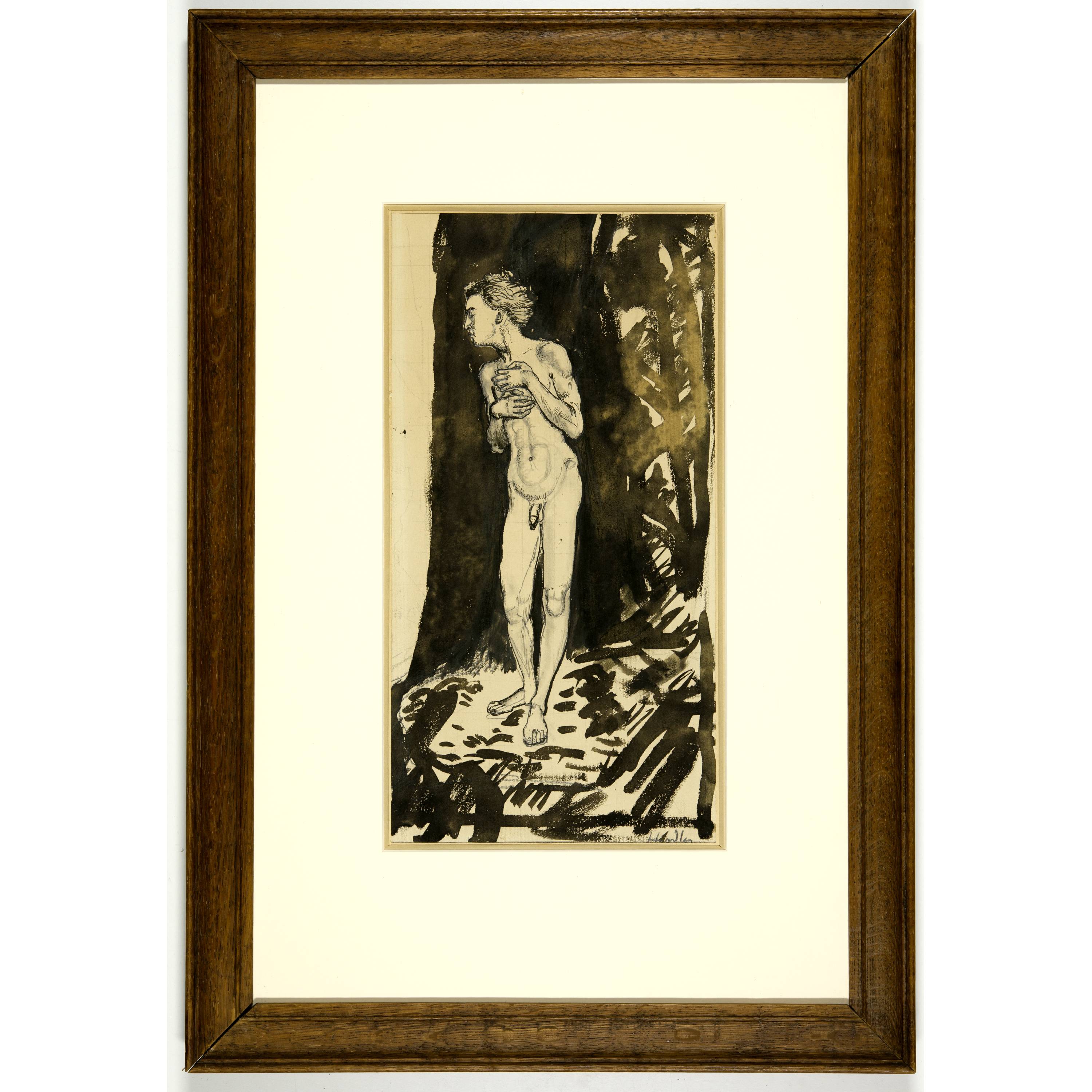 In der männlichen Figur ist Hector Hodler, der 13-jährige Sohn des Künstlers, zu erkennen. Die Zeichnung könnte thematisch in Verbindung gebracht werden mit dem kleinformatigen Ölgemälde "Jüngling am Bergbach" von 1901 (vgl. Bätschmann/Müller 1326), in dem der Künstler ebenso einen androgyn wirkenden Jüngling an einer Wasserquelle darstellt