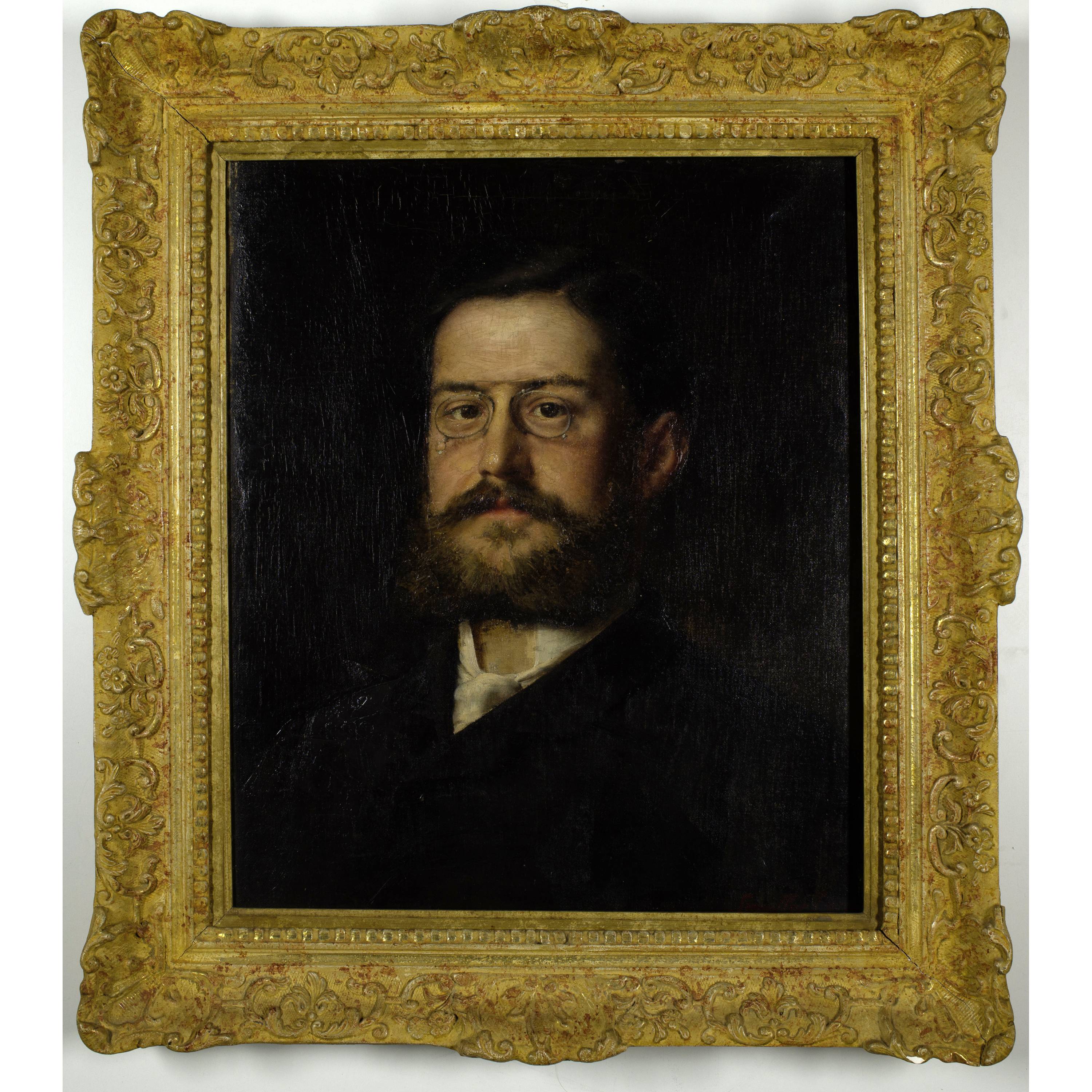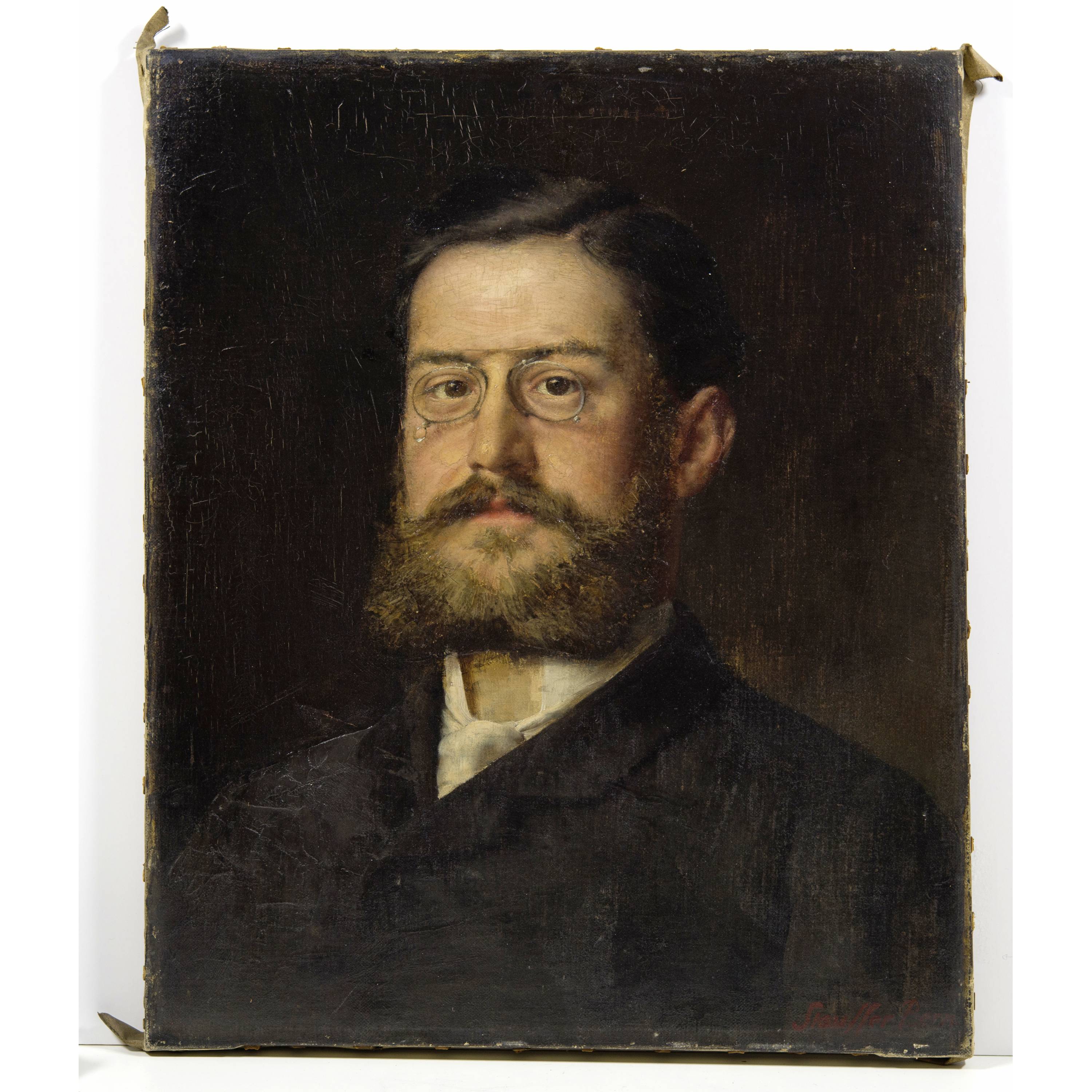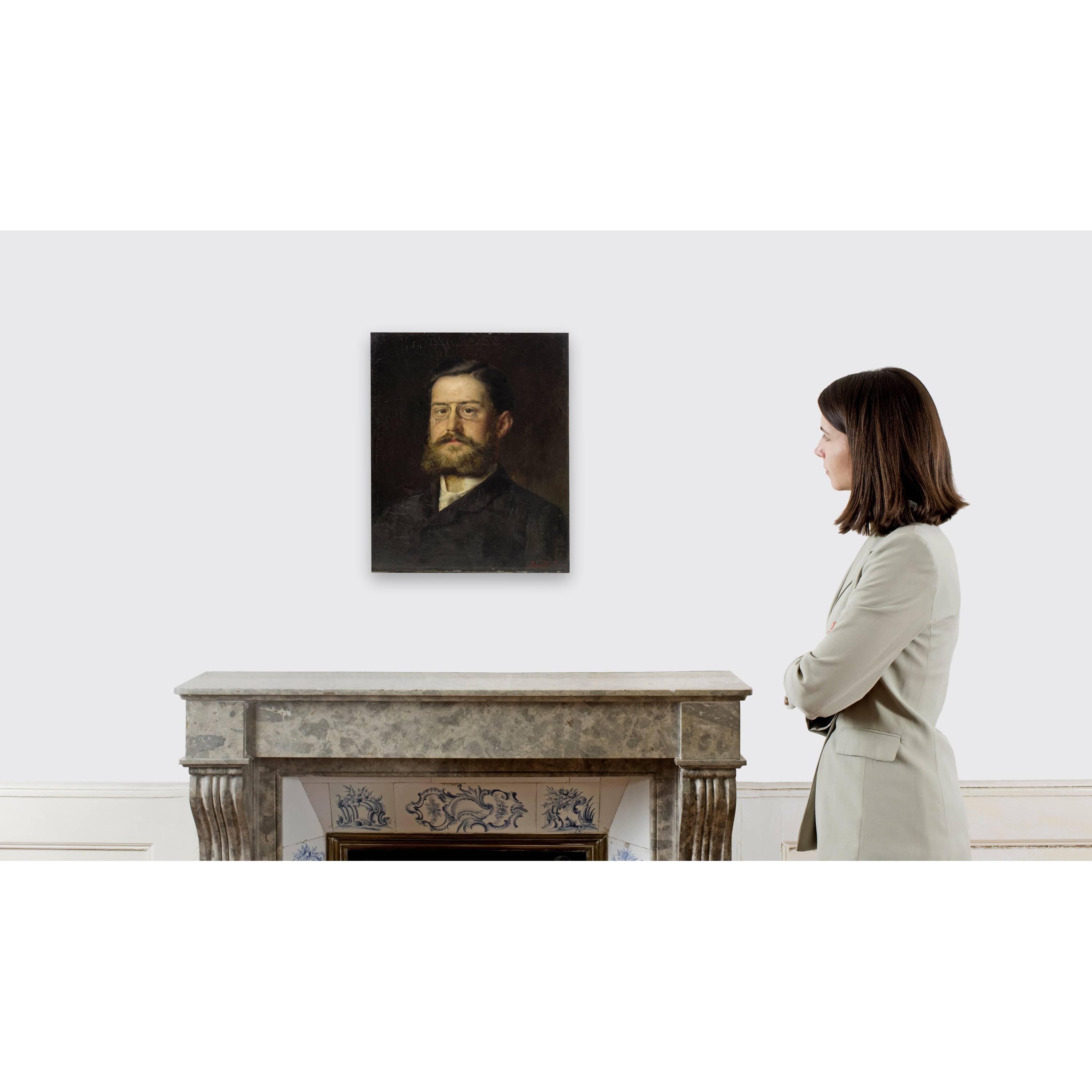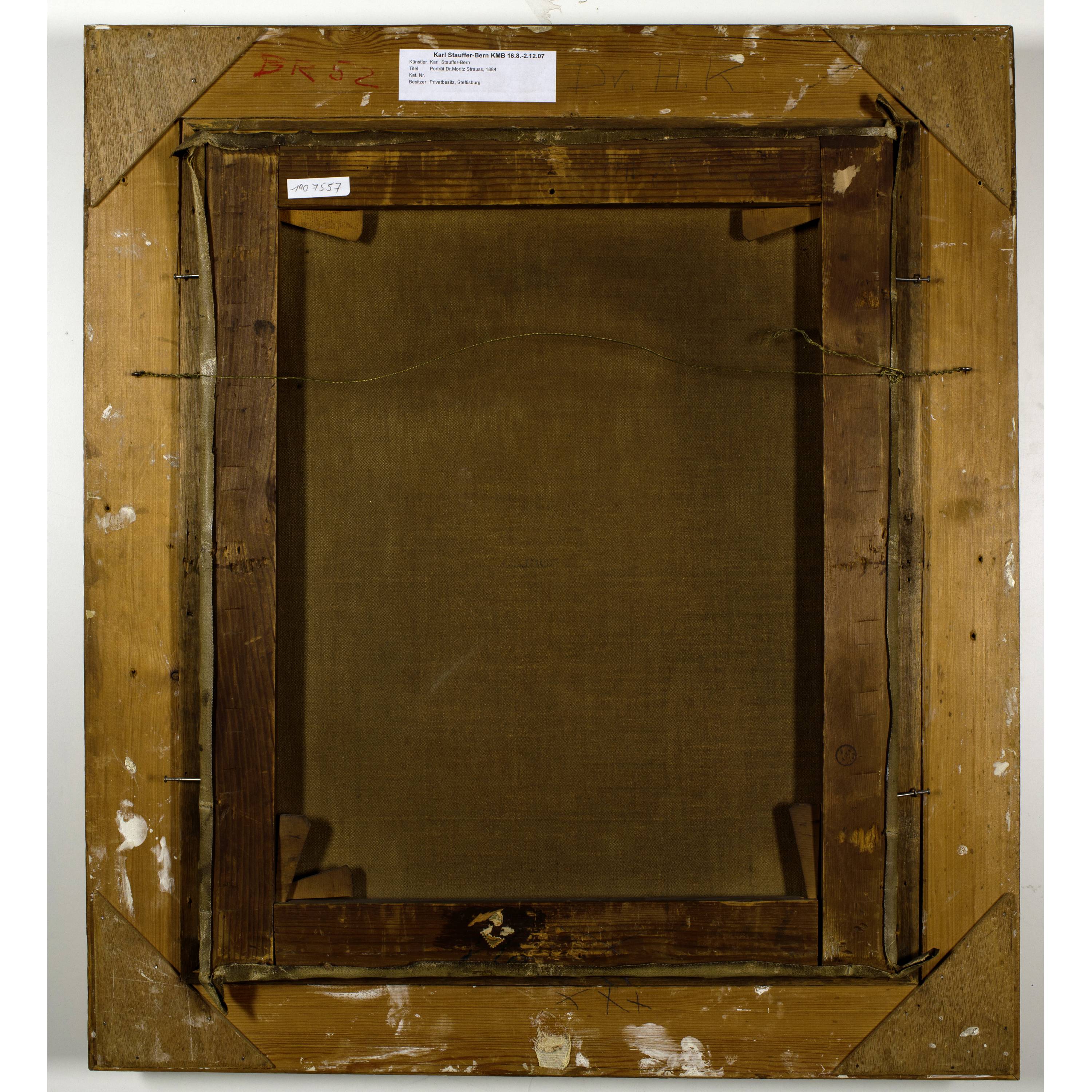 No further documents can be found on the banker Dr. Moritz Strausps The portrait is one of at least 28 works that Karl Stauffer-Bern was allowed to create as commissions for upper middle-class Berlin society after his success at the International Art Exhibition of 1881 in Berlin.