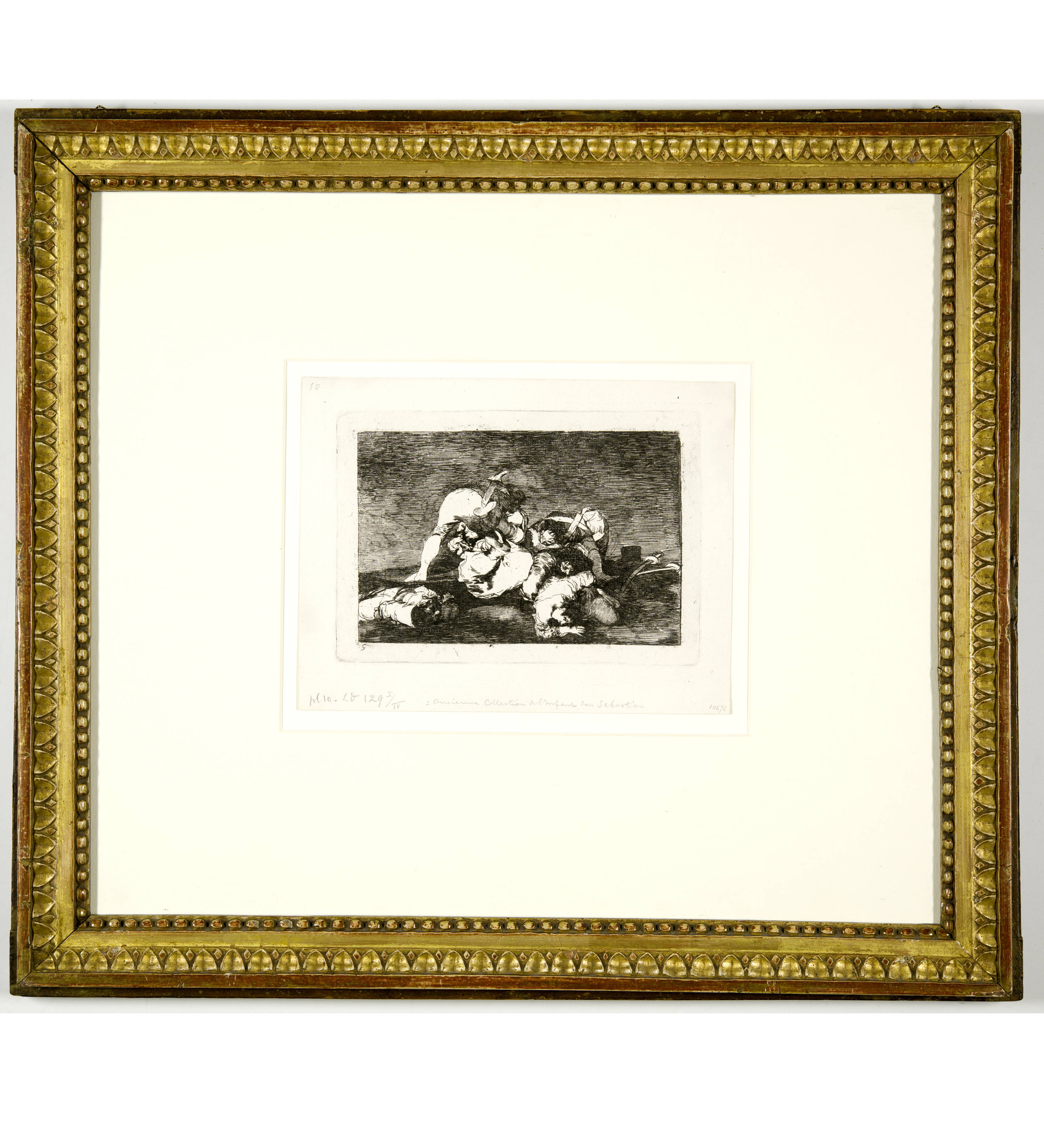 The present sheet belongs to group "A", i.e. the war depictions and atrocities during the war, produced from 1808 to 1814. Harris divides the proofs of this sheet into three variants, but only 10 proofs of variant 2 with the number "9" at lower left have become known, eight of them in public collections. In the catalogue of the Provôt auction of 1935, the present sheet was praised as "Superbe épreuve du premier état sur quatre. Bonnes marges".