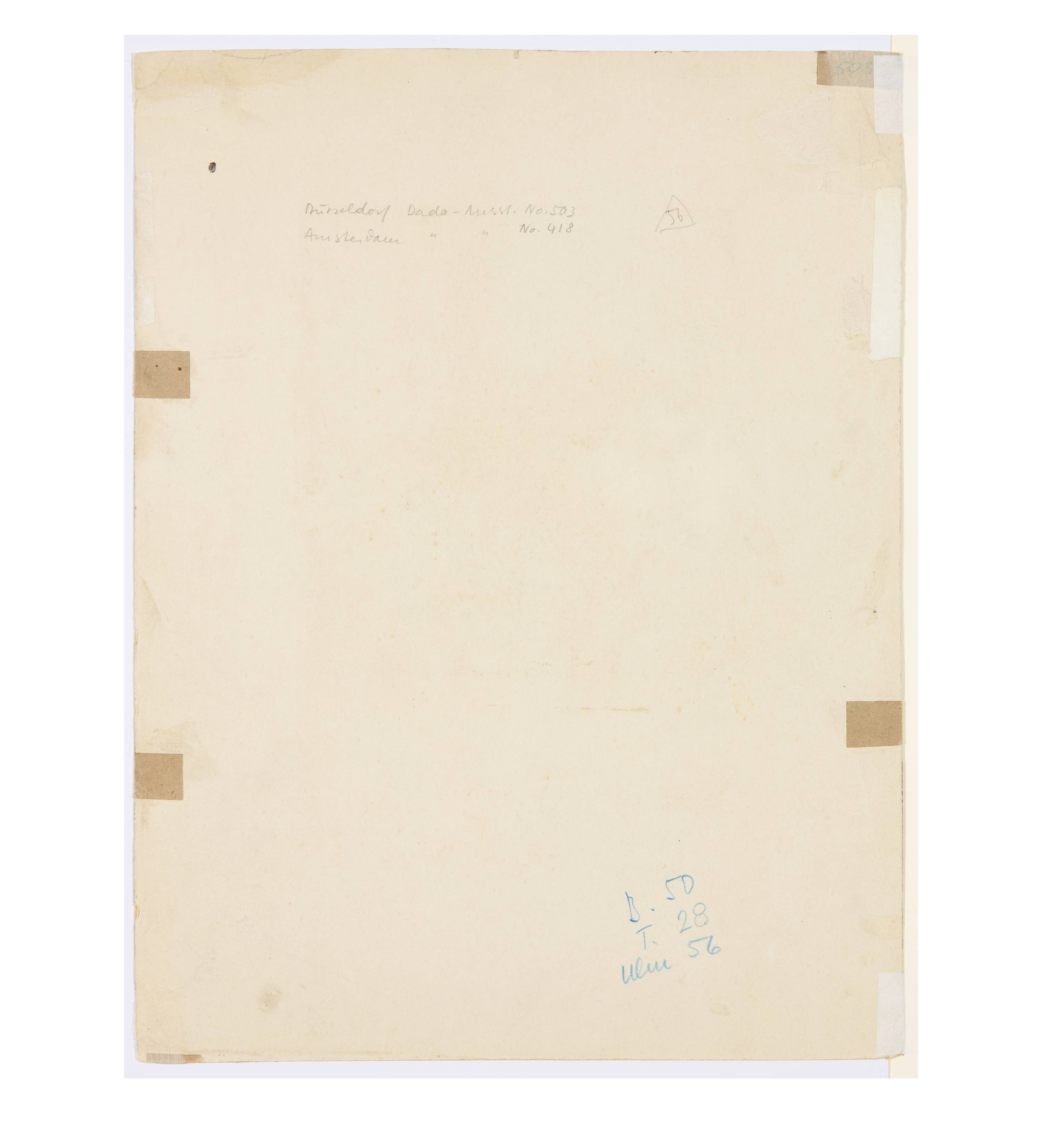 Signed and dated in ink by the artist on the backing "Kurt Schwitters. 1924."