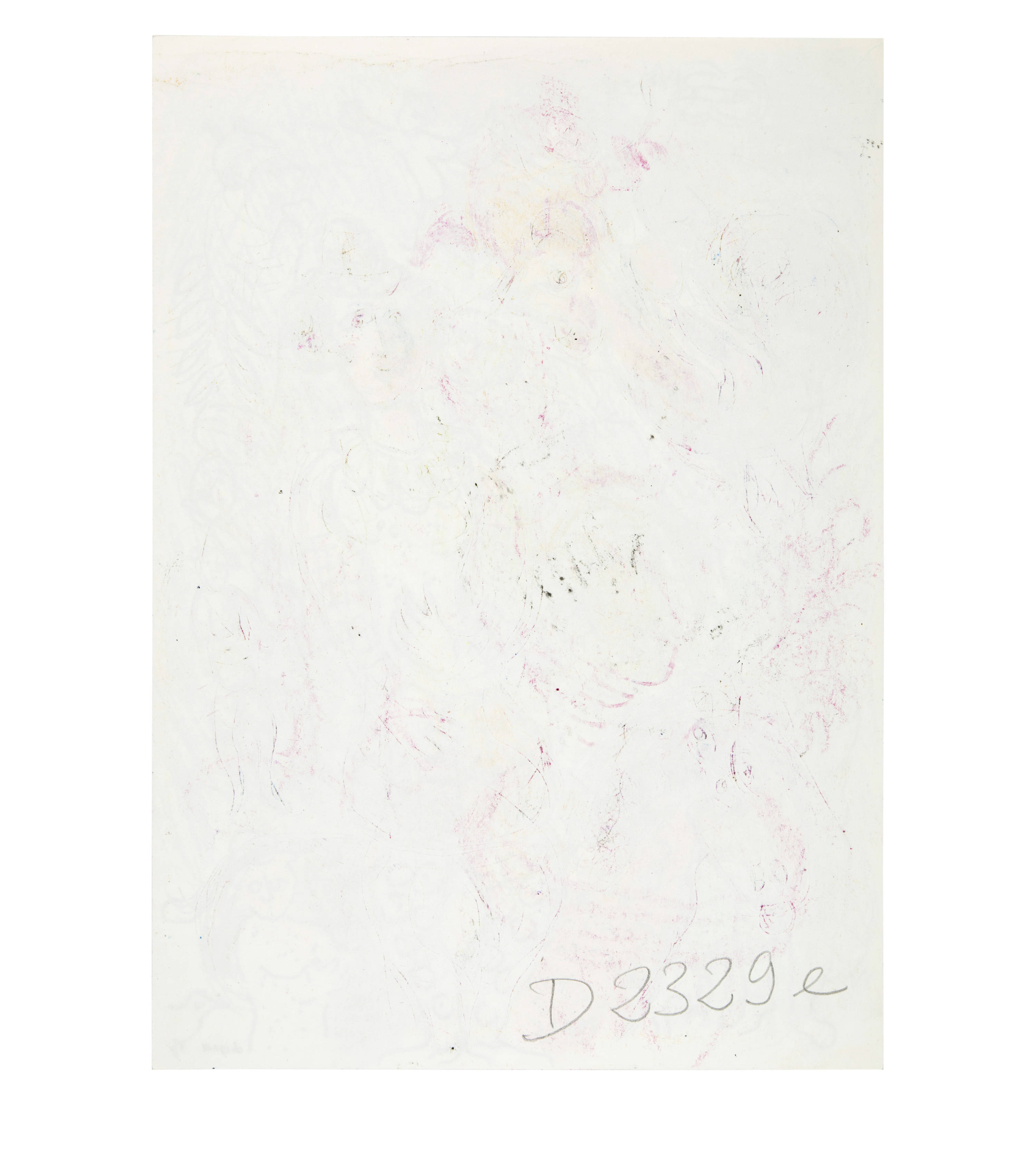 Pastel, coloured pencil, felt-tip pen, blue and black ballpen and gouache on paper