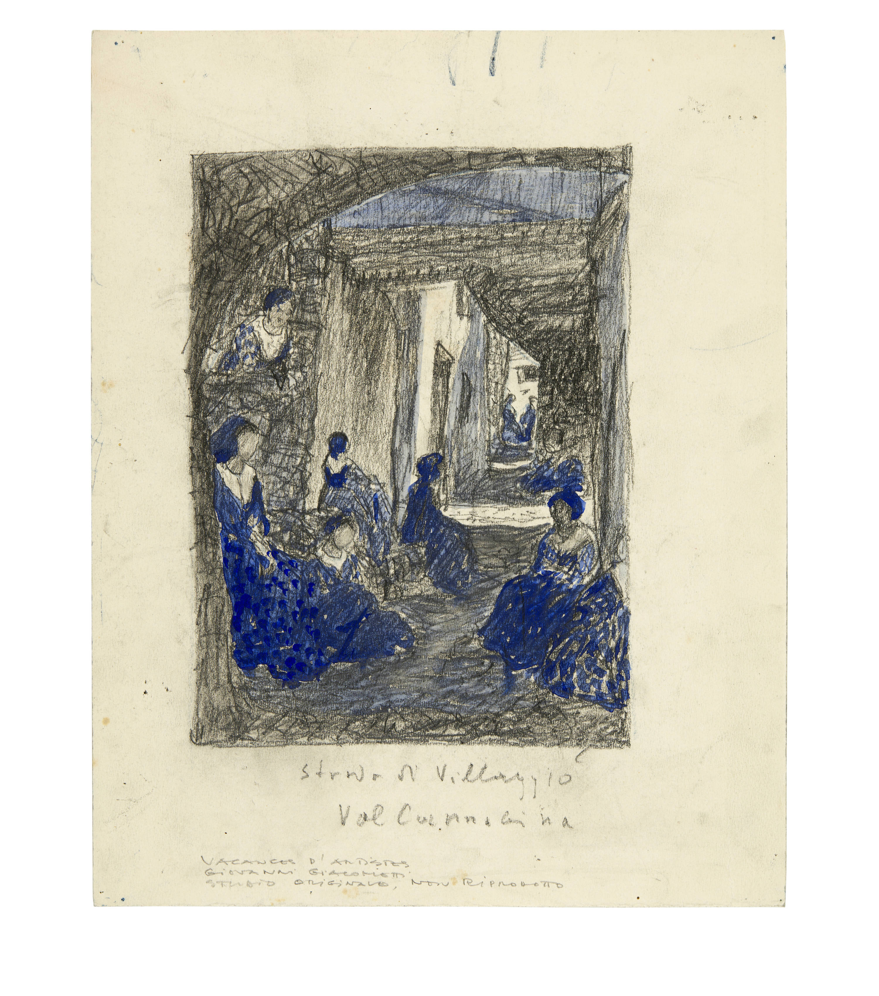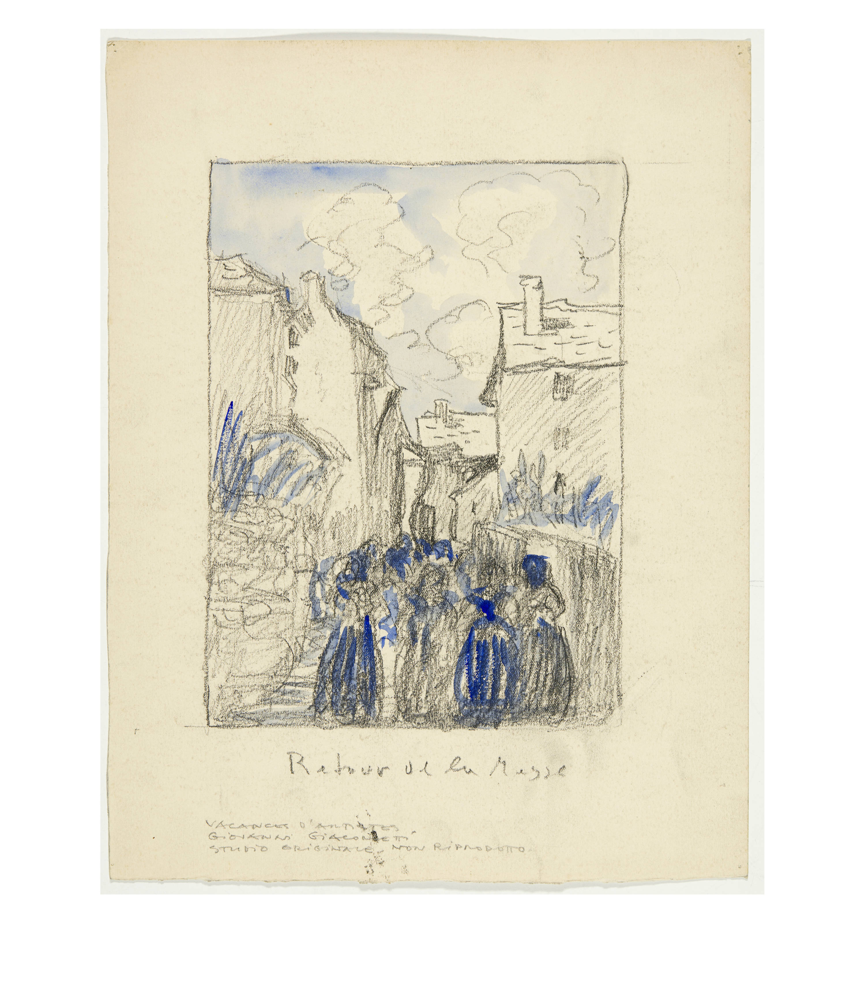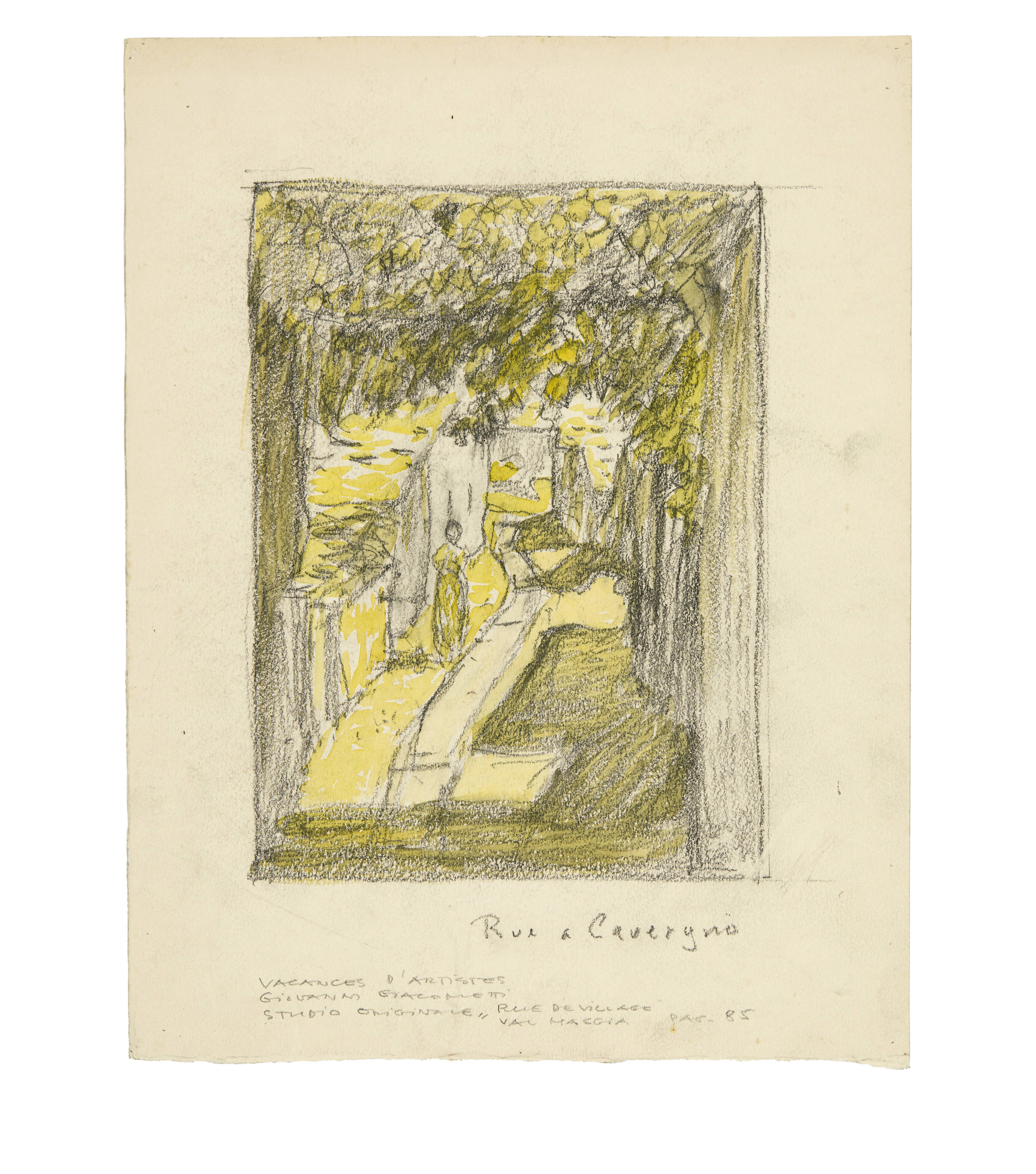 The works were created as part of the illustrations for Daniel Baud-Bovy's novel "Vacances d'Artistes". The book was published in Geneva in 1909. It contains 27 colour lithographs "hors-texte", 10 by Édouard Baud, 4 by Louis Dunki, 2 by Jules Fontanez, 10 by Giovanni Giacometti and 1 by Édouard Vallet. In August 1907, Giacometti provided the publisher Max Girardet, director of Sonor, with drawings in watercolour over pencil as models for these coloured lithographs. These preparatory works were then transferred onto stone by one of the publisher's lithographers. In addition to the 10 lithographs illustrated in the publication, Giacometti also designed other sheets that were not used in the book (6 of these are listed in Stauffer, of which only lithographs were produced). The sketches were created at the end of May/beginning of June 1907 and again towards the end of July/beginning of August, when the author of the book and Giacometti were travelling together by bicycle and on foot in Ticino and neighbouring Upper Italy.