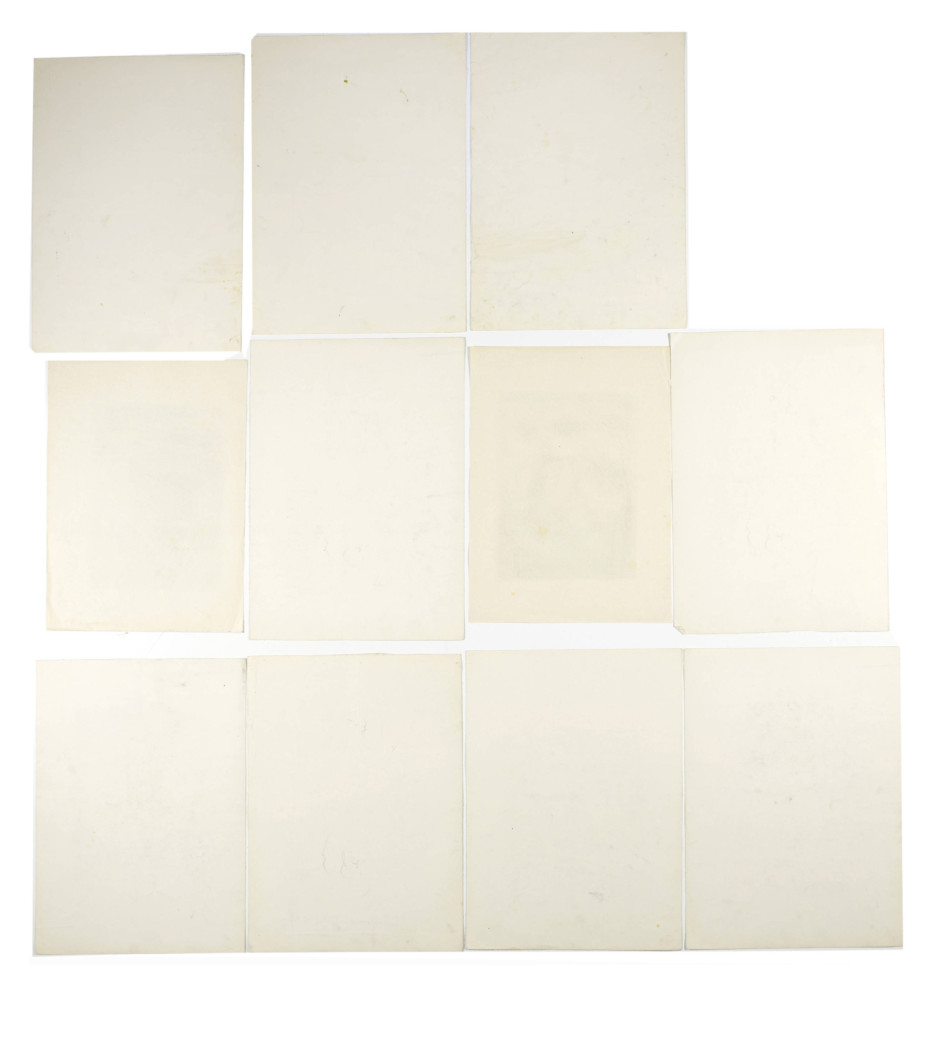 One sheet mounted. One sheet with paper loss in the lower right corner and on the reverse with a mirror-inverted image. Mostly with small pin-holes in the corners and with studio traces. In very good condition and fresh in colour