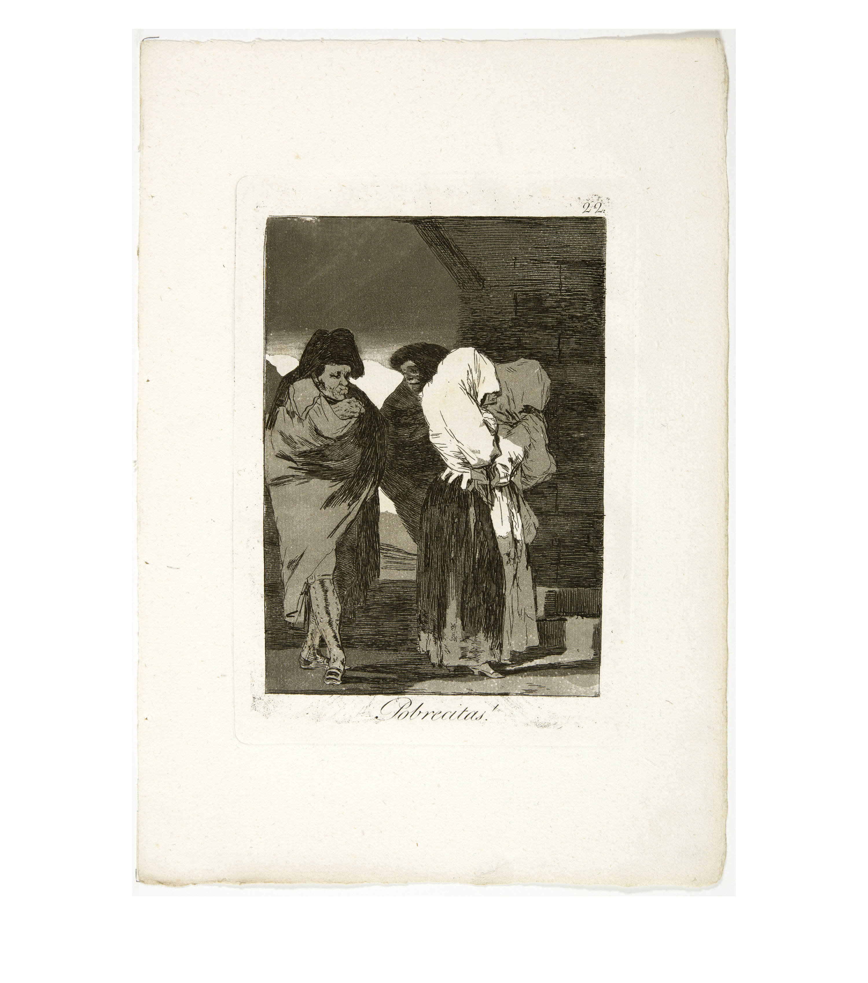 "Die armen Prostituierten gehen ins Gefängnis; die Mätressen, wohin sie mögen." Ayalas Kommentar kritisiert die soziale Ungerechtigkeit, die Arme bestraft und Reiche nicht. Die starken Hell-Dunkel-Kontraste machen die Finsternis des Gefängnisses deutlich, in das die jungen Frauen eingekerkert werden.