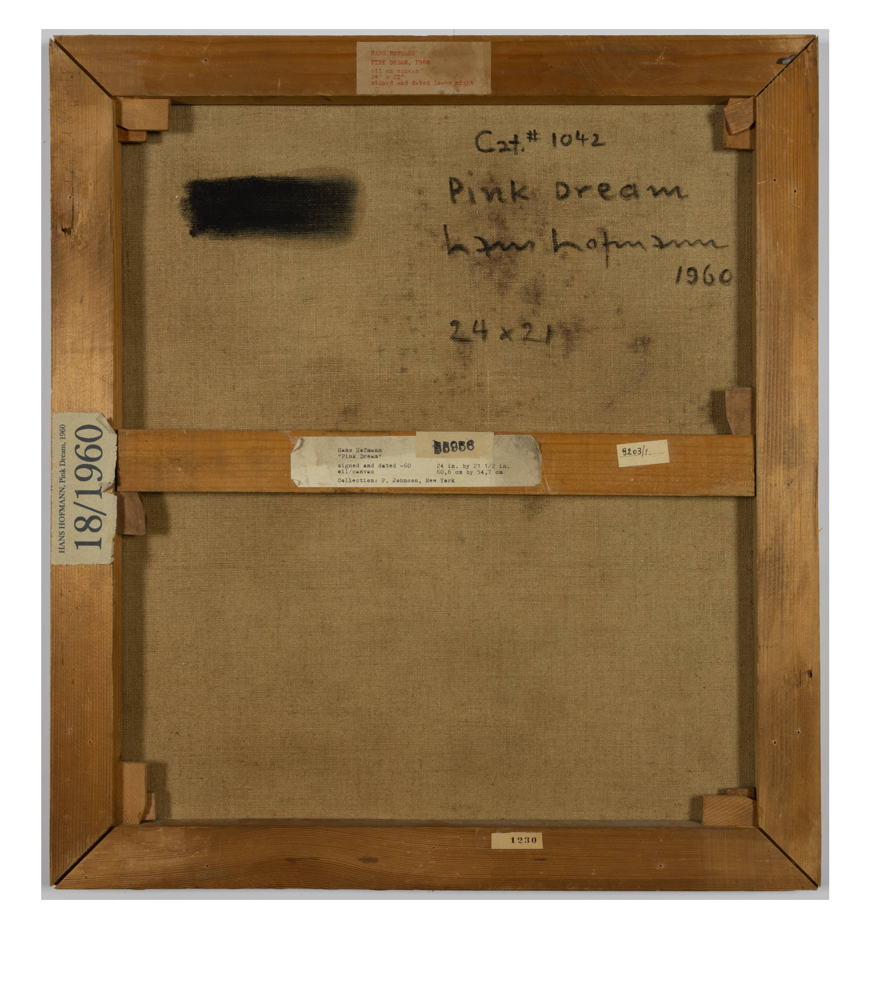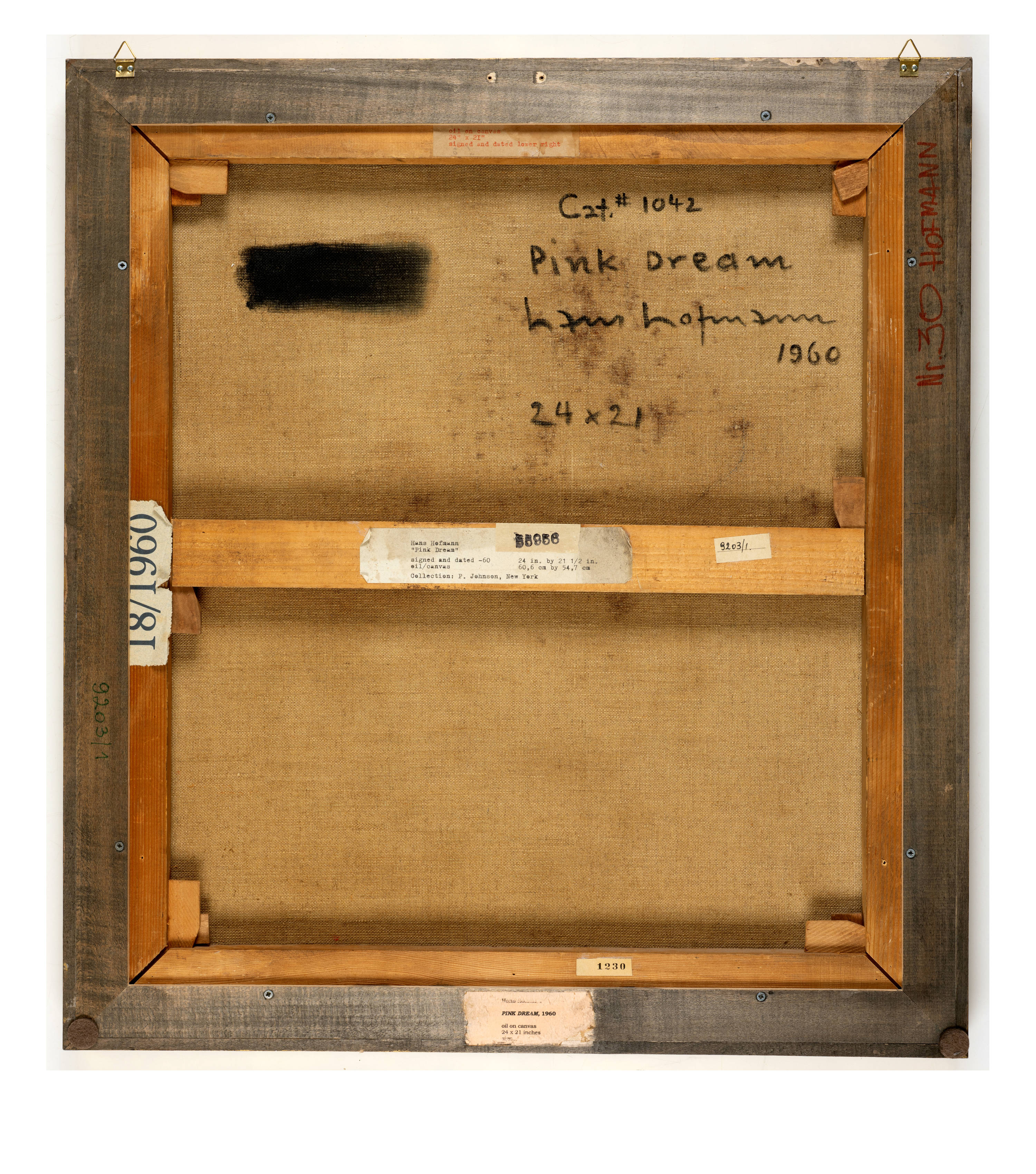 Unten rechts vom Künstler signiert und datiert "Hans Hofmann 60.", rückseitig oben rechts nummeriert, betitelt, signiert und datiert "1042 / Pink Dream / Hans Hofmann / 1960"