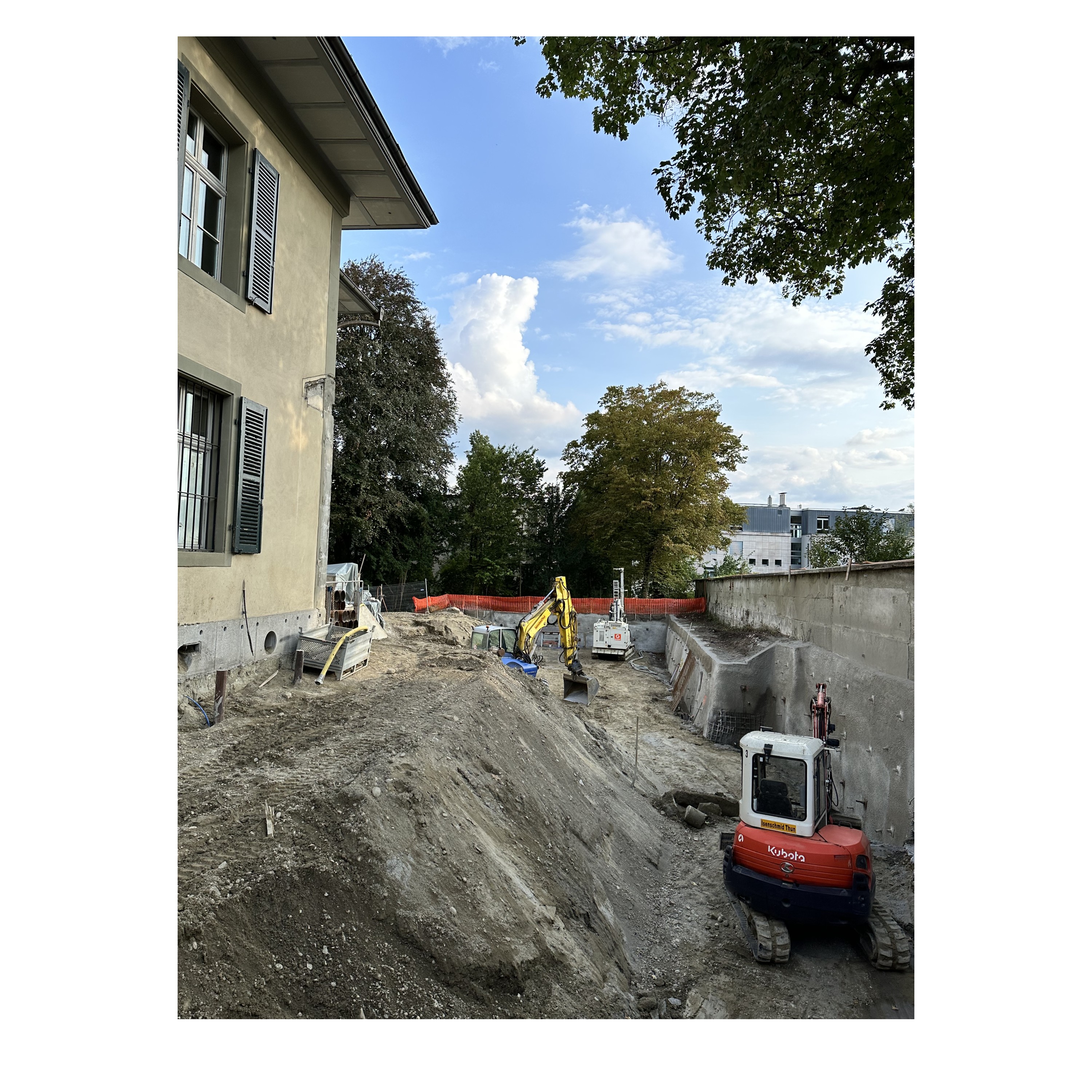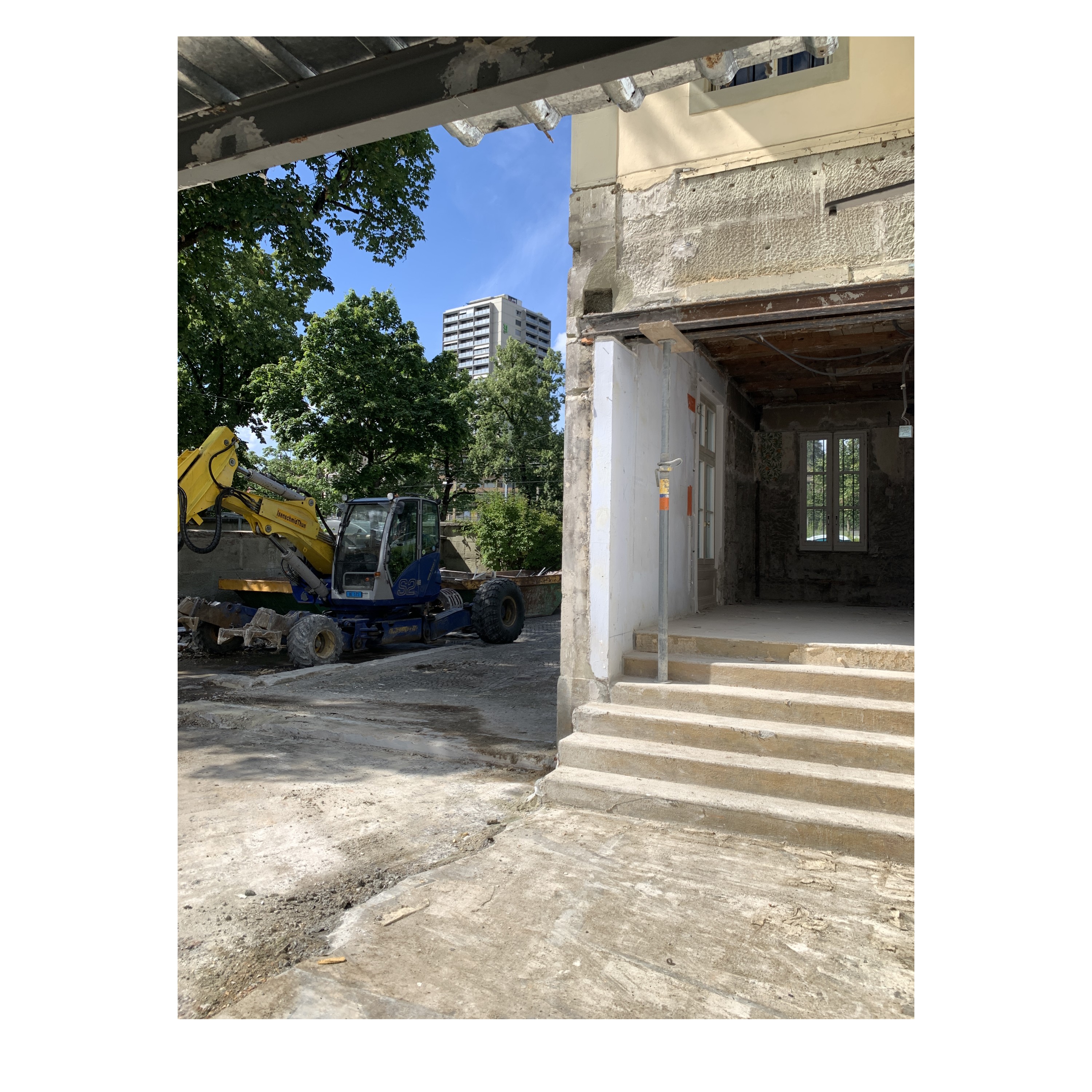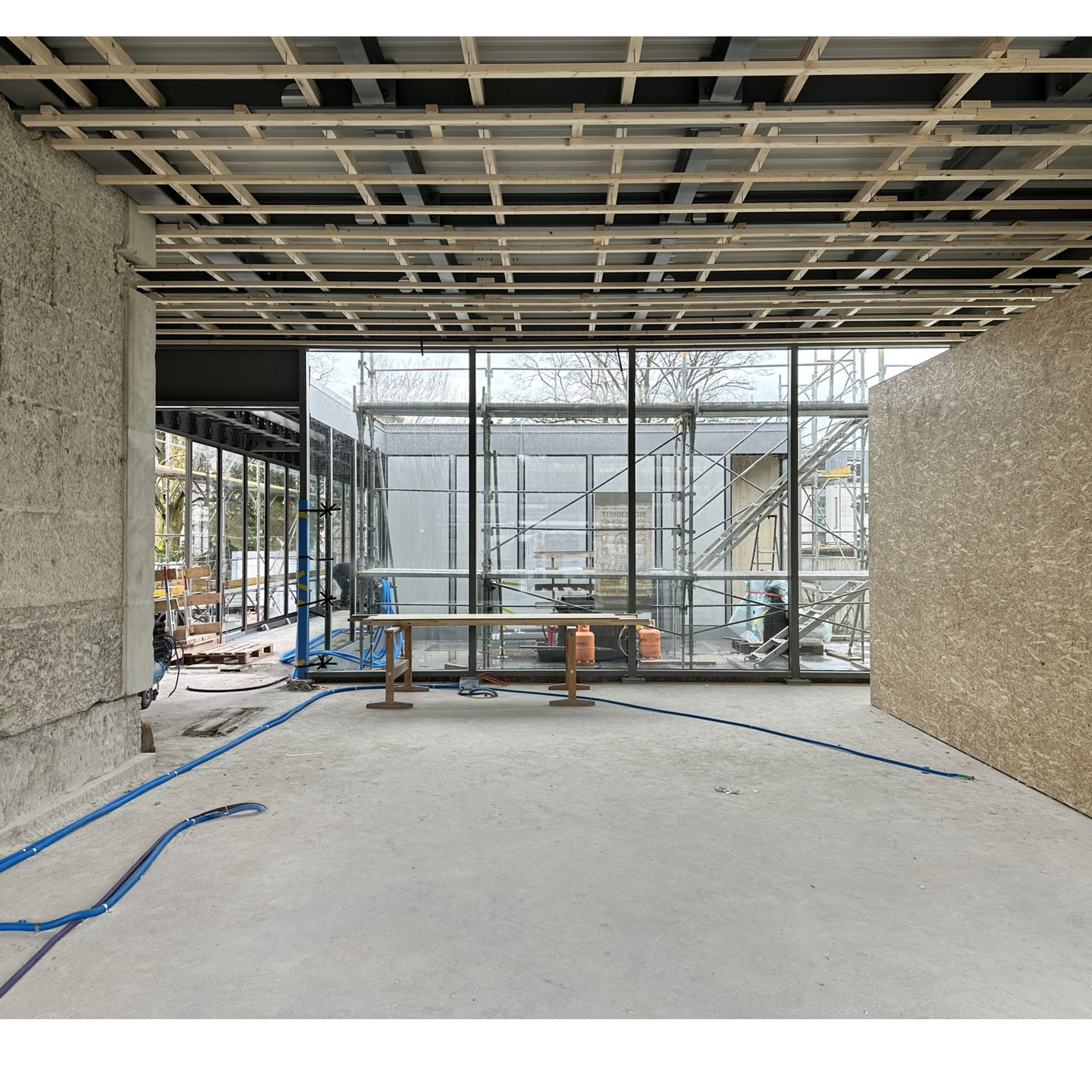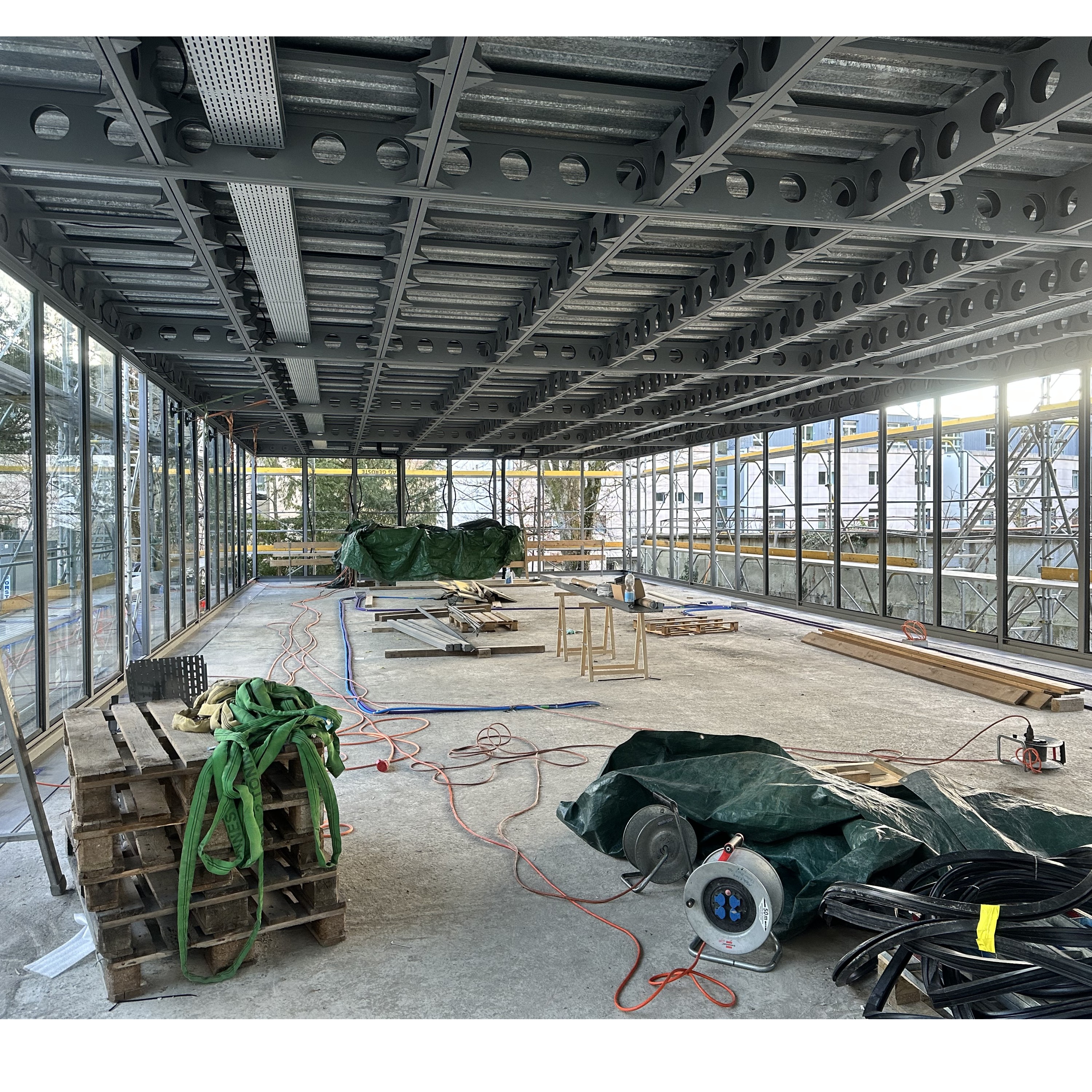 La déconstruction du pavillon Haller va d'abord commencer. L'entreprise de construction métallique Stoller de Belp, spécialisée dans les constructions de Haller, va maintenant rénover et renforcer le pavillon dans ses halles, avant de le remonter à la fin de l'année sur le sous-sol qui sera alors bétonné.